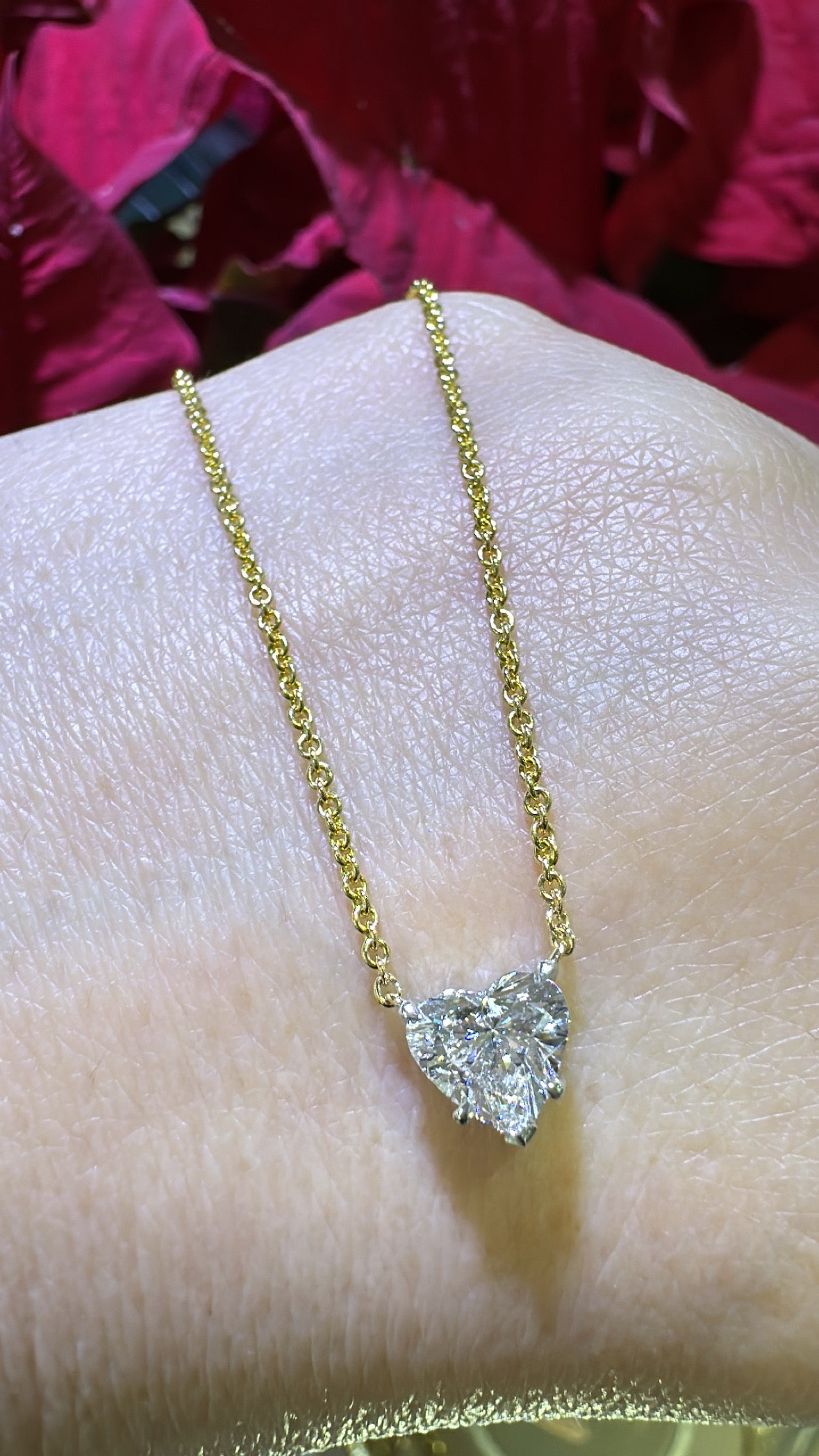 Experience the ultimate expression of love with our 1.00CT GIA certified diamond heart solitaire pendant necklace. With its stunning GIA certified diamond, this necklace is a symbol of pure devotion. Perfect as a gift for a special someone or as a treat for yourself, cherish the beauty and significance of this necklace for years to come.