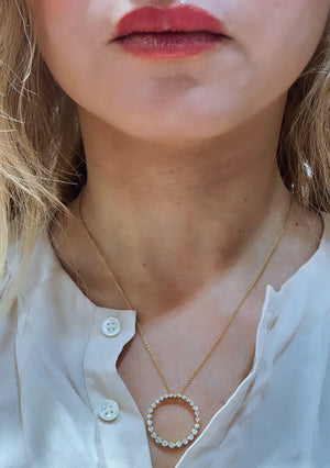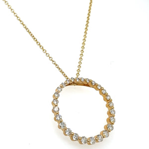 This sparkling 1.01ct tw diamond single prong circle of life pendant necklace radiates with the beauty of a perfect circle. Inspired by eternity and completeness, this timeless piece is perfect for any occasion and will ignite the room with its dazzling sparkle.
