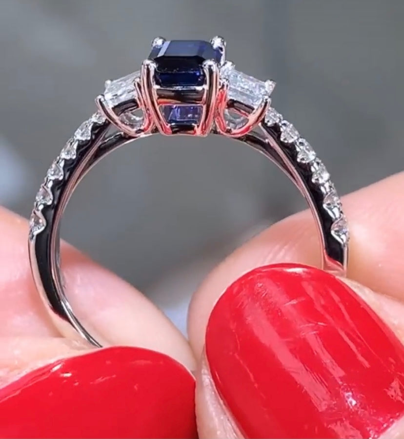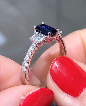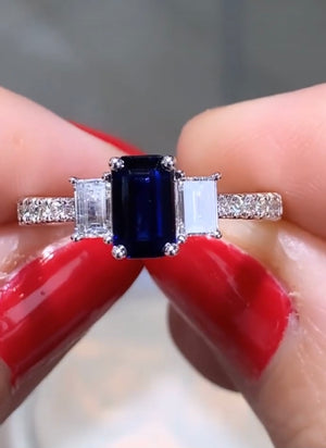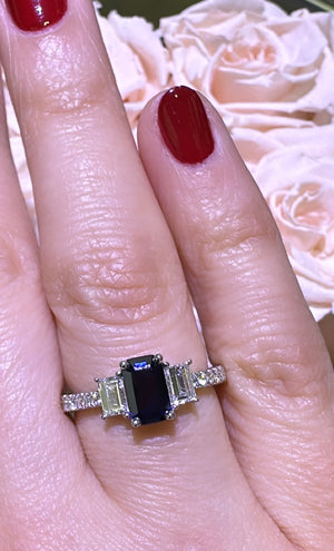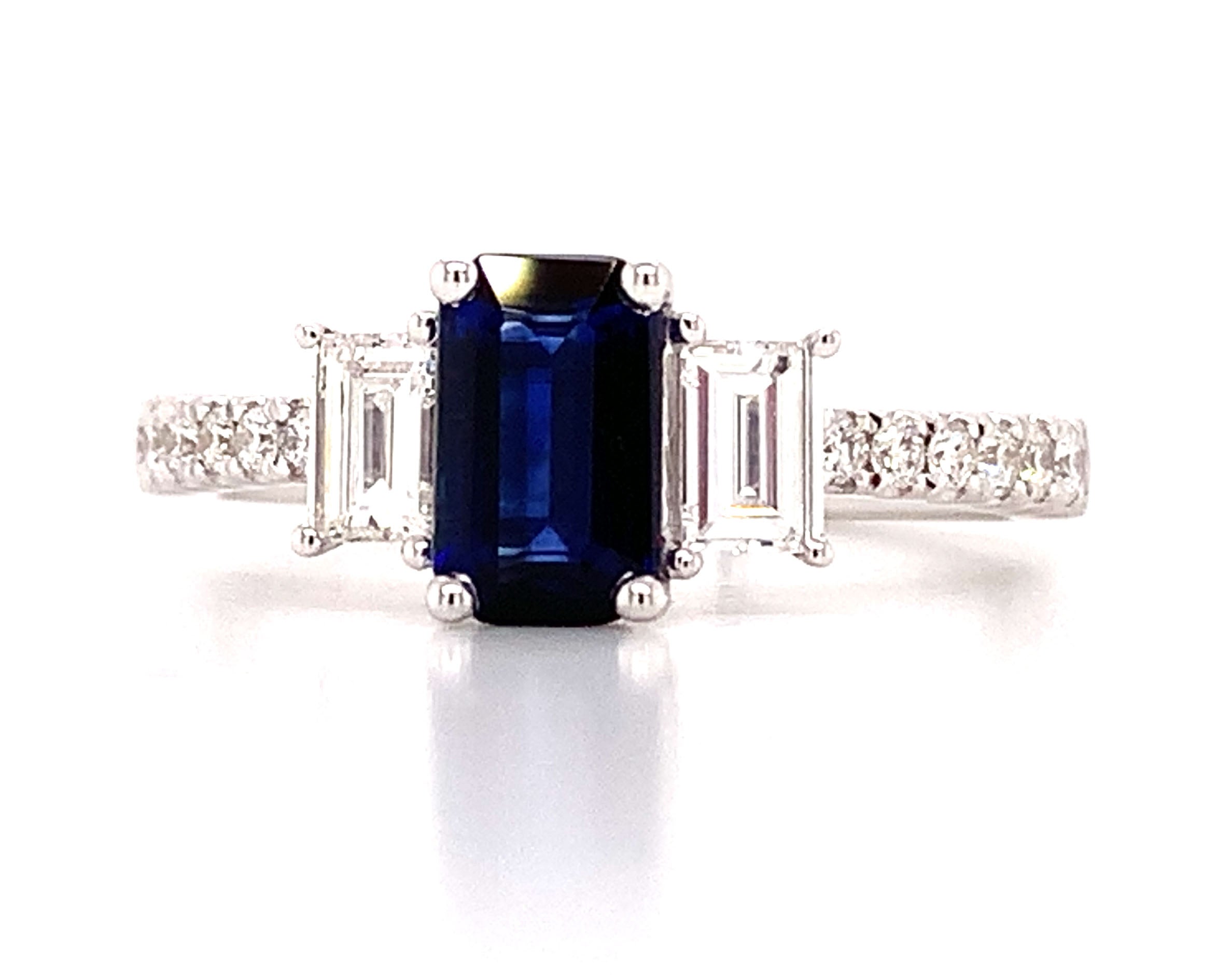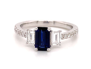 1.03ct Sapphire Emerald Cut Diamond Ring