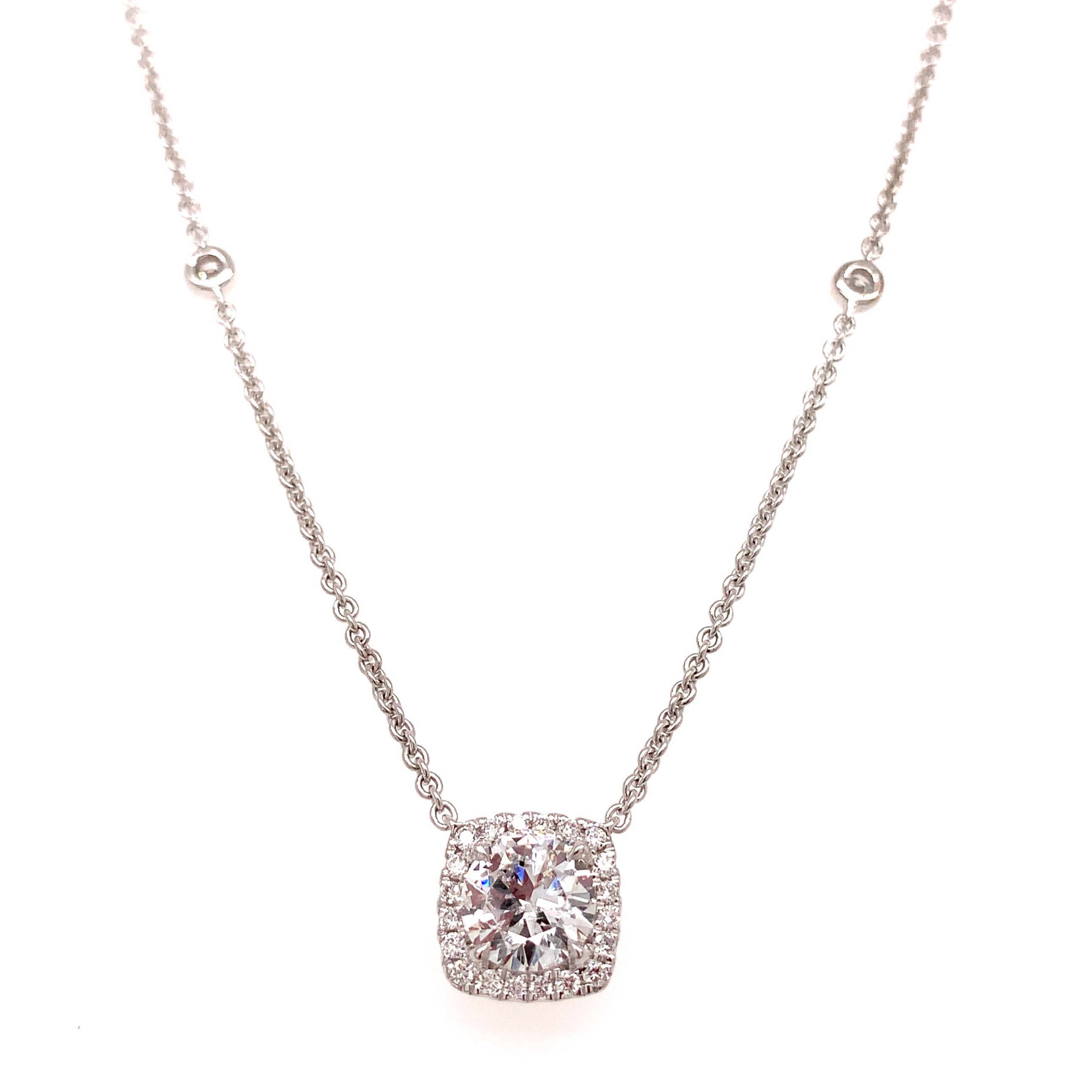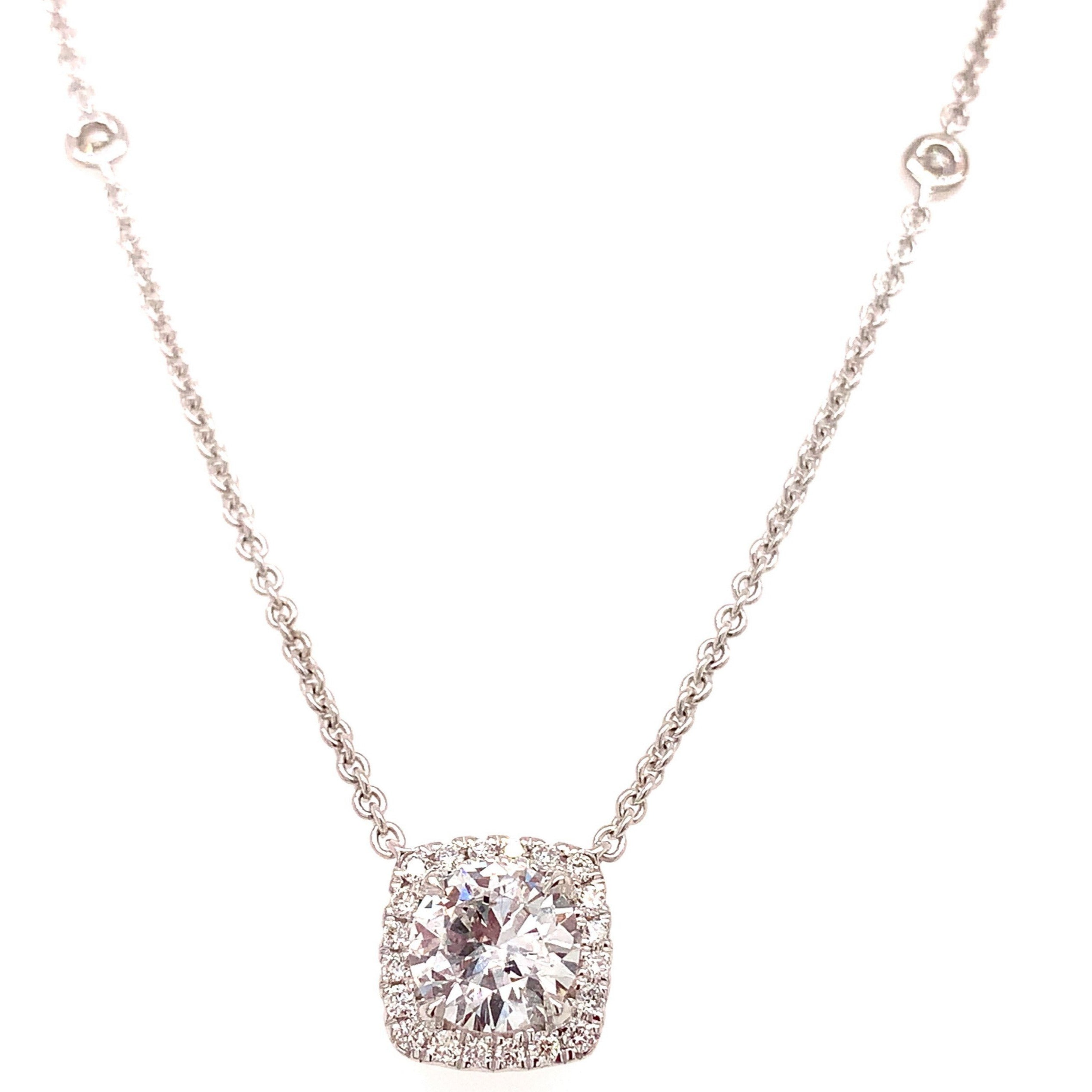 1.03CT T.W. Diamond Round Brilliant Cut Halo Solitaire Necklace