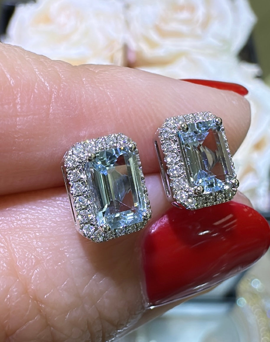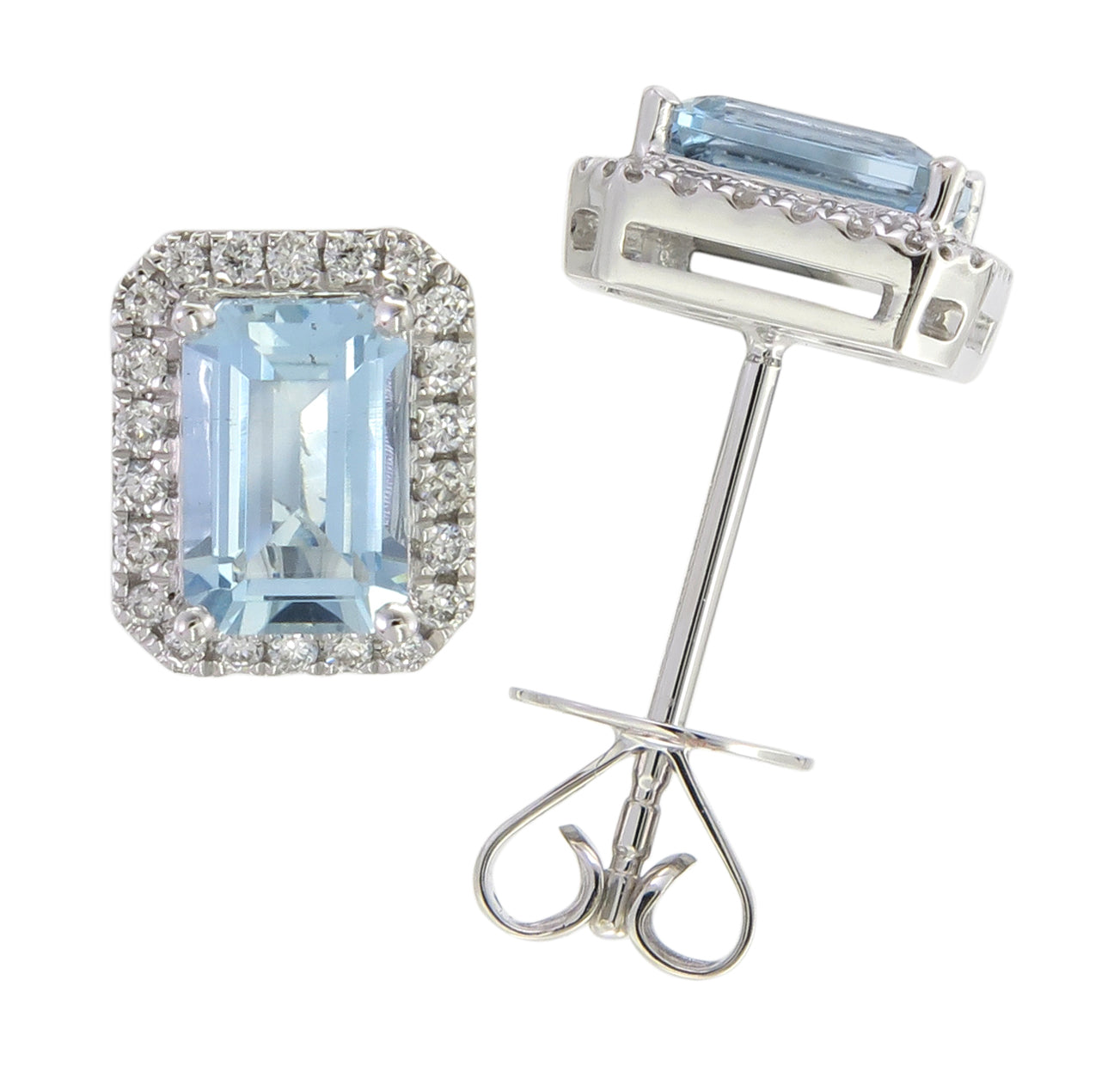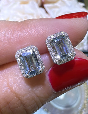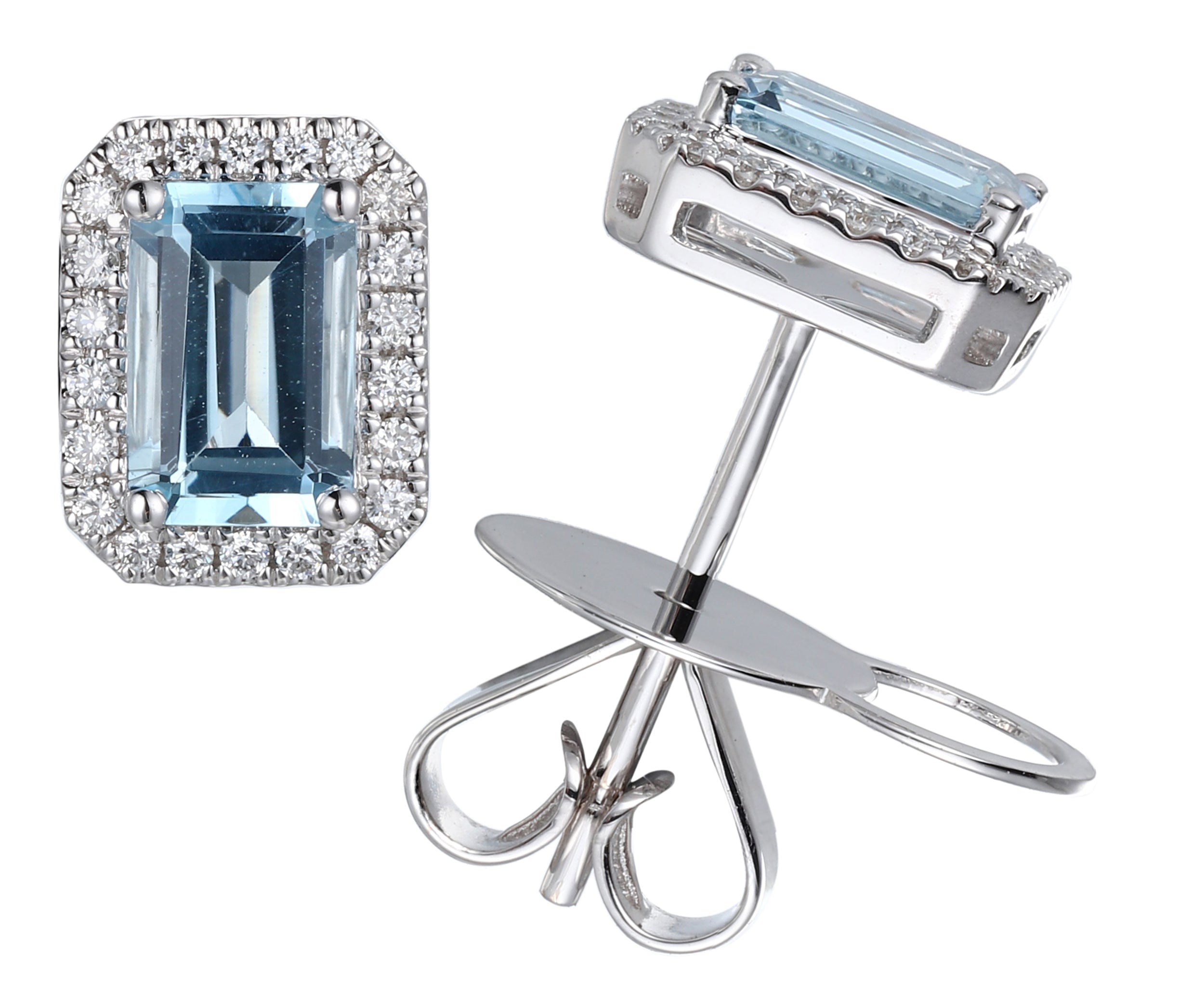 Elevate your elegance with these stunning 1.07ct tw aquamarine baguette-cut and diamond earrings. The sophisticated baguette-cut aquamarines captivate with their serene blue hue, while sparkling diamonds add luxurious brilliance.