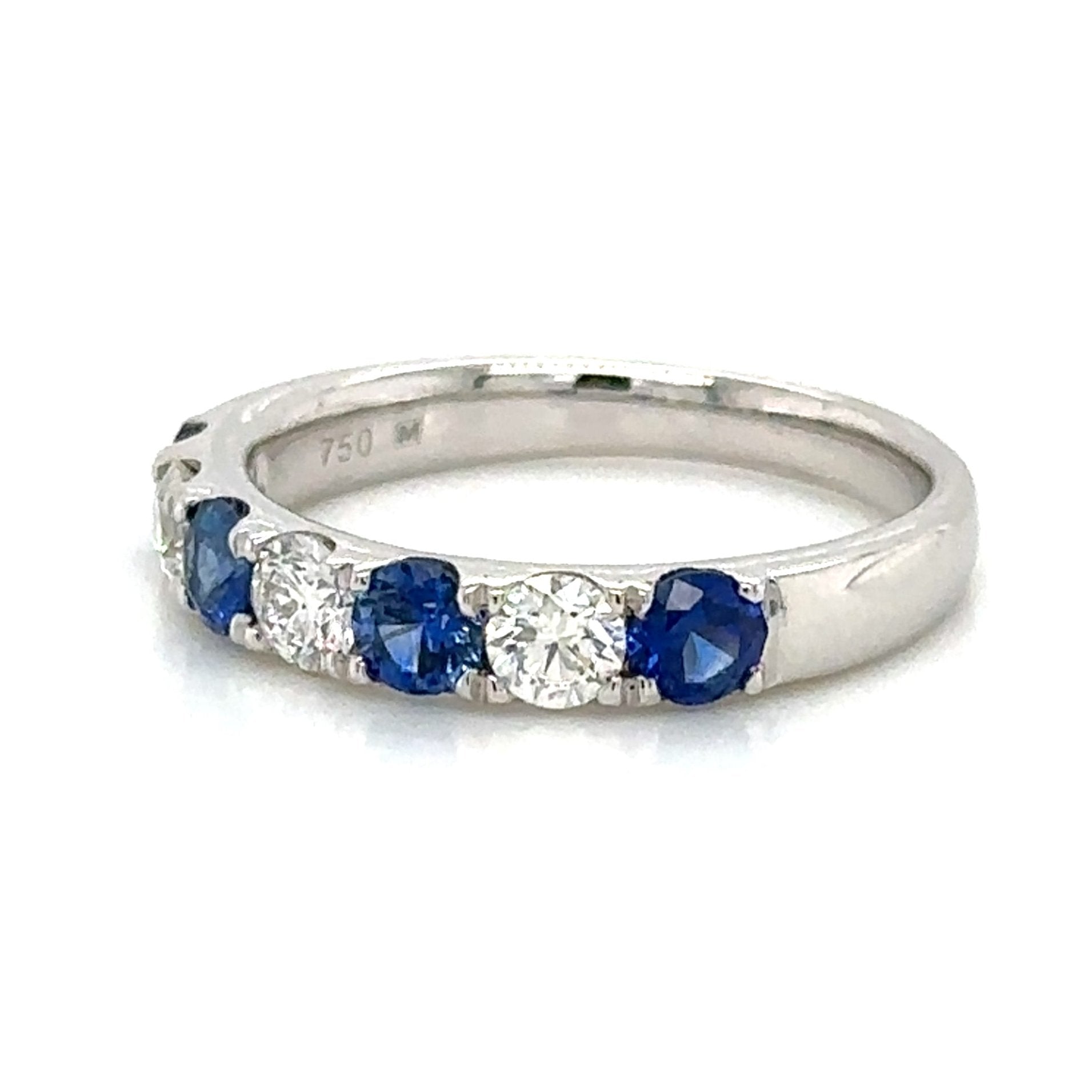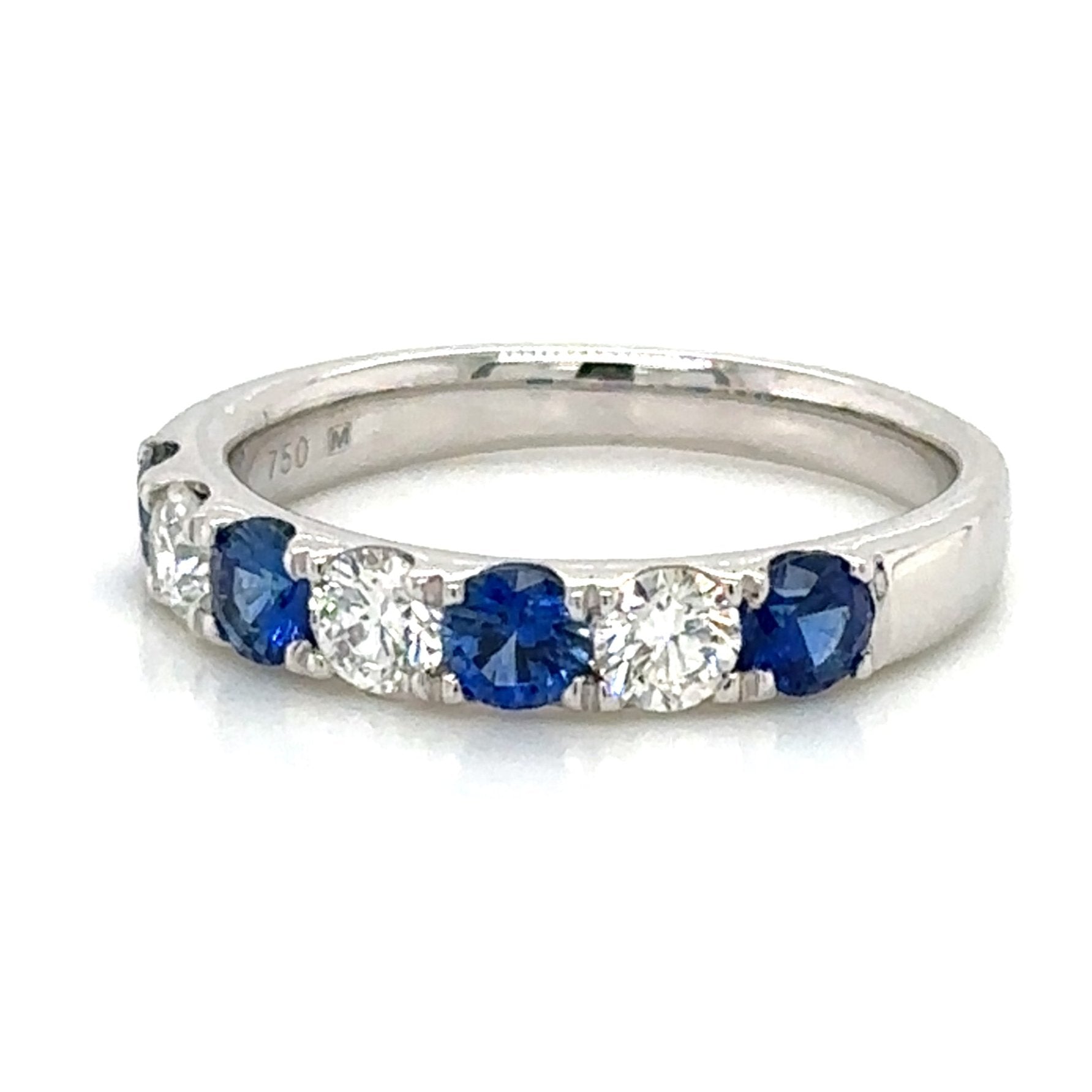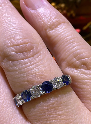 Elevate your style with the captivating 1.09carat blue sapphire & diamond band ring. Featuring a stunning blue sapphire and sparkling diamonds, this ring exudes elegance and luxury. Perfect for any occasion, this ring is sure to make a statement and add a touch of glamour to your look.