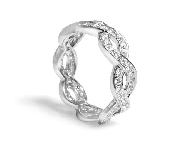 Twisted Rope Design 72 Diamonds Band. 1.12ctw total carats pave prong set, white gold unique design.