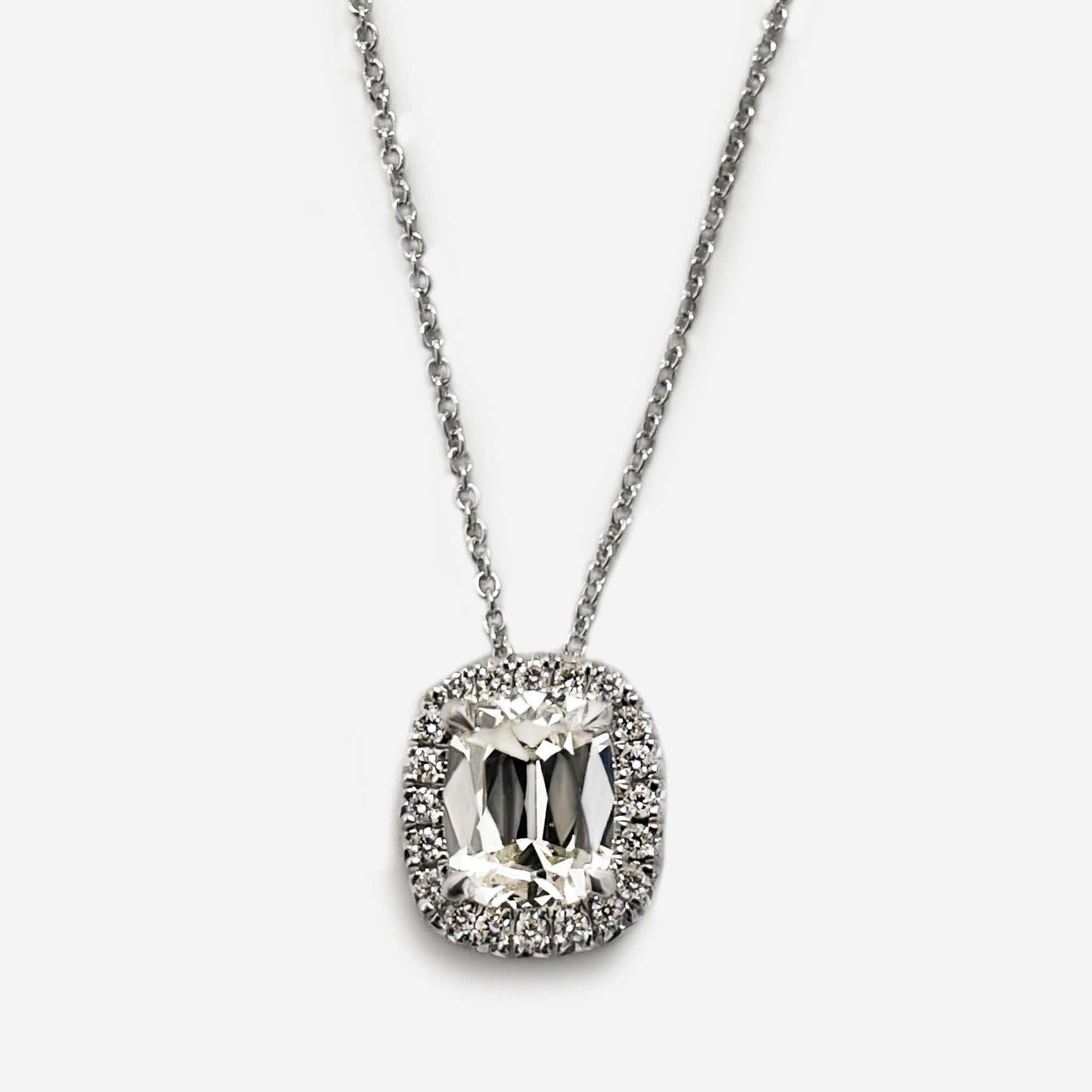 Make a statement in breathtaking luxury with this Henri Daussi Signed 1.14ct t.w. Diamond Cushion Brilliant Cut Halo Solitaire Pendant Necklace. Featuring premium quality natural diamond in a cushion-cut style, and a classic halo design, this luxurious necklace will become a treasured heirloom. Luxuriate in timeless elegance!