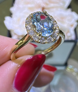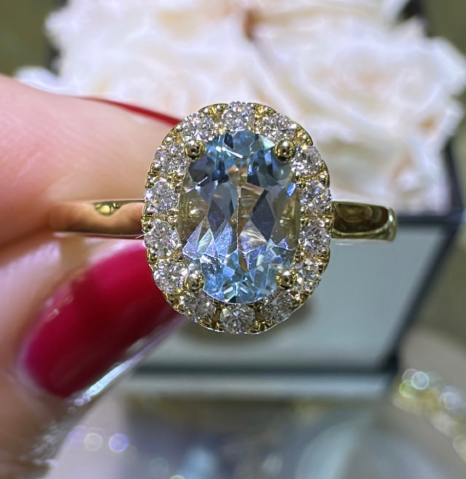 Elevate your elegance with this stunning 1.17ct total weight oval-cut blue topaz and diamond ring. The serene blue aquamarine centerpiece is beautifully complemented by sparkling diamonds, creating a timeless piece that captures light and attention.