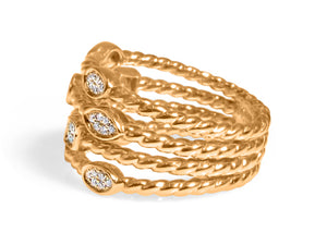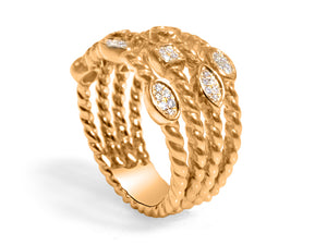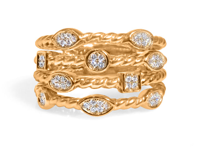 This fashion ring has a look of 4 diamond rings that are stacked together. With the total carat weight of 1.20 in 35 round diamonds this ring is sure to become one of your favs.