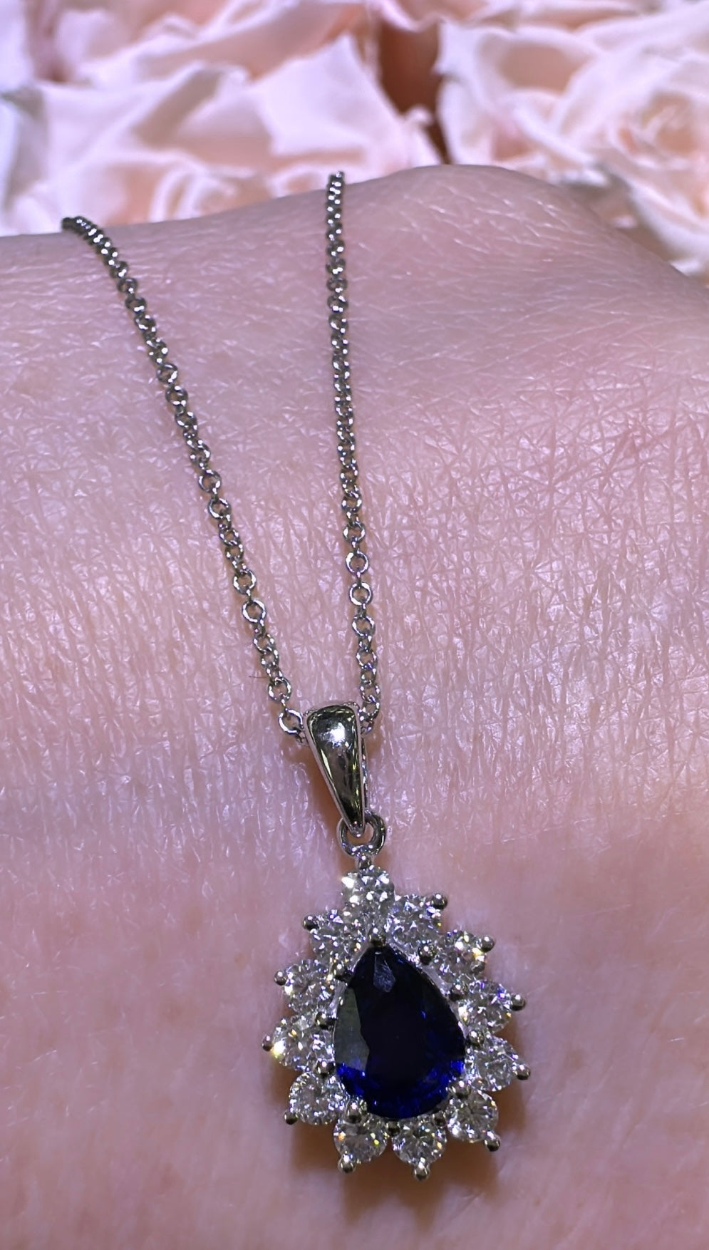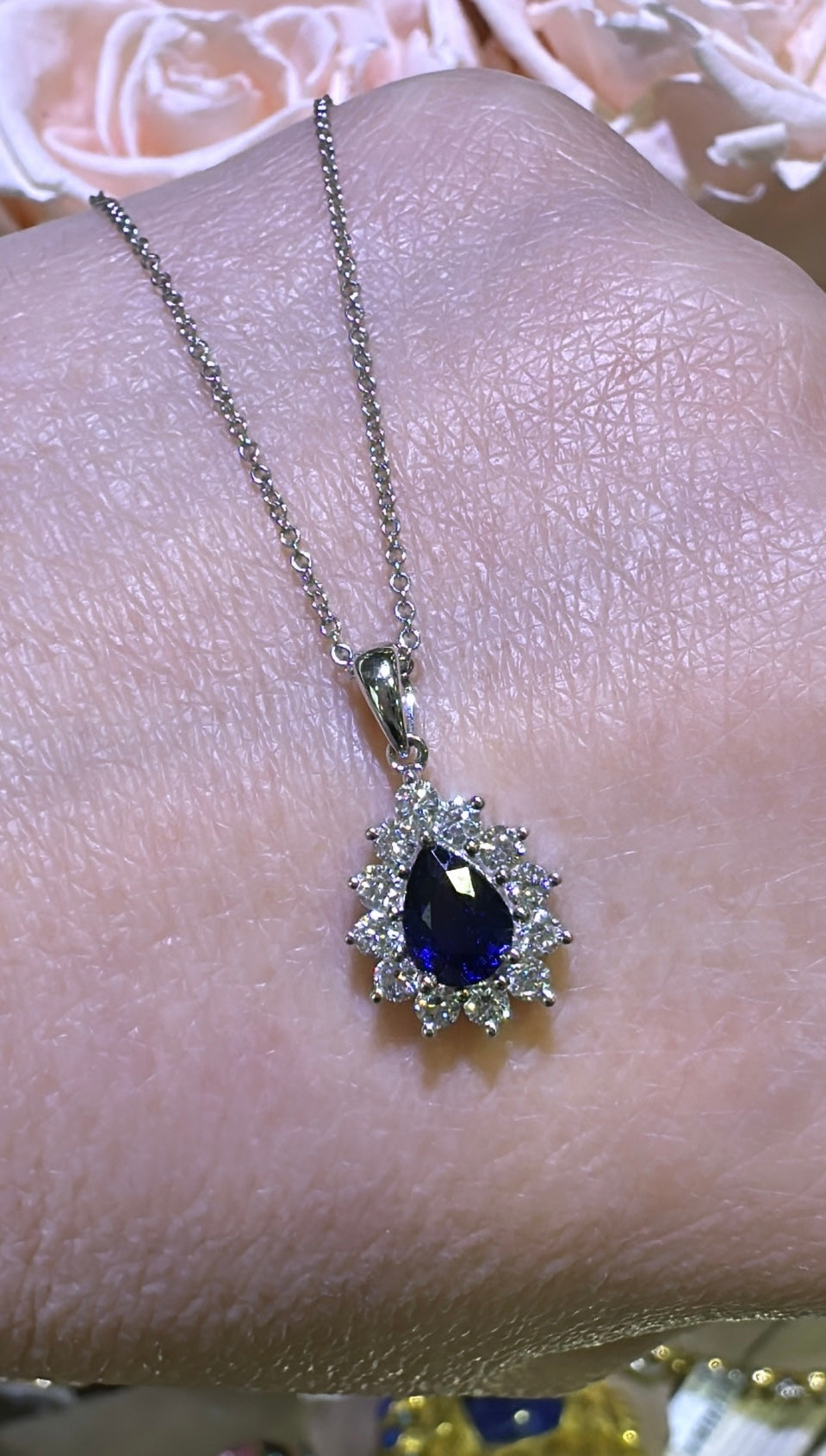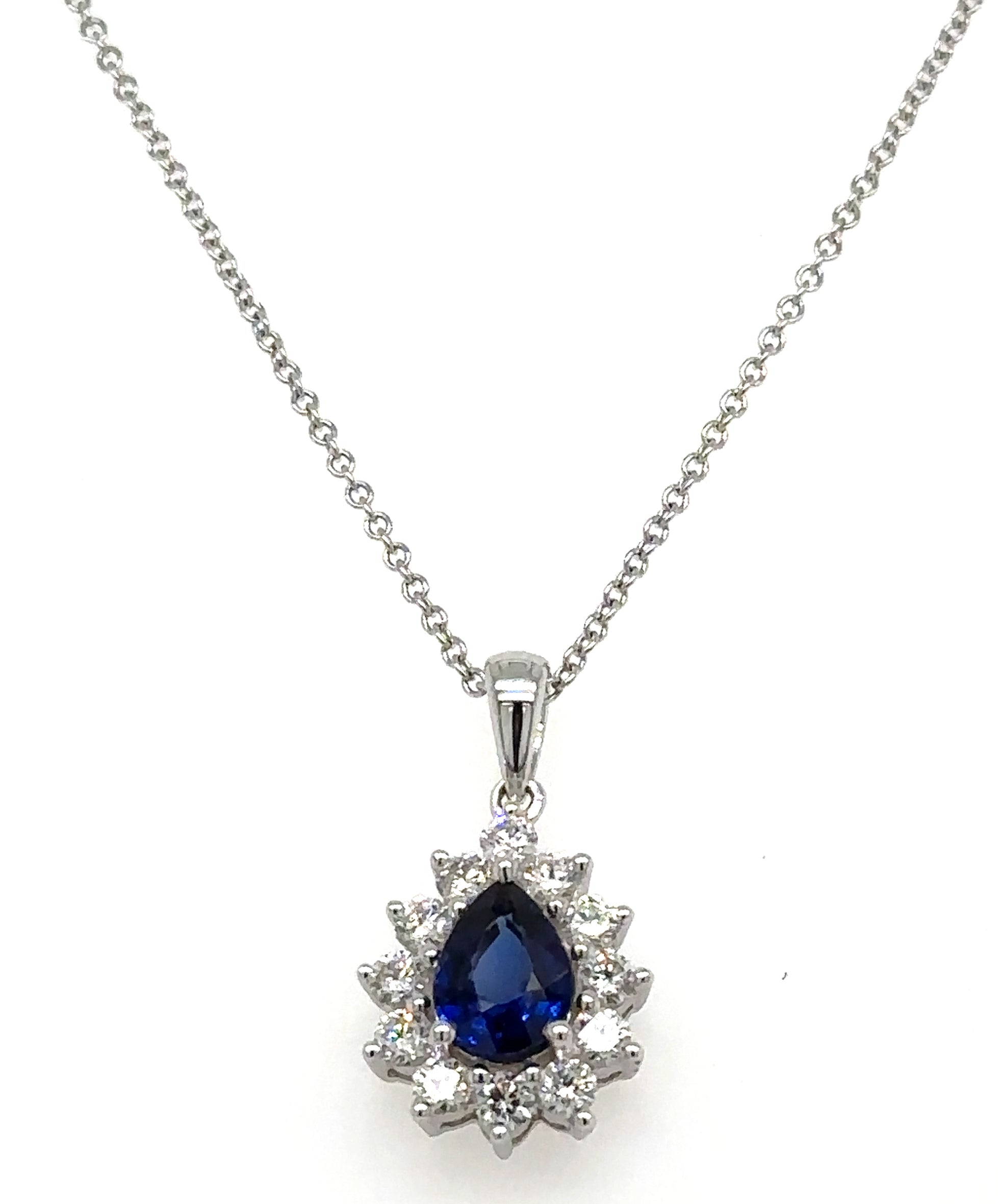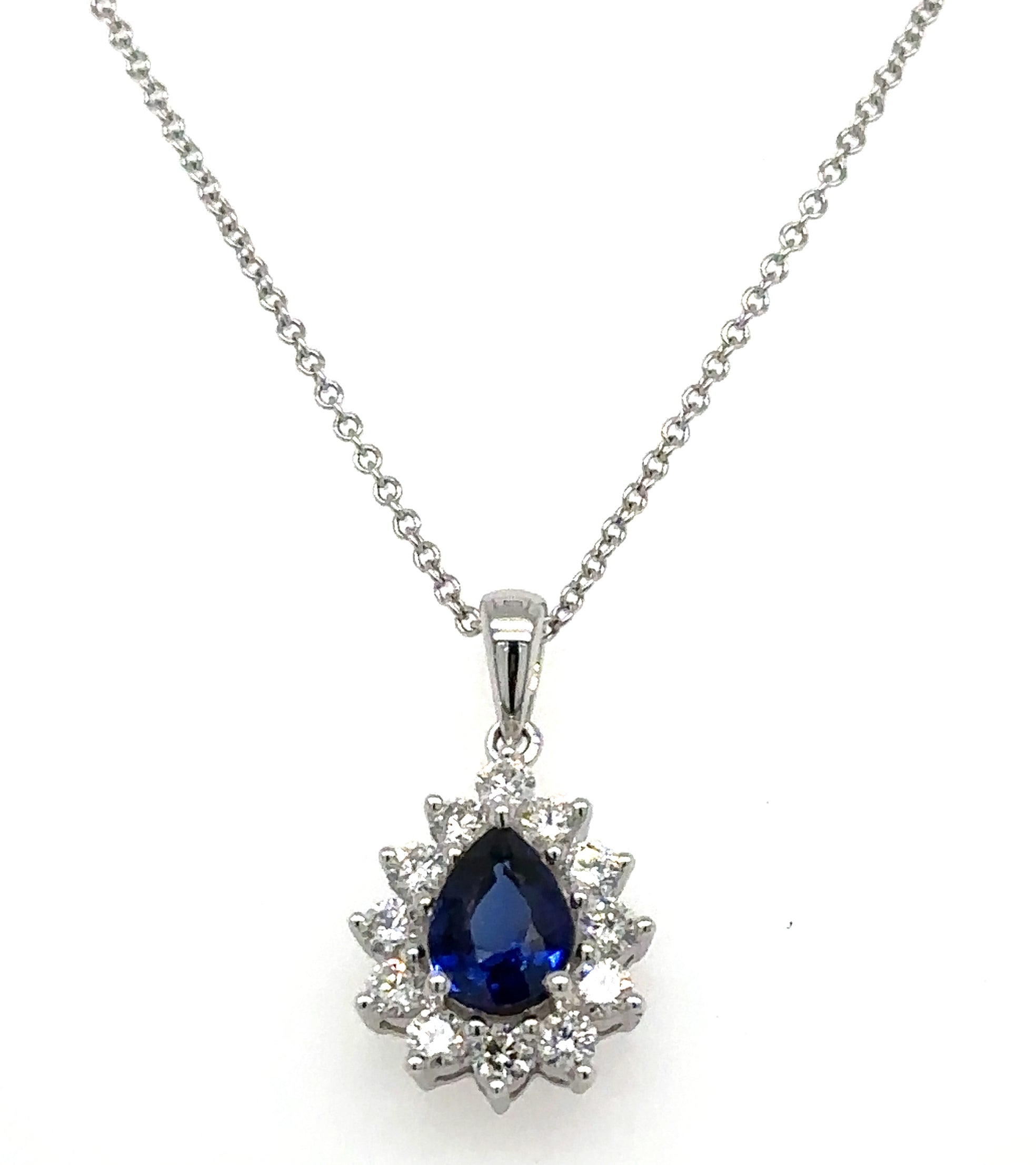 Experience the perfect combination of elegance and luxury with our 1.23carat diamond blue sapphire pendant necklace. Handcrafted with precision, this necklace shines bright and exudes sophistication. Elevate any outfit with this stunning necklace and feel like royalty wherever you go. Own the ultimate statement piece today!
