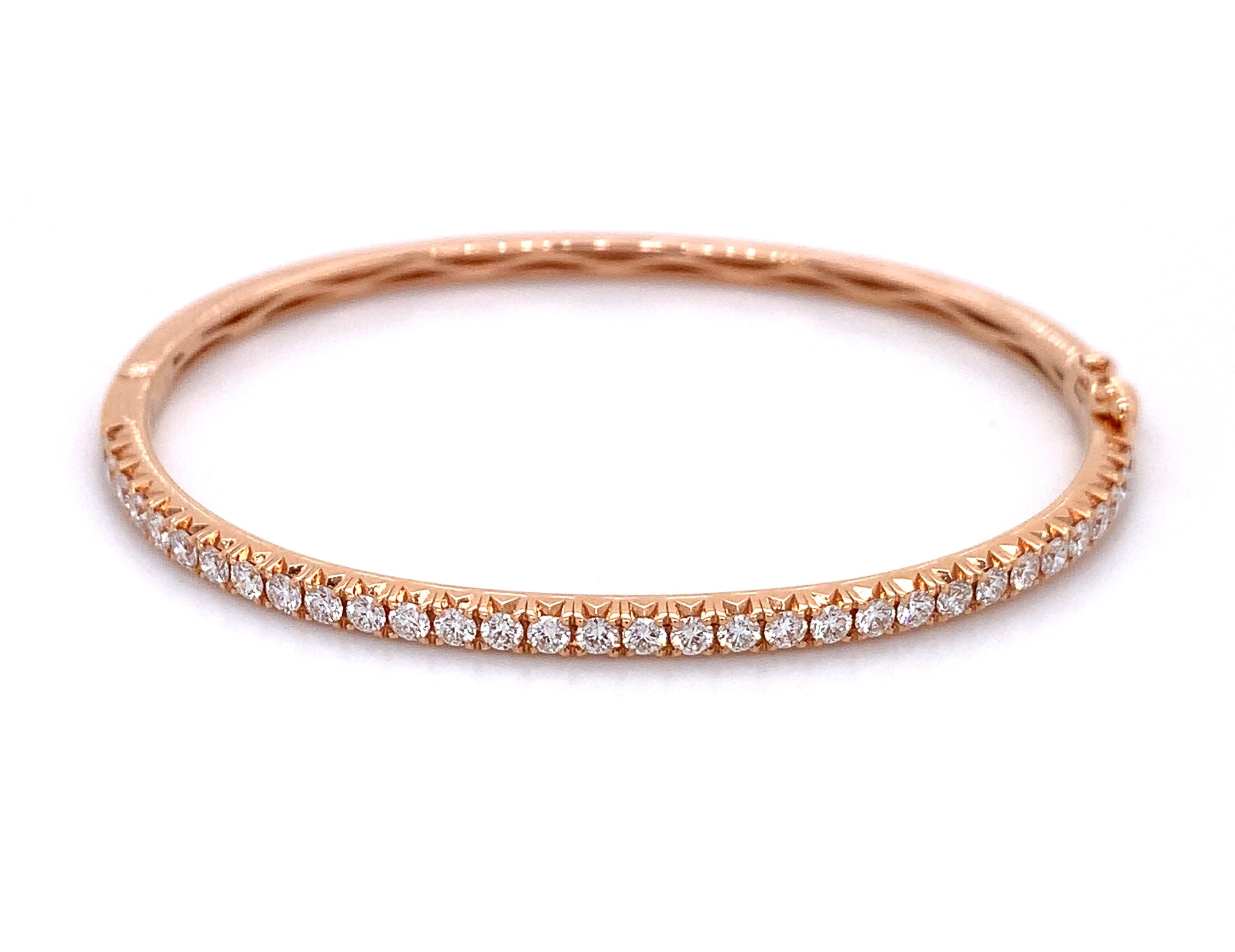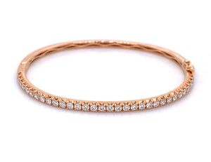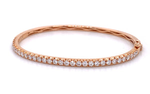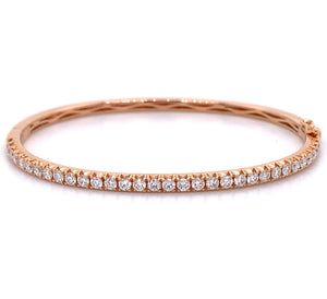 Bangles are great for stacking, but with this bold and beautiful diamond bangle bracelet, you only need one! This 18K rose gold bracelet is covered in 32 large round diamonds...