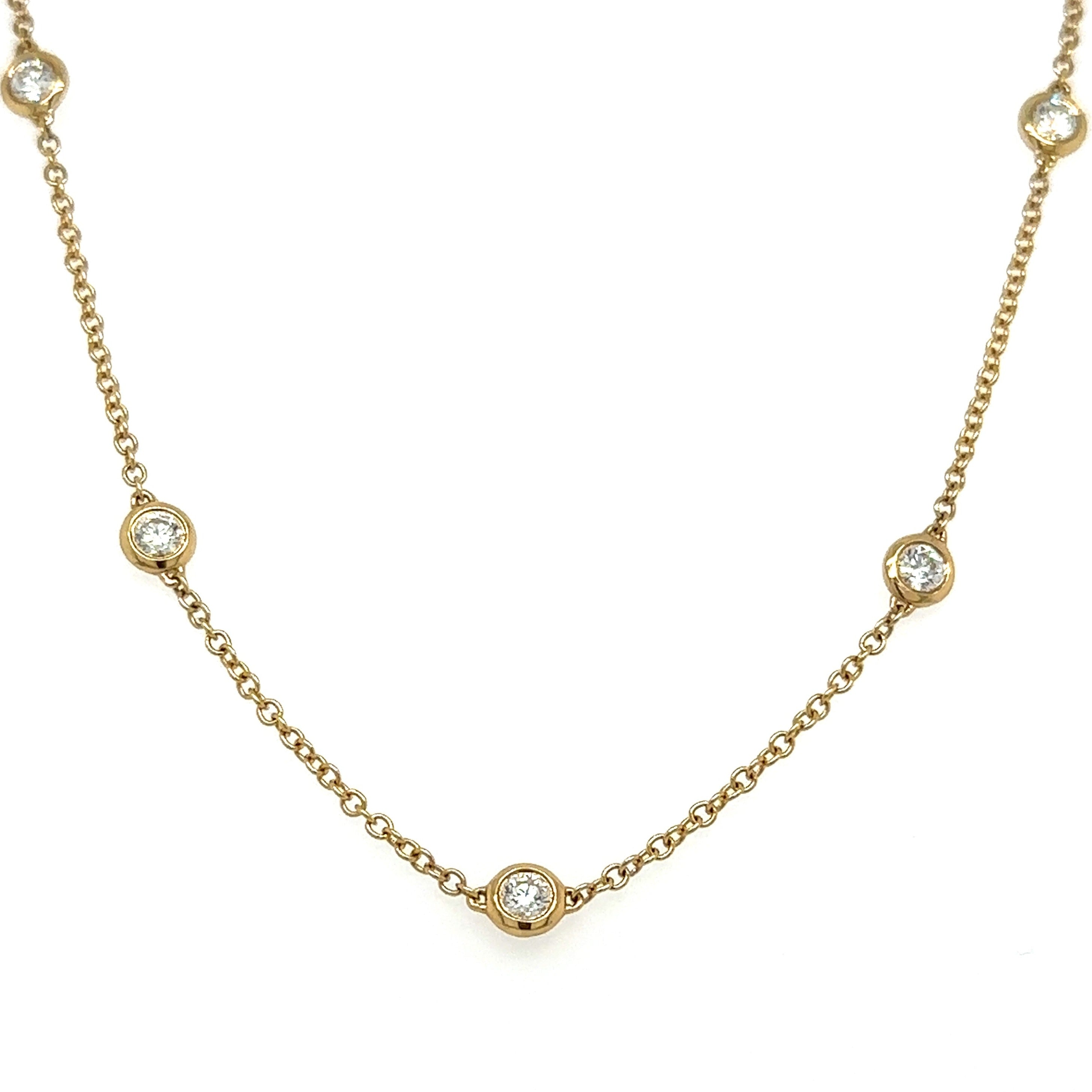 Do you want to add simplistic sophistication to your look? Look no further than this stunning 1.24ct t.w. Diamond By The Yard Necklace. Each diamond is encased in a stylish bezel setting for a timeless, classy look. Add elegance to any outfit with this exquisite necklace.
