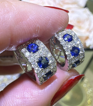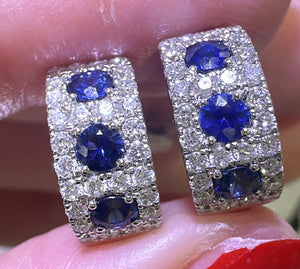 Indulge in luxury with our 1.26ct tw sapphire diamond wide pave huggie hoop earrings! These stunning earrings feature sparkling blue sapphires and diamonds, adding elegance and sophistication to any outfit. Elevate your style and let these earrings be a constant reminder of your impeccable taste.