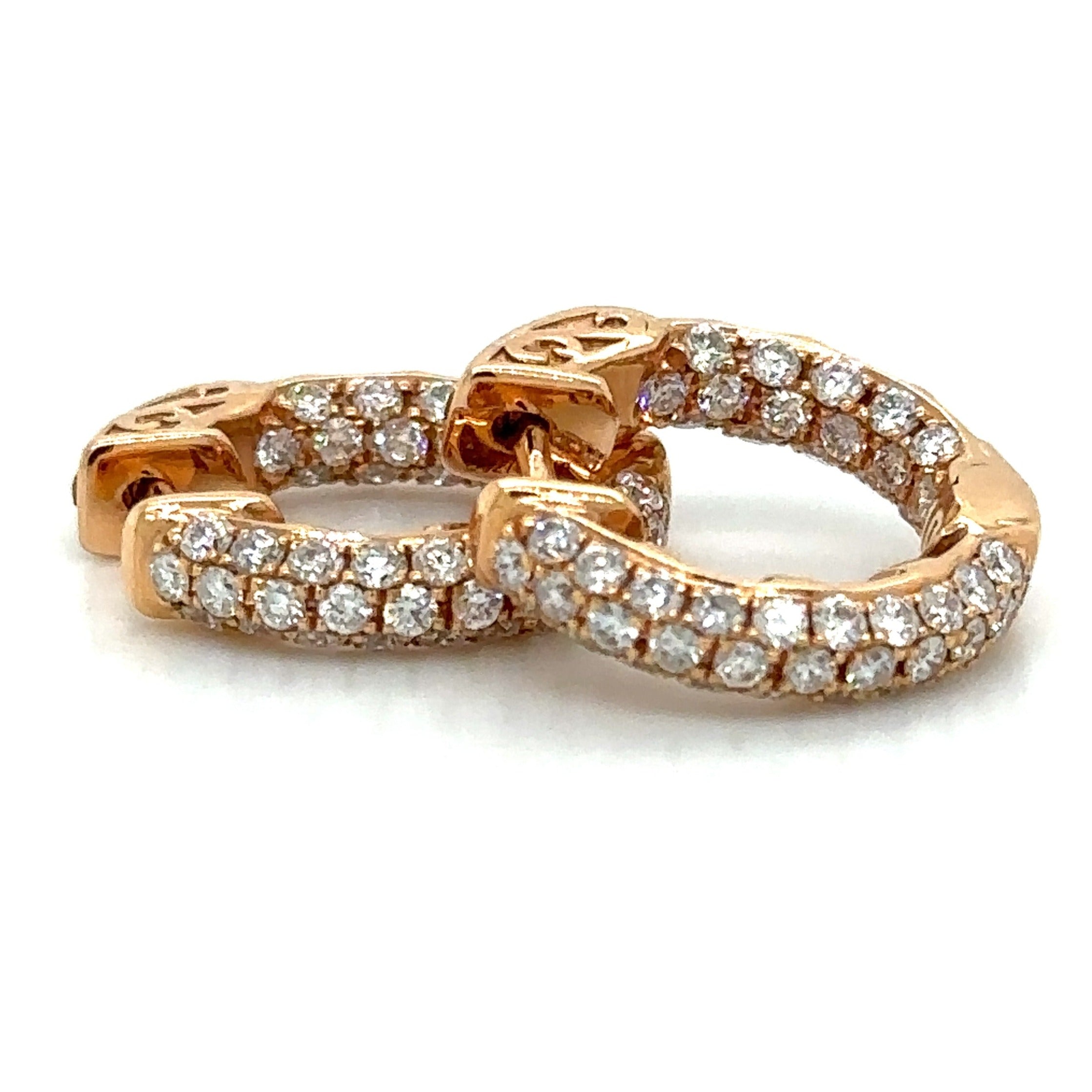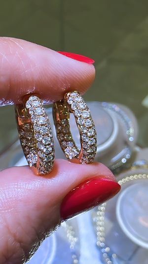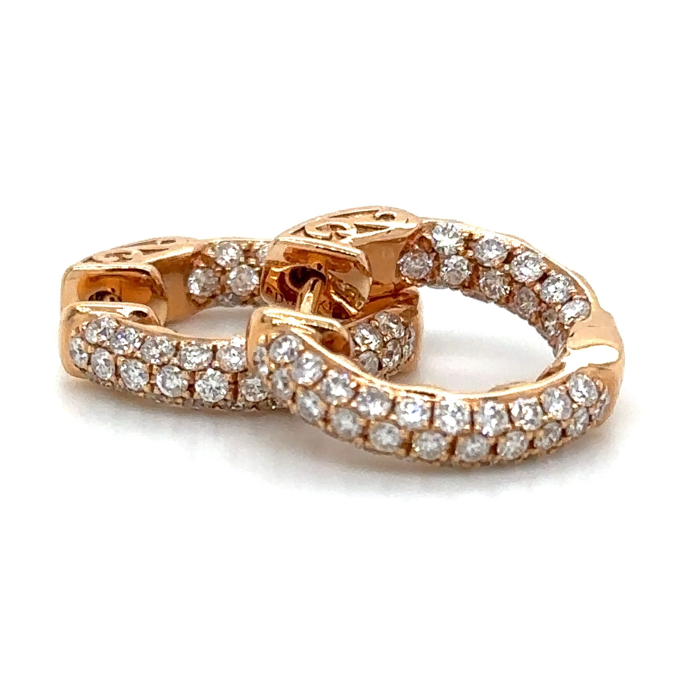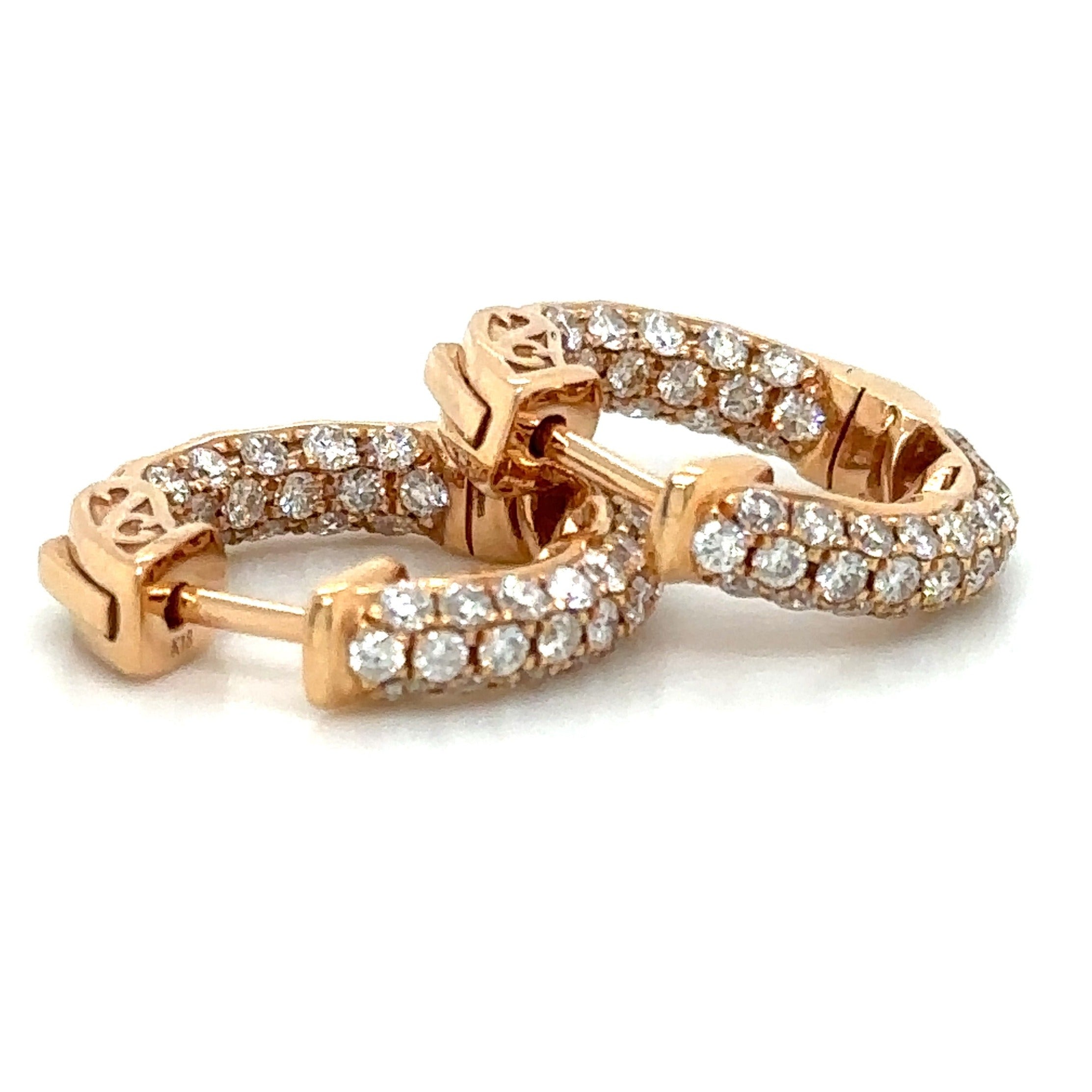 Compliment your unique style with these stunning 1.27ct tw inside out pave diamond hoop huggie diamond earrings. Showcase your sparkling look with the perfect amount of sophistication and glamour!