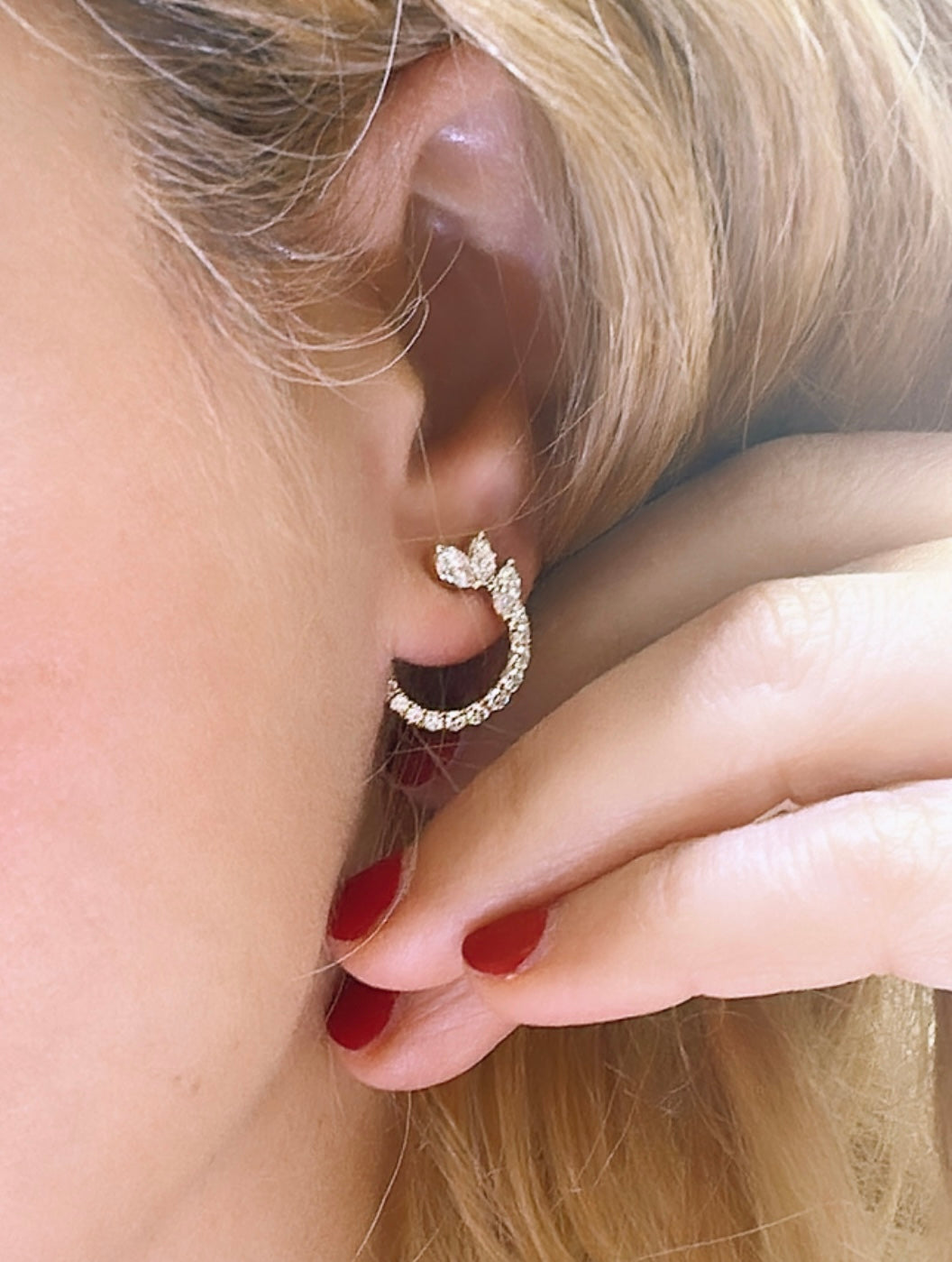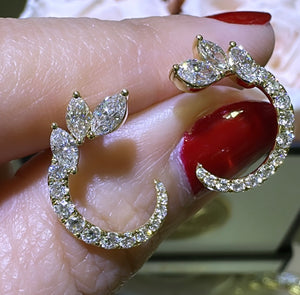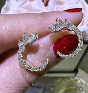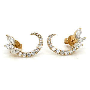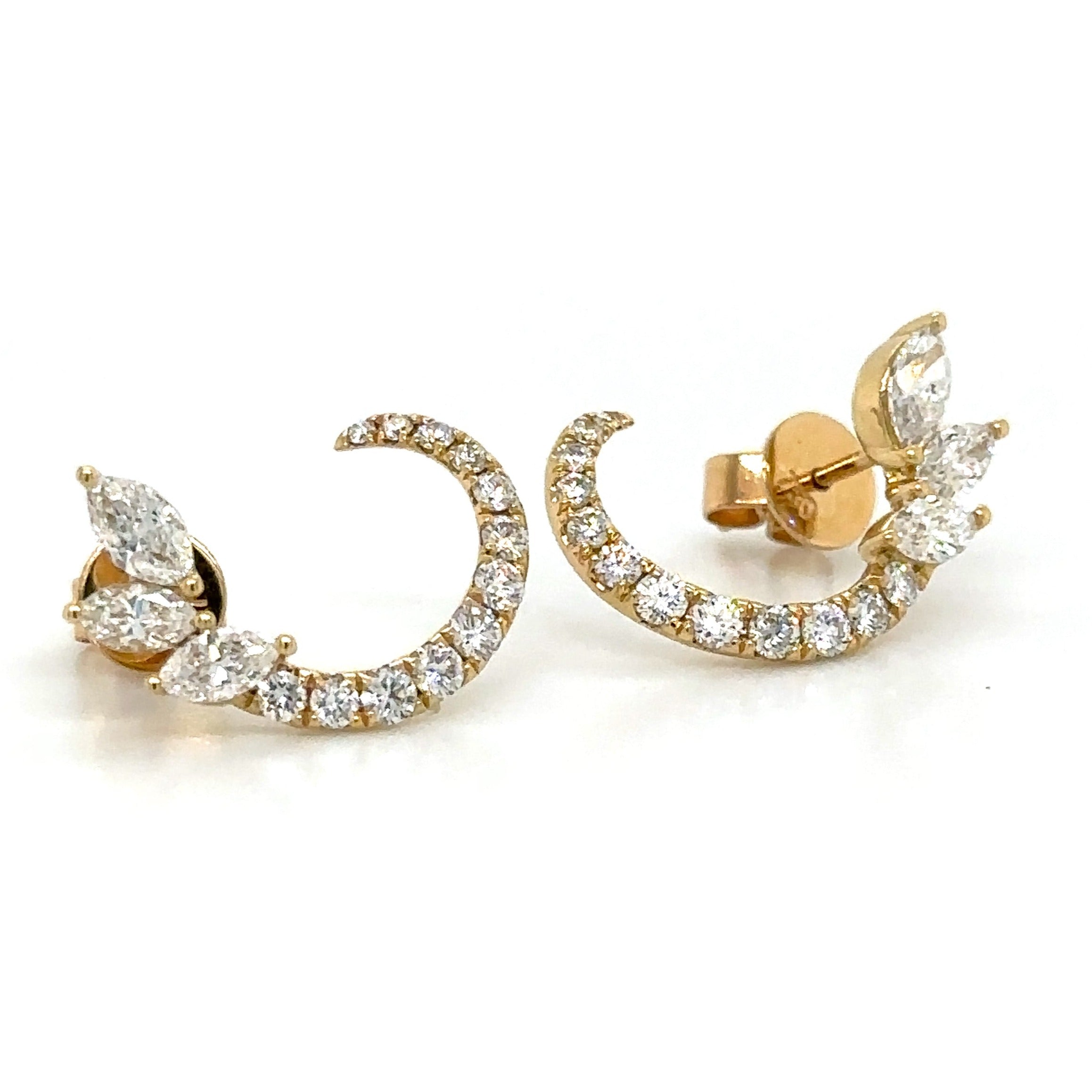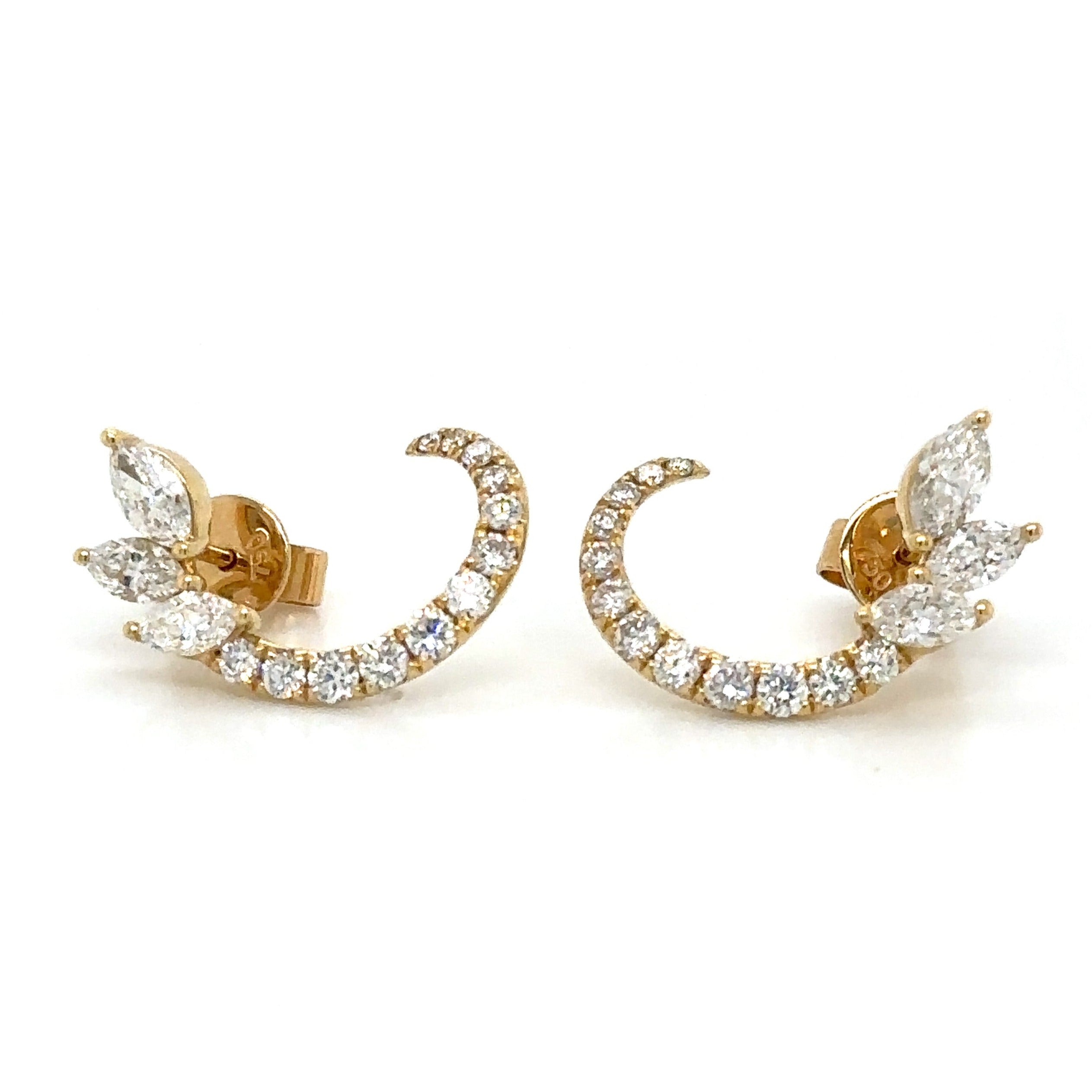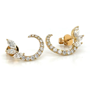 Sparkle with elegance in our 1.30ct tw diamond fancy pave set half circle earrings, featuring stunning marquise-cut diamonds. Make a statement and add sophistication to any outfit with these unique and eye-catching earrings. Elevate your style and shine bright with these exquisite earrings!