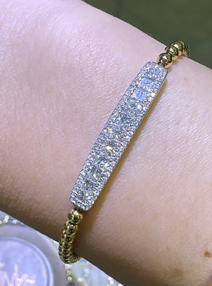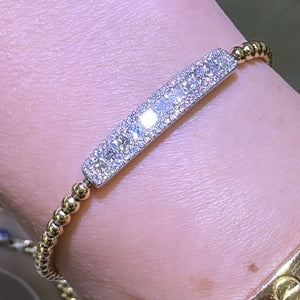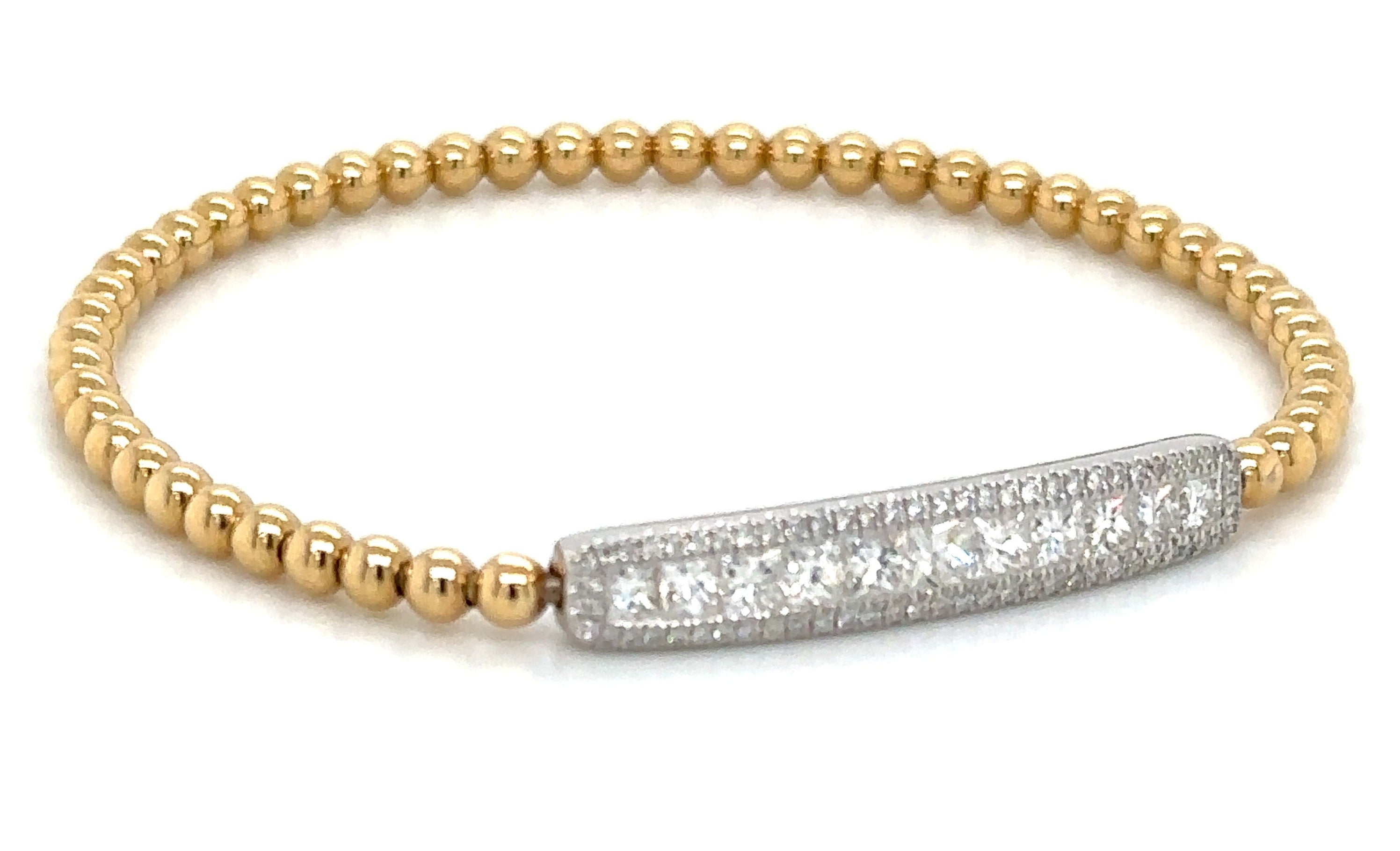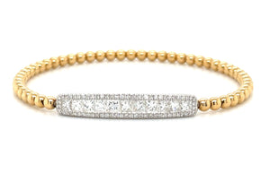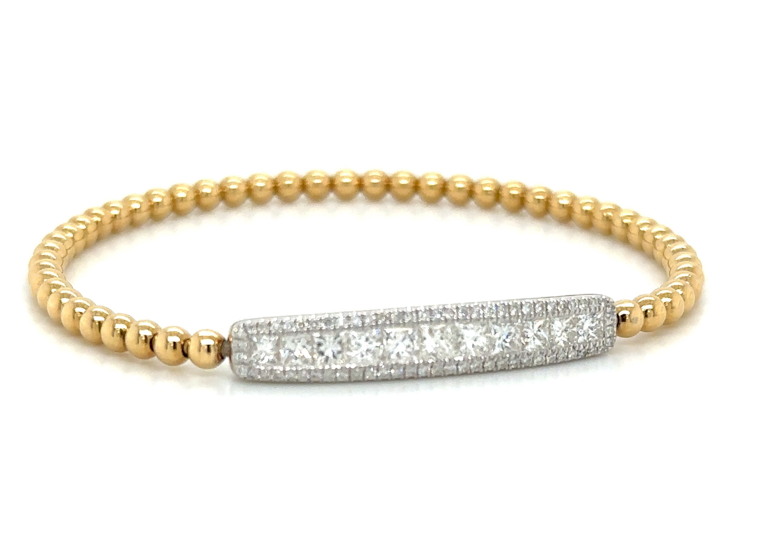 An exquisite statement piece, this 1.34ct tw princess-cut diamond beaded gold bracelet adorns your wrist with effortless elegance. Its lustrous 18K two tone gold finish perfectly complements the dazzling, diamond-studded design, creating a timeless, sophisticated look. Experience luxury and style.