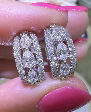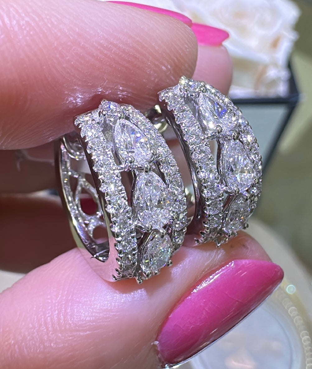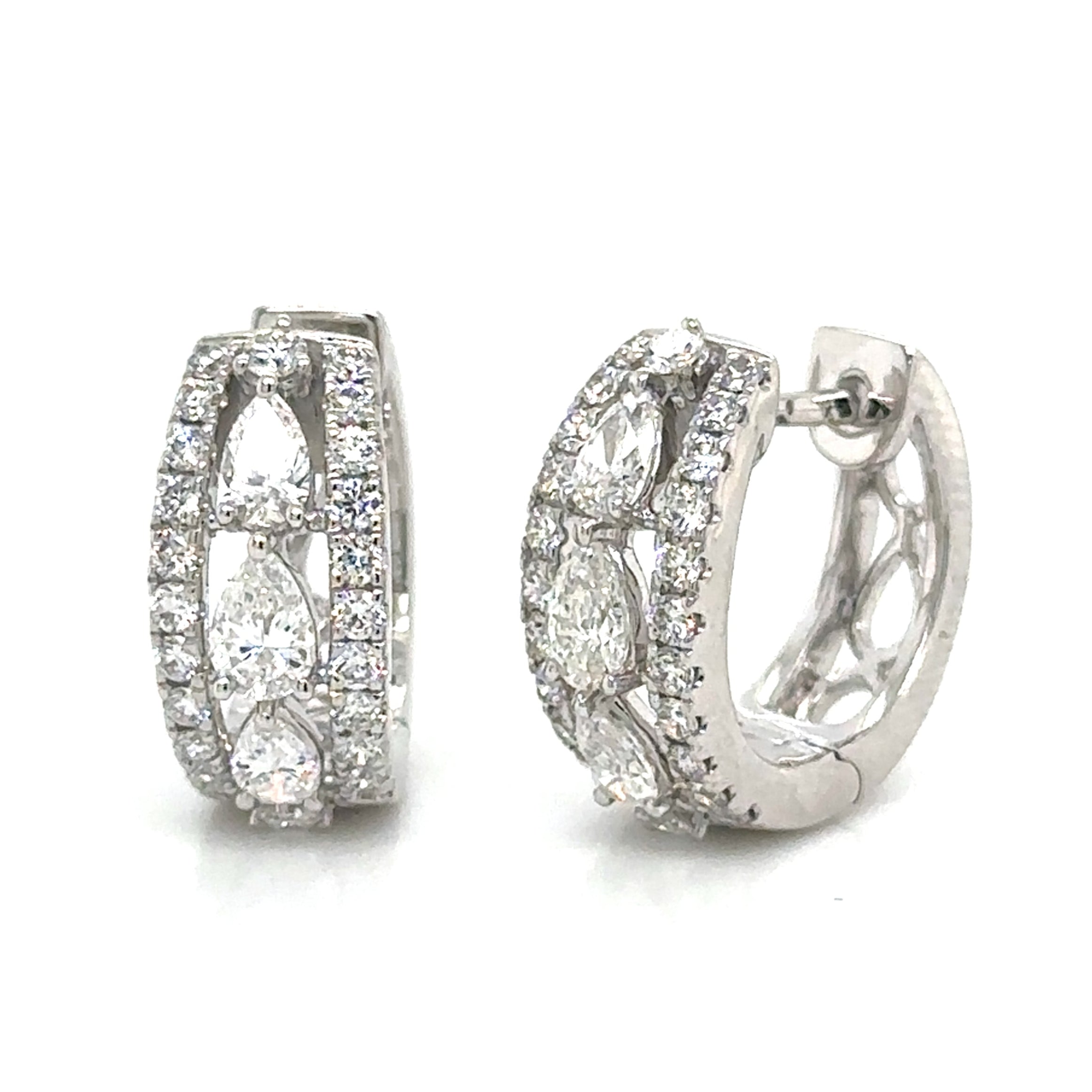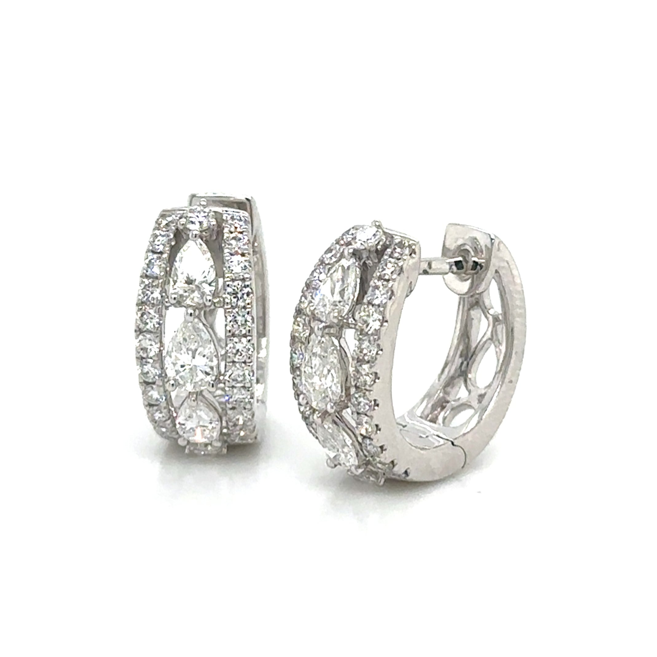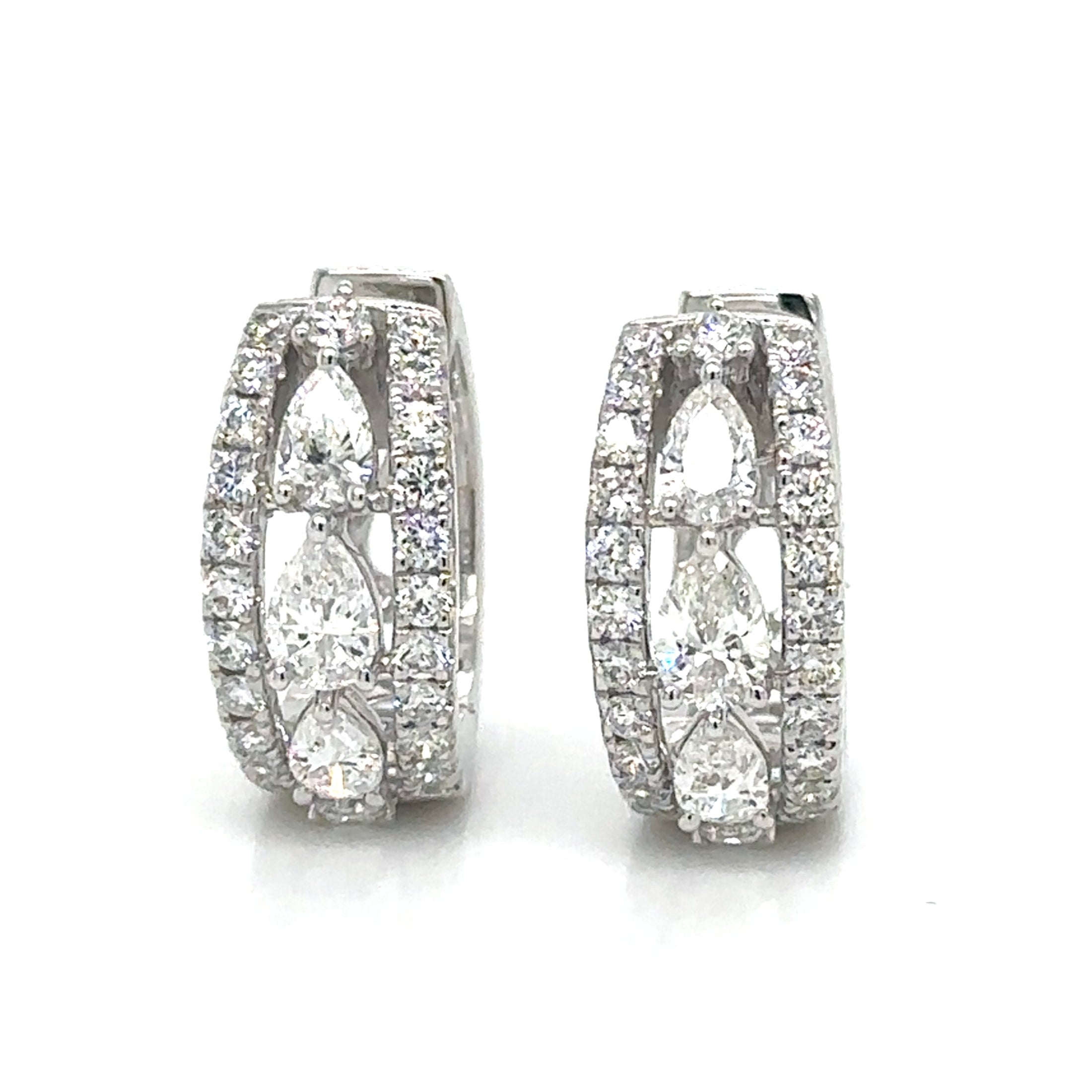 Introducing our stunning 1.37ct tw pear cut diamond huggie hoop earrings! Add a touch of glamour to any outfit with these elegant hoops featuring pear cut diamonds. With a perfect combination of sparkle and style, these earrings are a must-have for any jewelry collection.