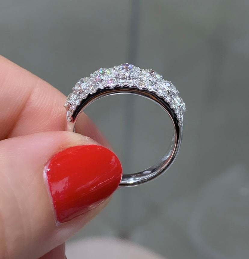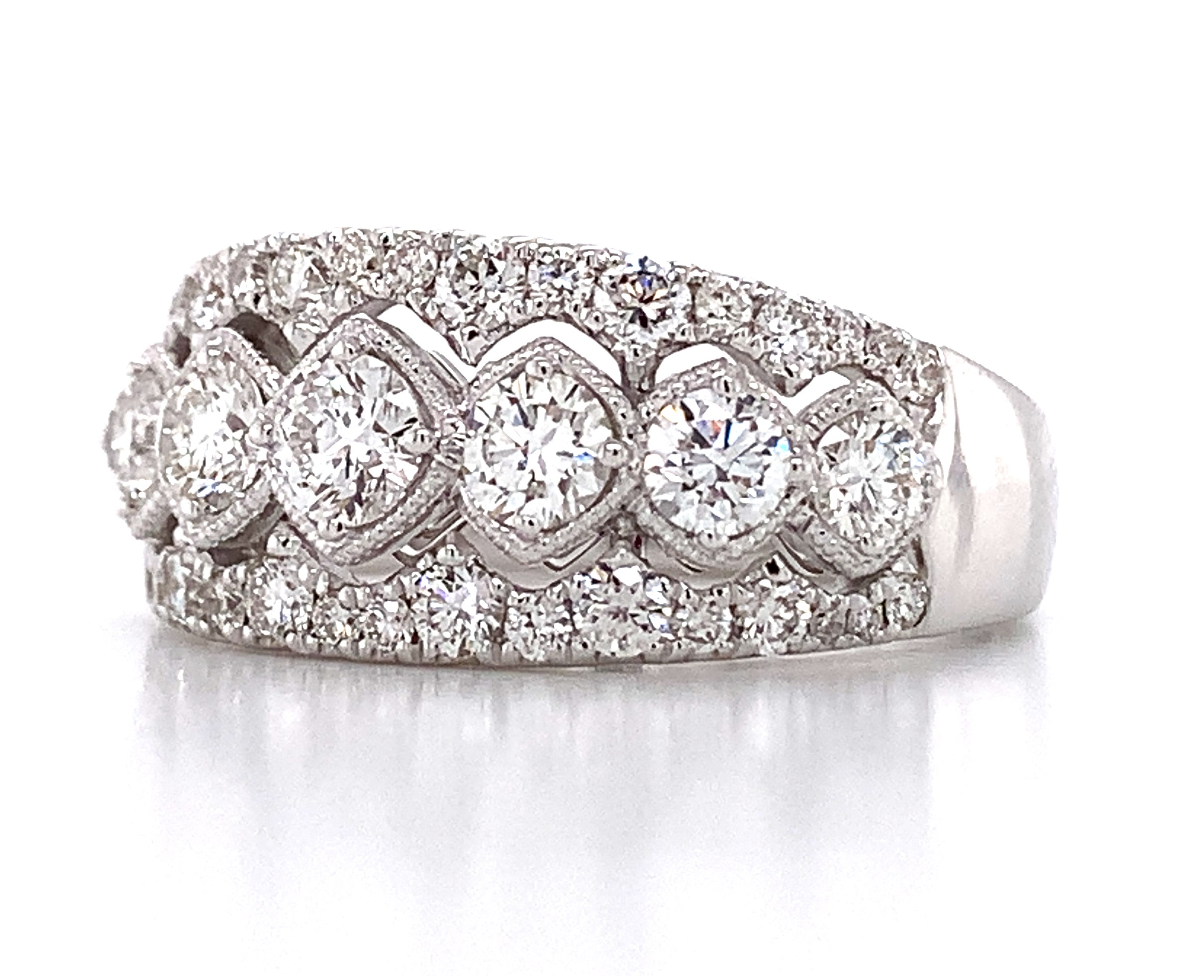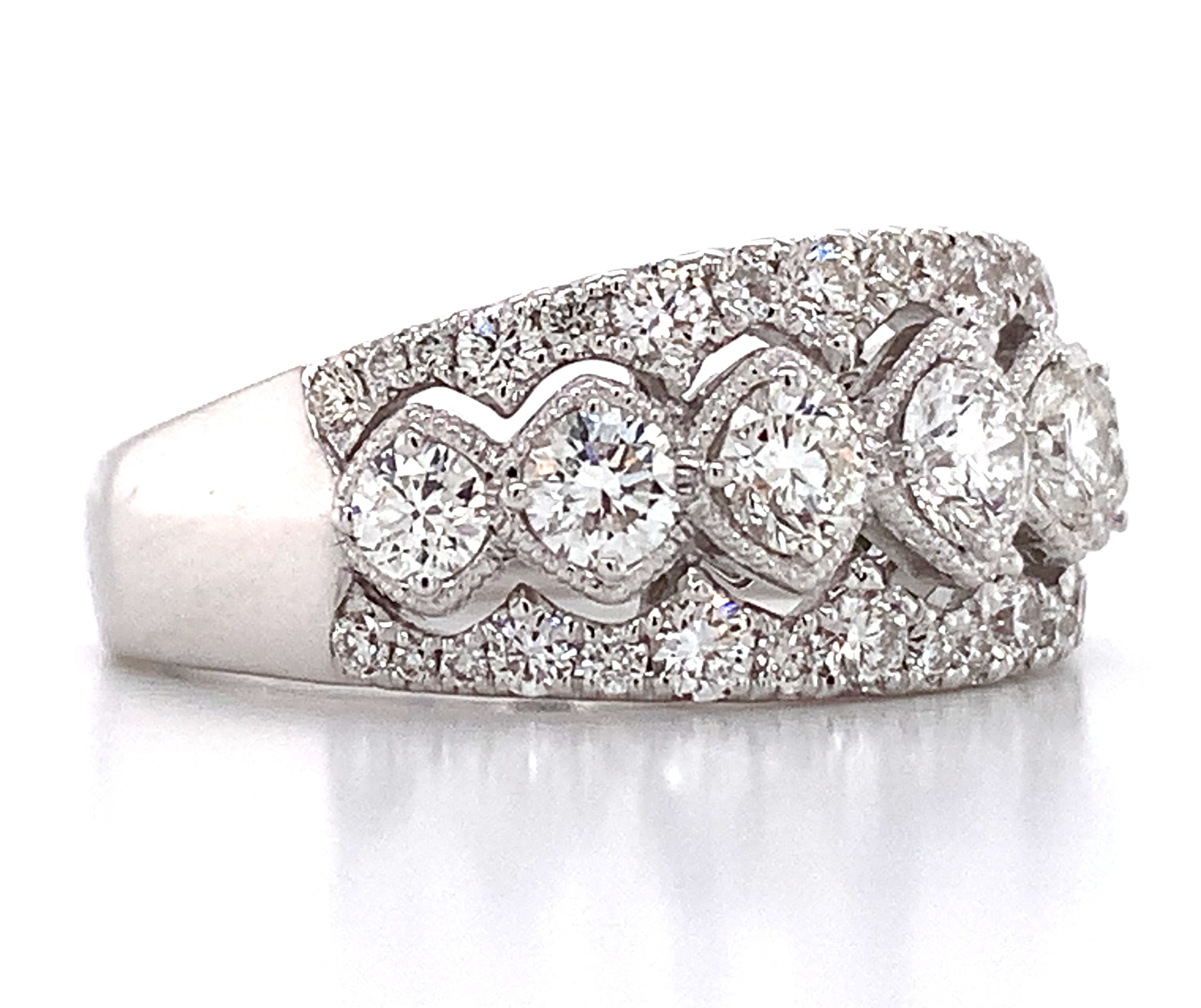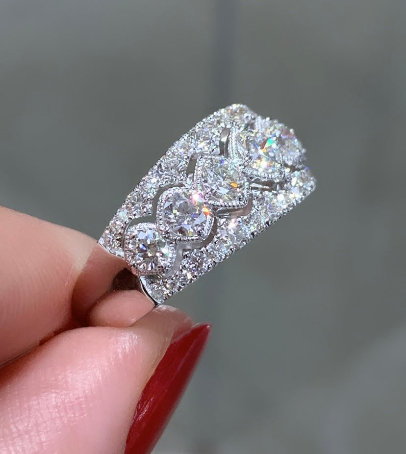 Indulge in luxury with our 1.41ct tw diamond fancy right hand cocktail ring. This stunning piece features a dazzling 1.41ct total weight of sparkling diamonds, guaranteed to make a statement. Elevate any outfit and add a touch of elegance to your look with this beautiful and timeless ring.