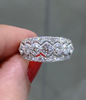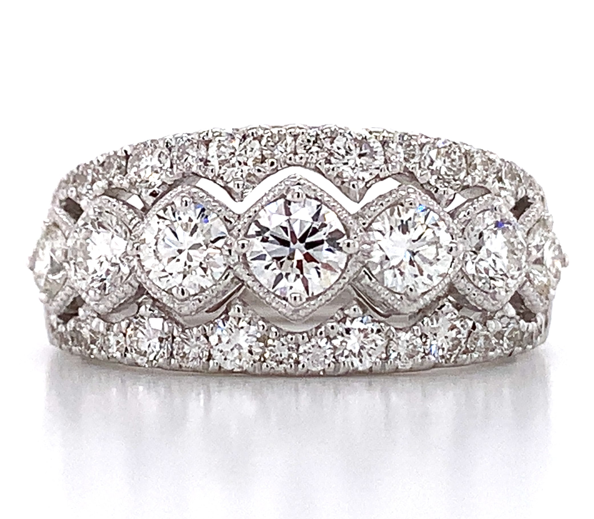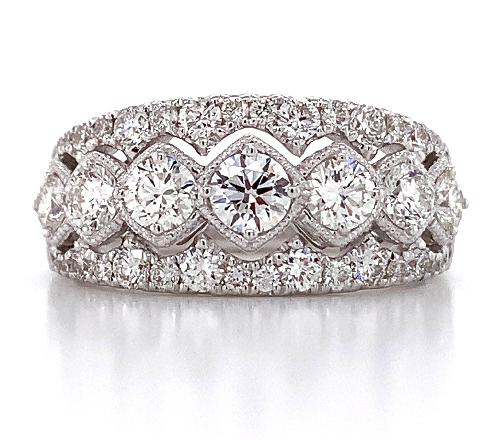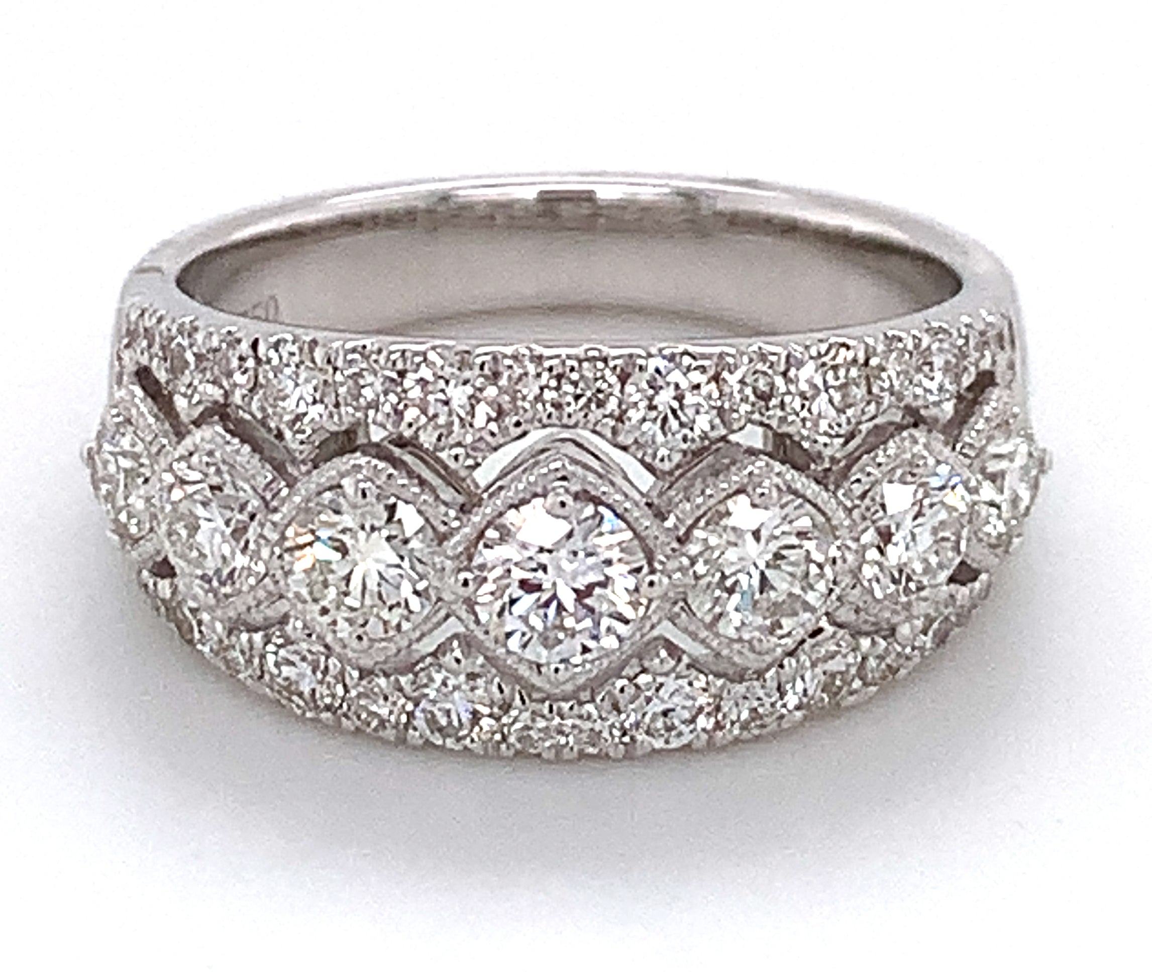 Indulge in luxury with our 1.41ct tw diamond fancy right hand cocktail ring. This stunning piece features a dazzling 1.41ct total weight of sparkling diamonds, guaranteed to make a statement. Elevate any outfit and add a touch of elegance to your look with this beautiful and timeless ring.