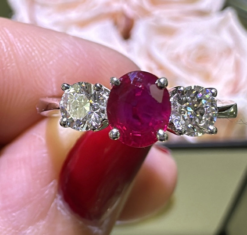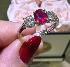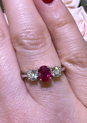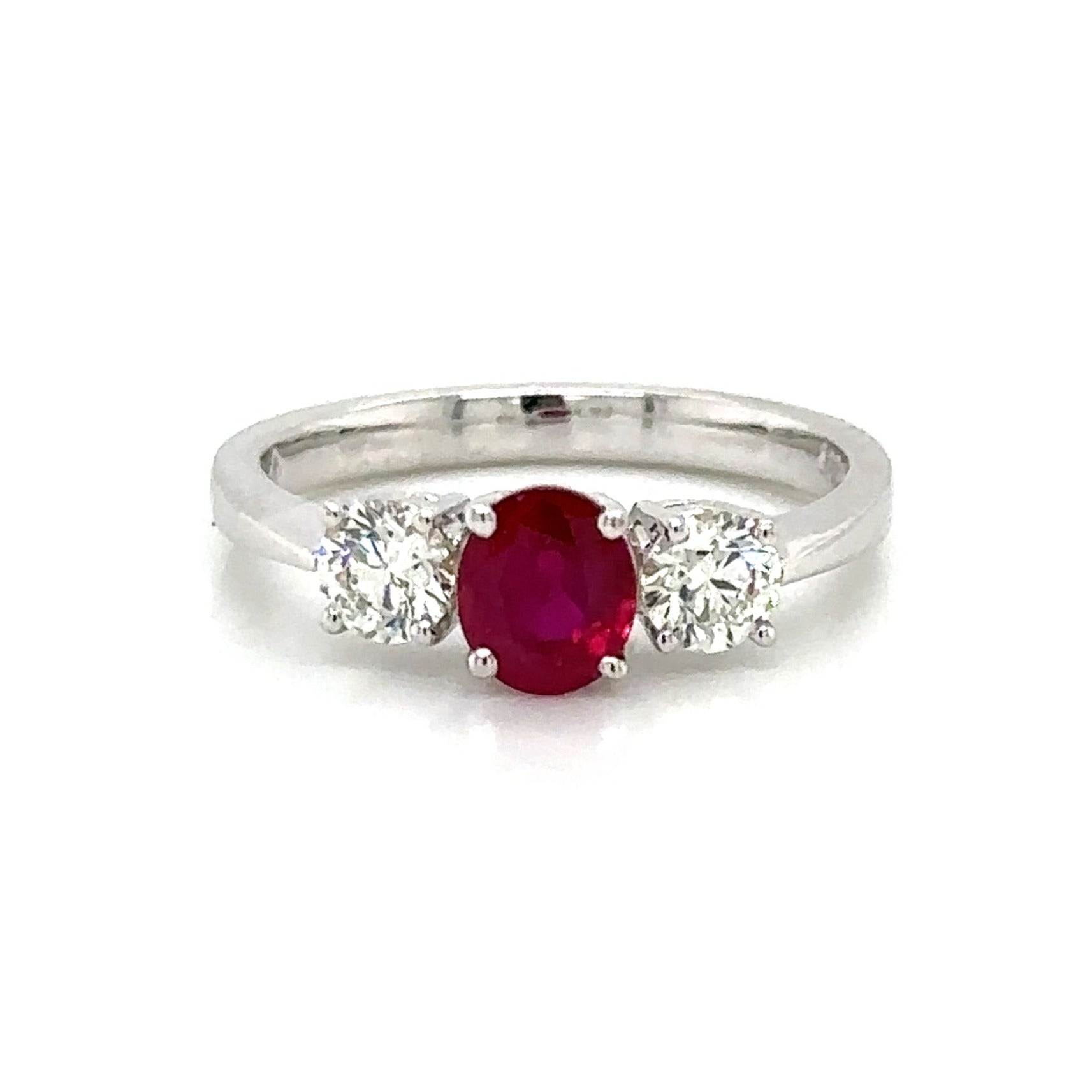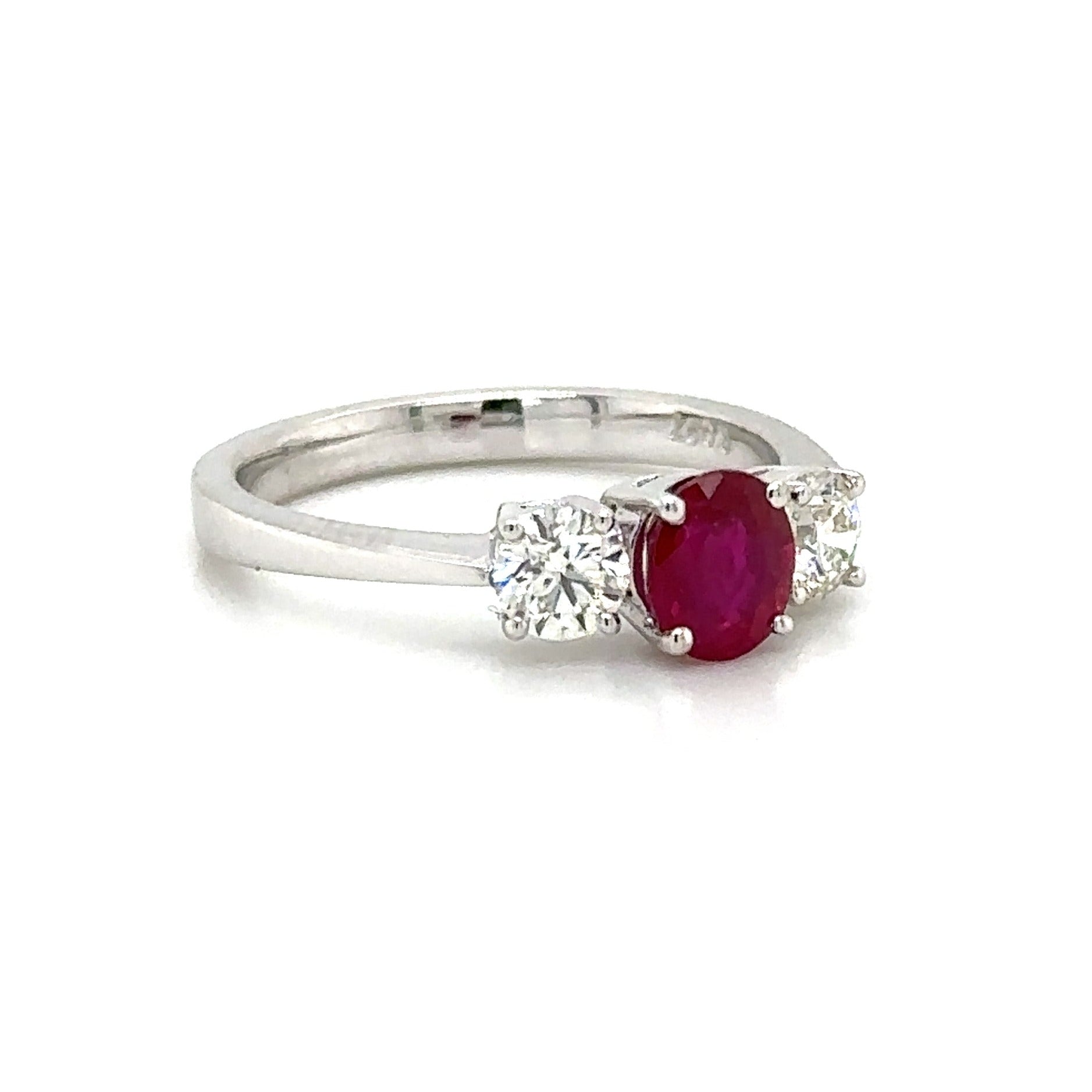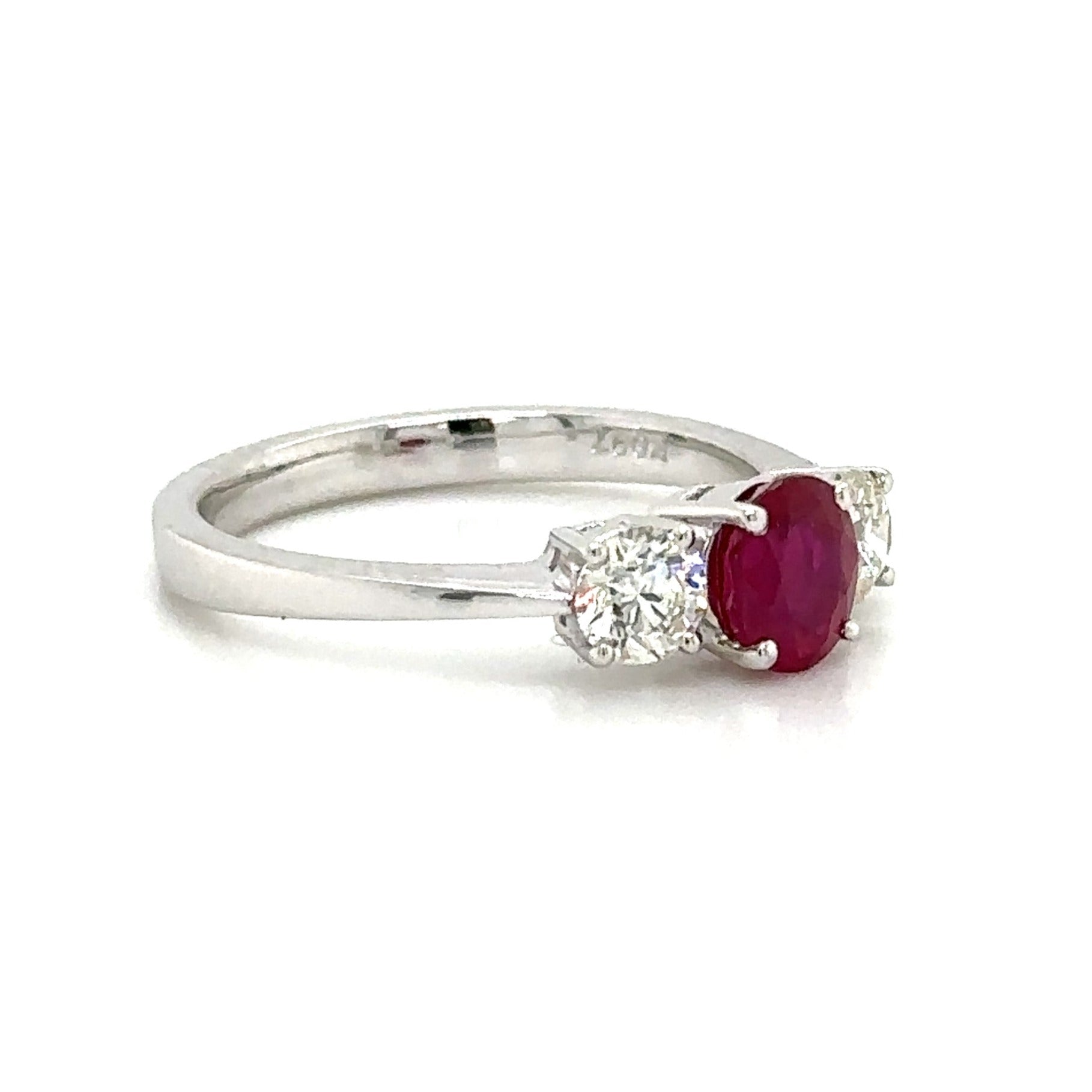 Experience the true beauty and elegance with our 1.50ct tw three stone ruby center with side diamonds ring. Featuring a dazzling ruby oval center stone flanked by sparkling diamonds, this ring will add a touch of luxury to any outfit. A timeless symbol of love and affection, it's the perfect gift for that special someone.