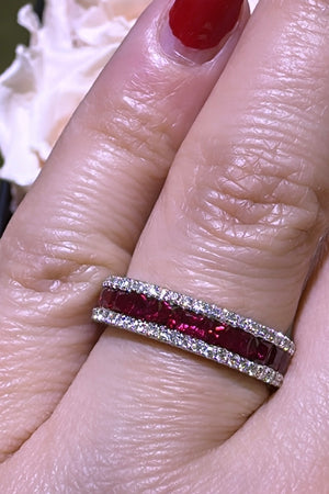 Gem-Stone Details: 12 Princess Cut Rubies 1.28ct tw / 50 Round Diamonds 0.24ct tw