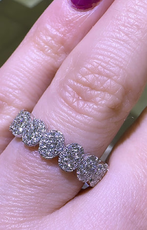 Indulge in the luxurious elegance of our 1.53ct tw ladies oval full eternity cluster set diamond ring. With a stunning scalloped design and 1.53ct tw of sparkling diamonds, this ring is the epitome of sophistication. Elevate any look with this timeless and eye-catching piece.