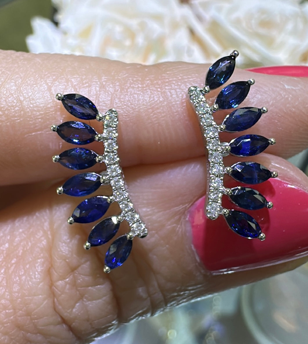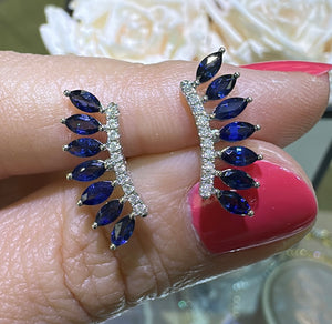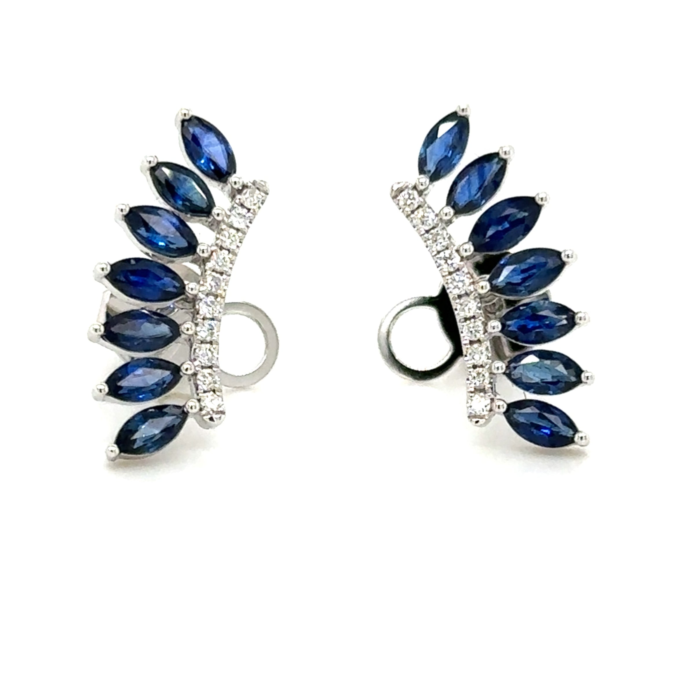 Elevate your look with these stunning 1.53ct tw blue sapphire climber diamond earrings! The sparkling diamonds and bold blue sapphires wrap elegantly along your earlobe for a modern and sophisticated touch.