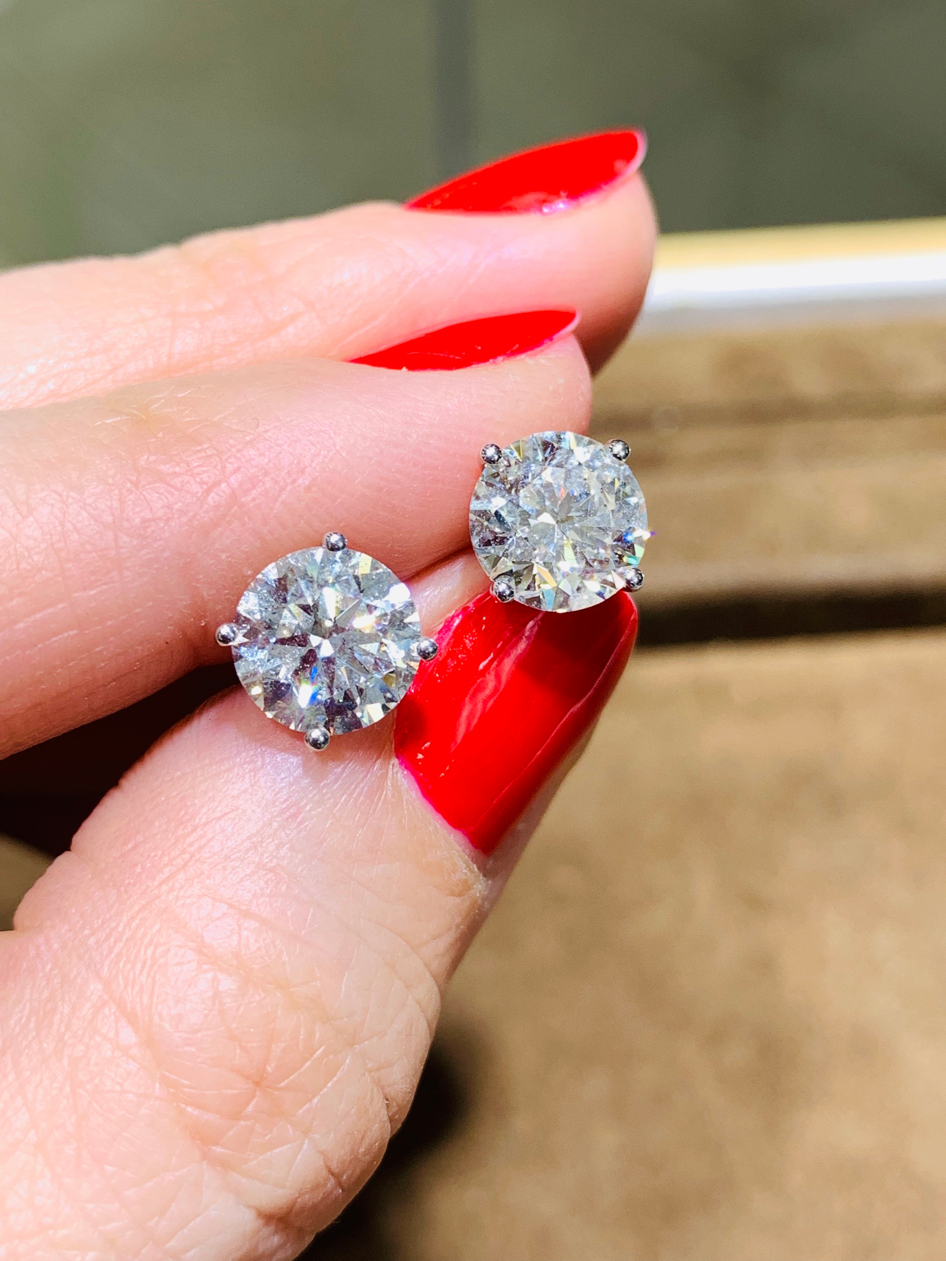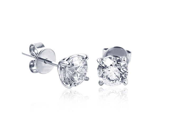 One of a kind, our 1.53 carat gold stud earrings are timeless and sure to please for everyday wear. These beautiful stud earrings show off over 0.75 carats in each stud which makes these earrings a no brainier. Metal: 14kt White Gold Diamond Shape: Round Brilliant Diamond Weight: 1.53ctw Setting Type: Four Prong Martini Backings: Push Backs