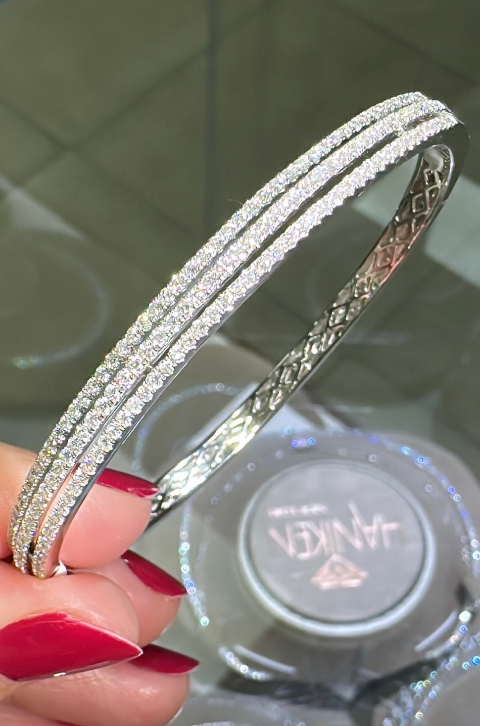 1.56ct tw Triple Row Diamond White Gold Bangle Bracelet
