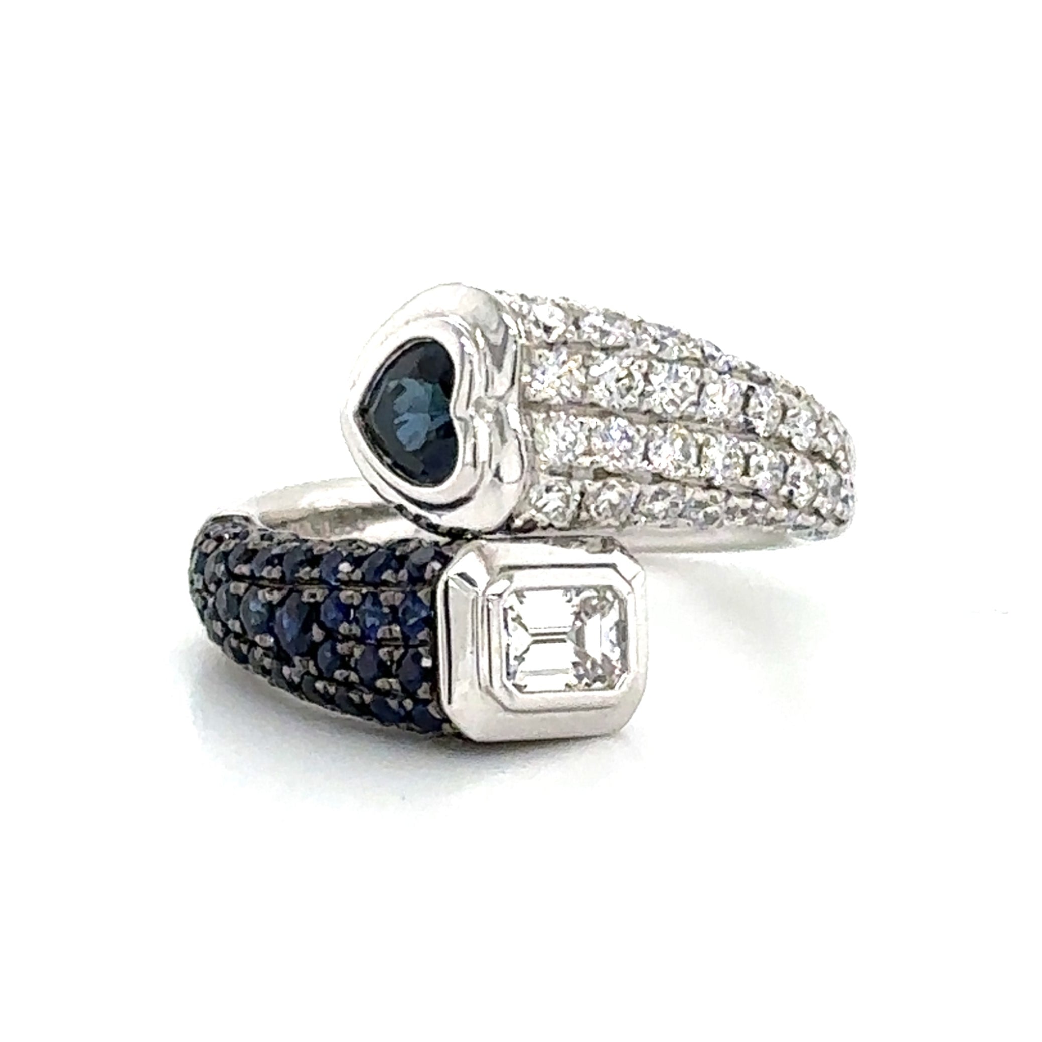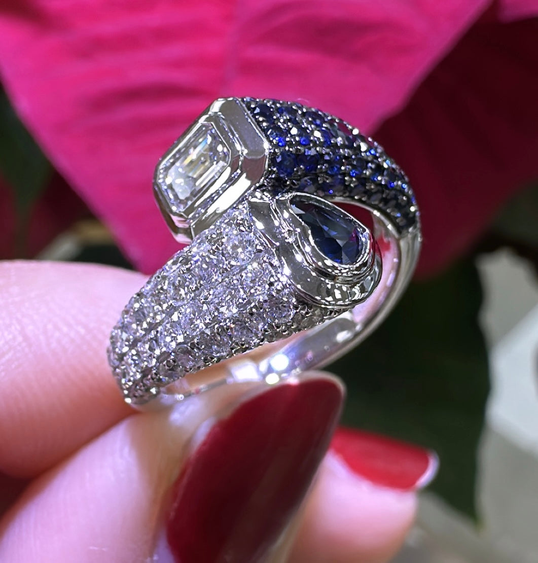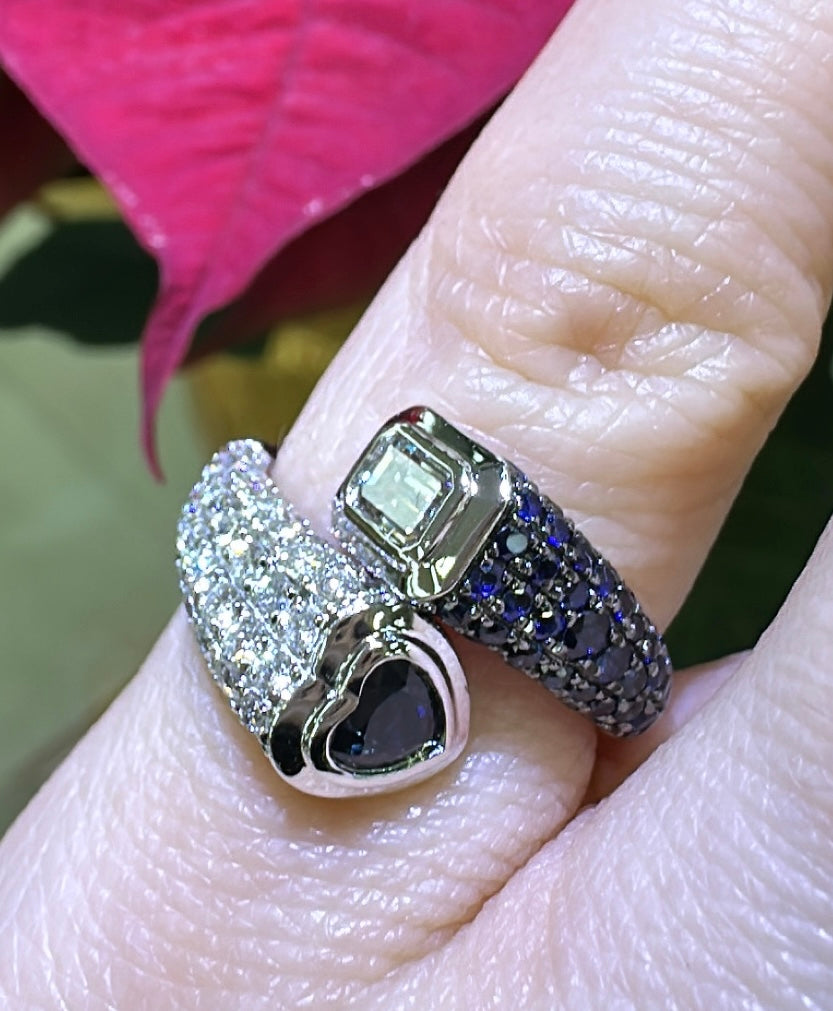 1.60Carat Blue Sapphire Wrap Pinky Emerald And Heart Moi Toi Pave Diamond Ring