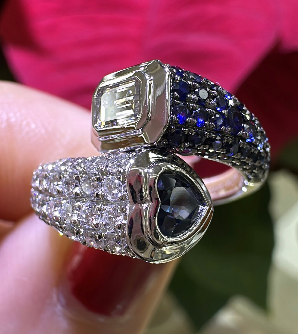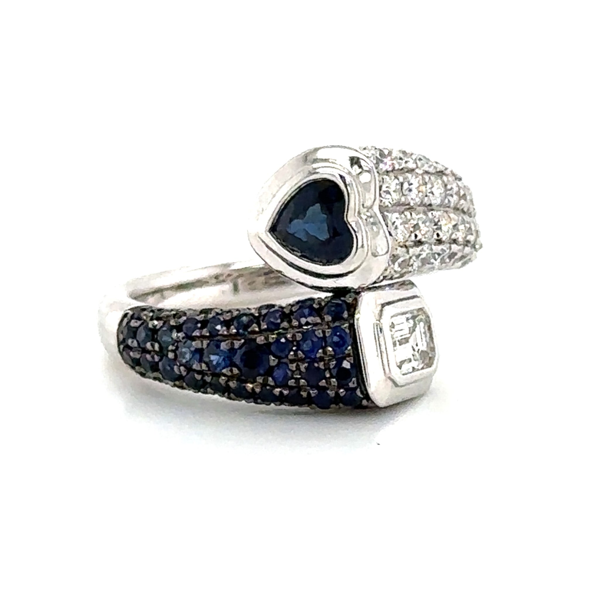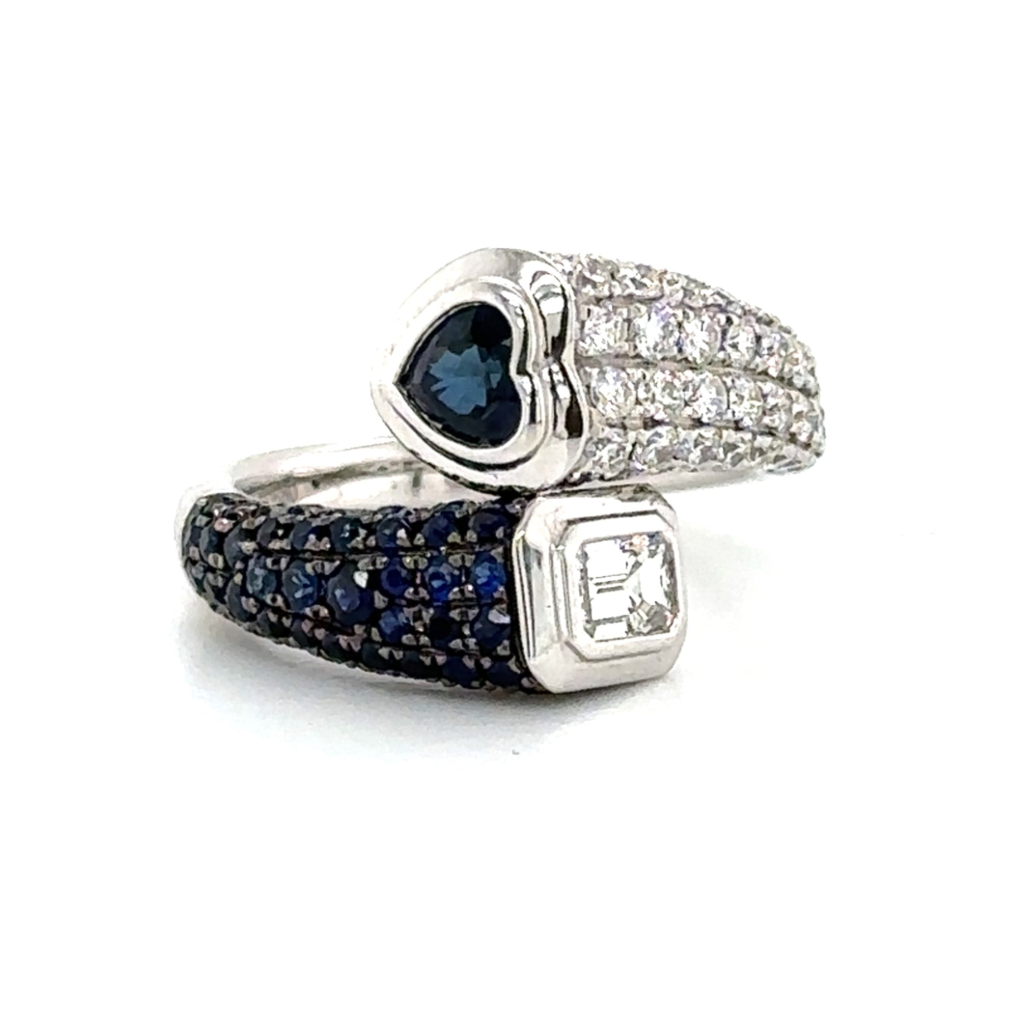 1.60Carat Blue Sapphire Wrap Pinky Emerald And Heart Moi Toi Pave Diamond Ring