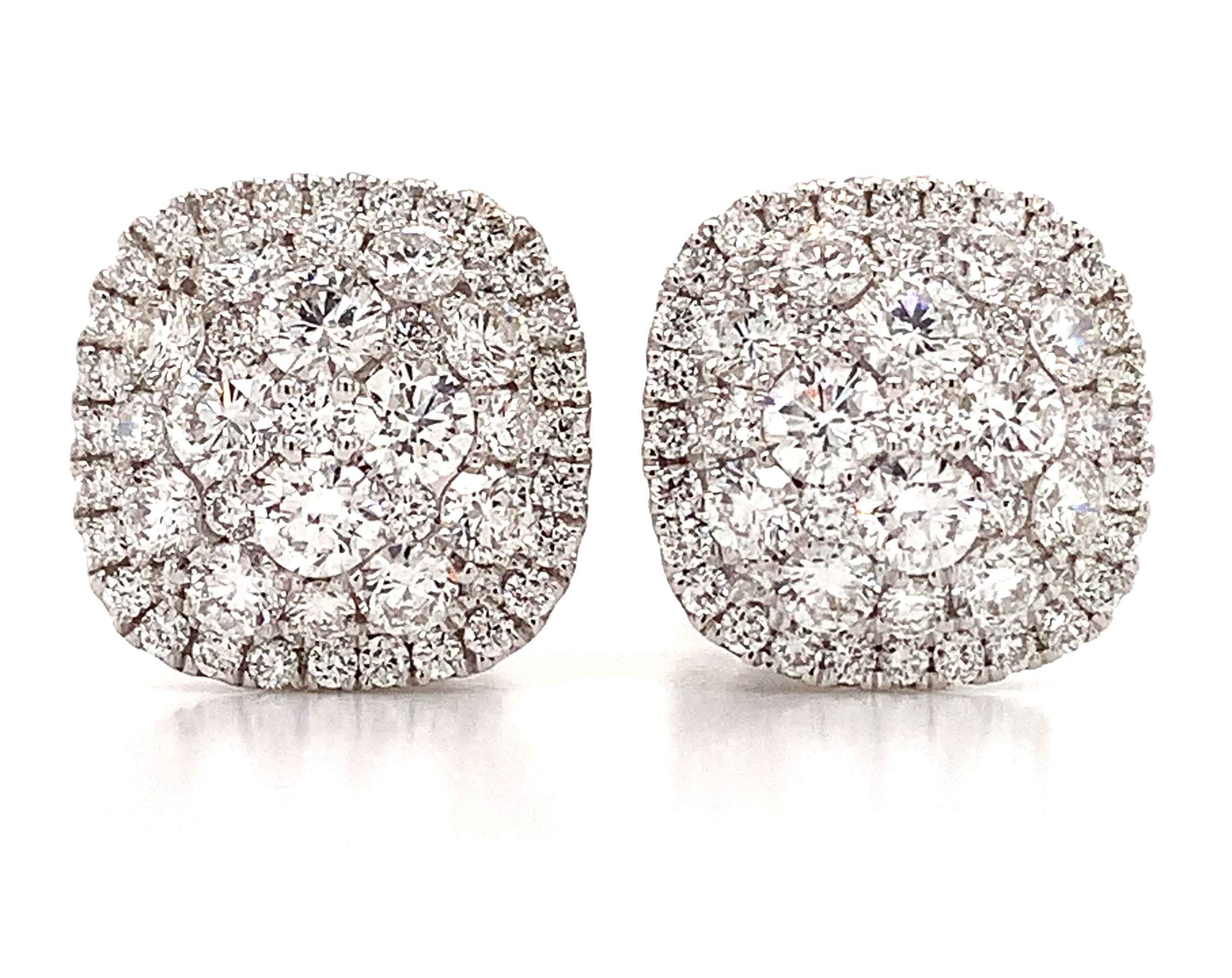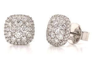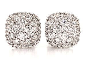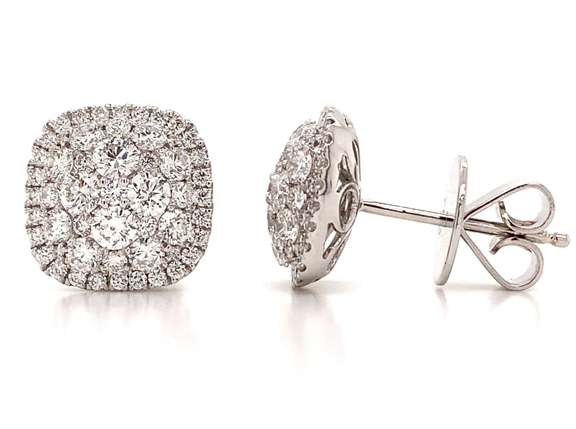 Cluster diamond stud earrings prove the age-old saying "Diamonds are a girl's best friend". 106 round brilliant cut diamonds totaling 1.73 carats of delicious pleasure. Crafted in 18K White Gold