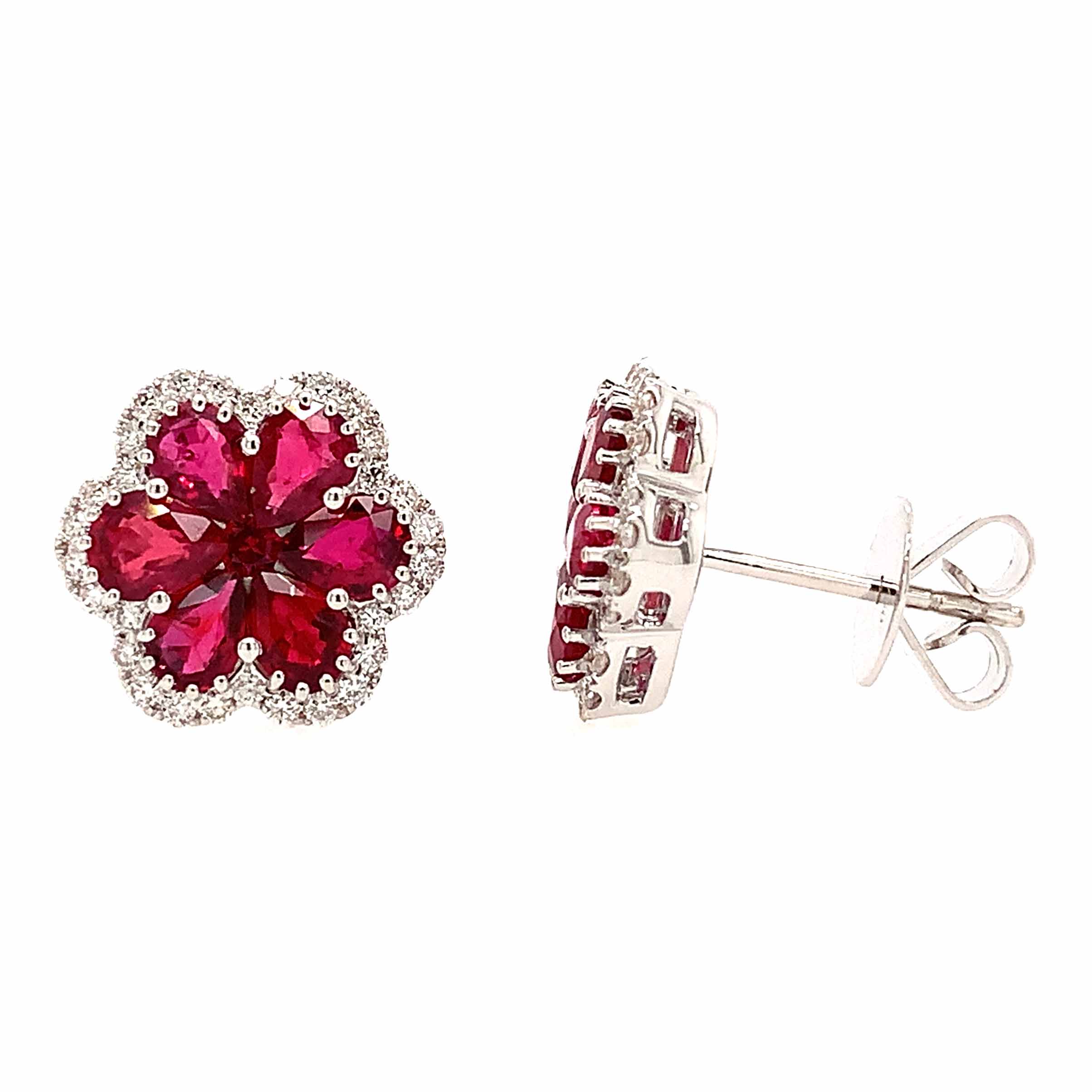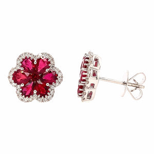 Indulge in luxury with 2.22ct tw ruby and diamond earrings! These stunning earrings feature vibrant ruby stones totaling 2.02ct tw, accented by sparkling diamonds for a total carat weight of 0.20ct tw. Elevate any outfit and add a touch of elegance with these magnificent earrings.