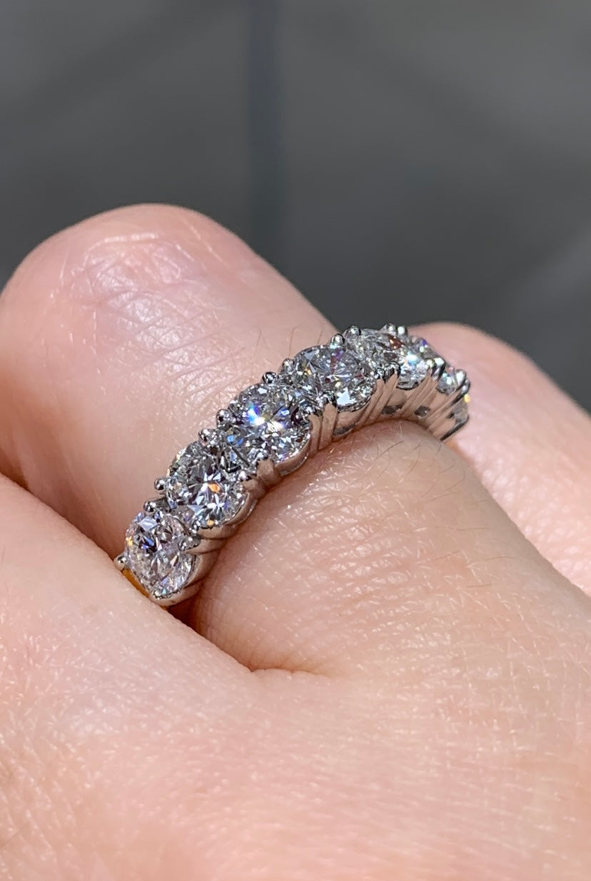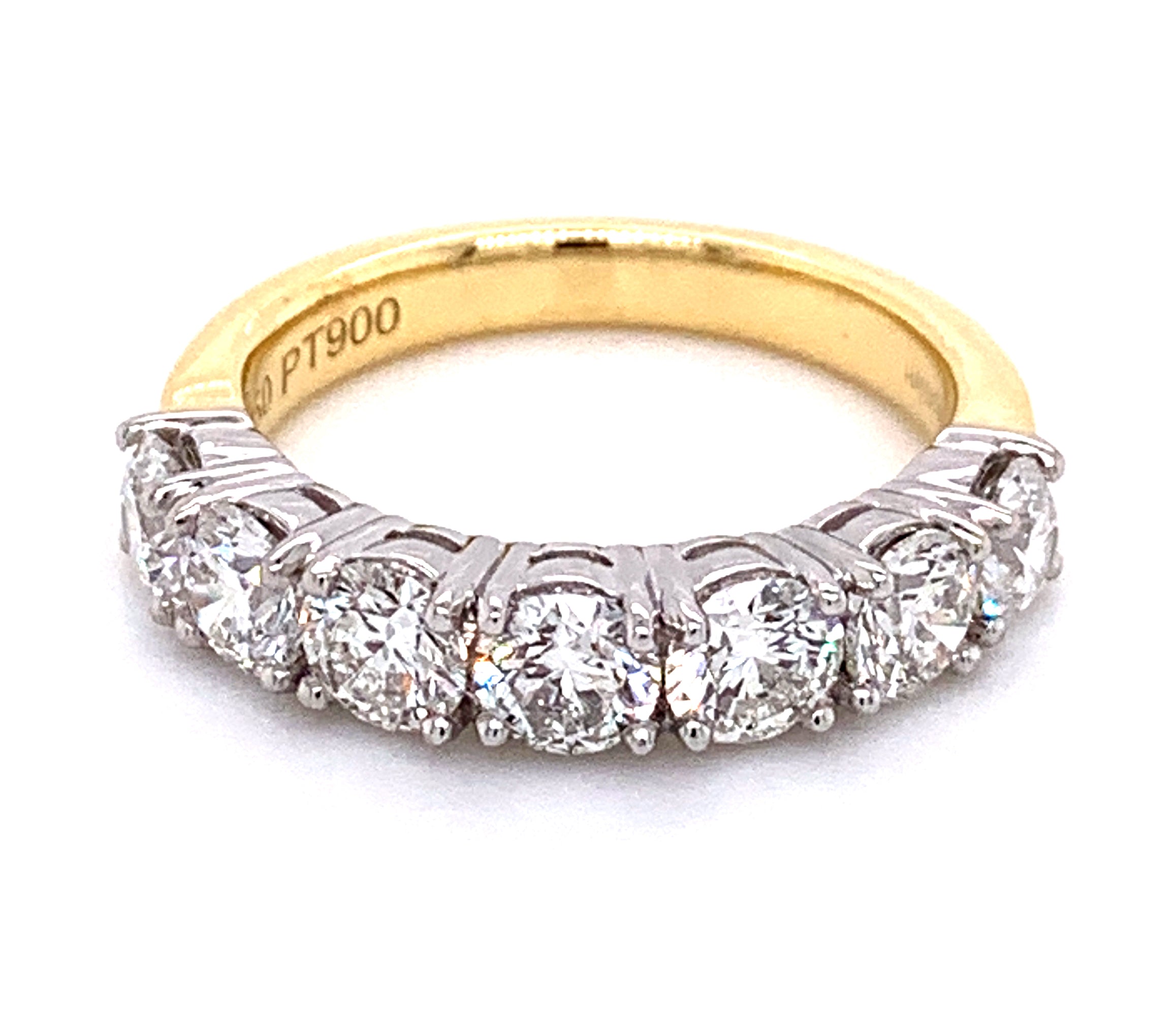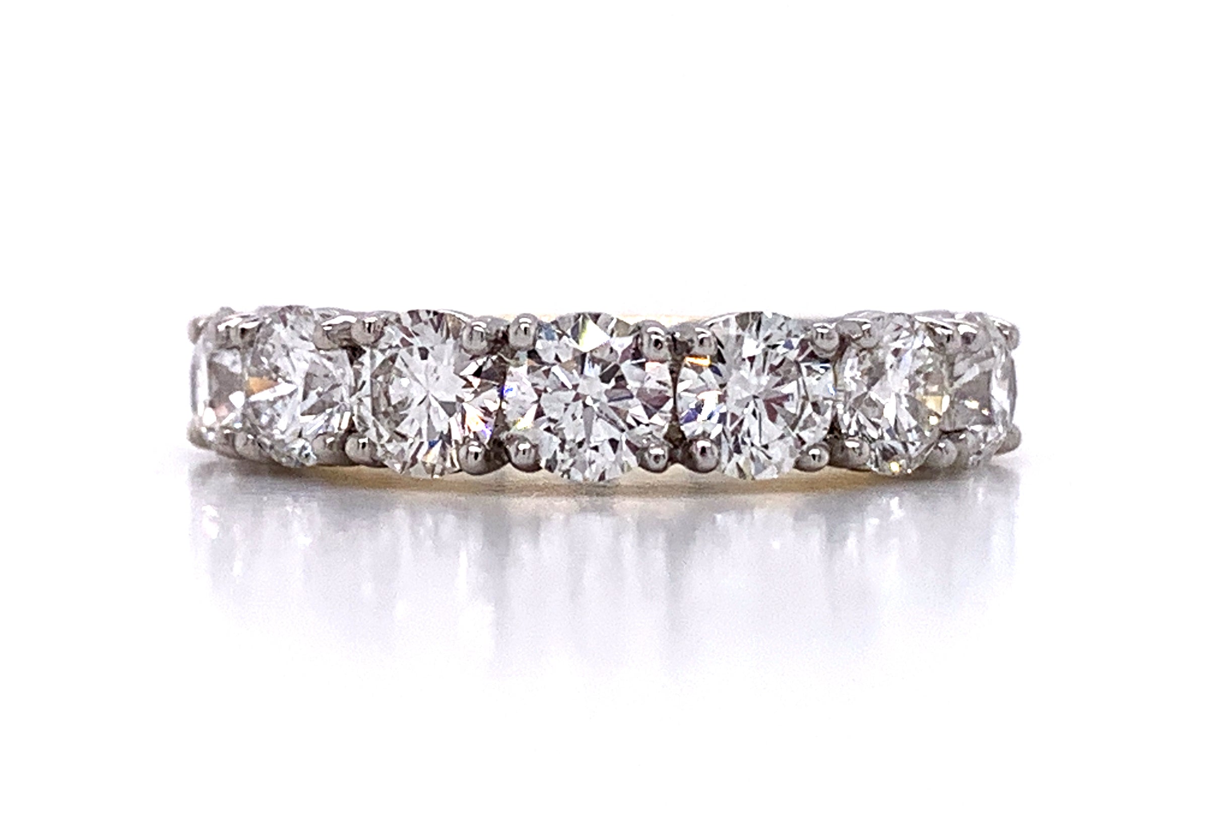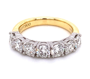 Diamond eternity, anniversary ring crafted in luxurious platinum & yellow gold. We cherry-pick diamonds from our stock to match perfectly for your special day. Anniversary is meant to be remembered forever and with this ring, you certainly will.