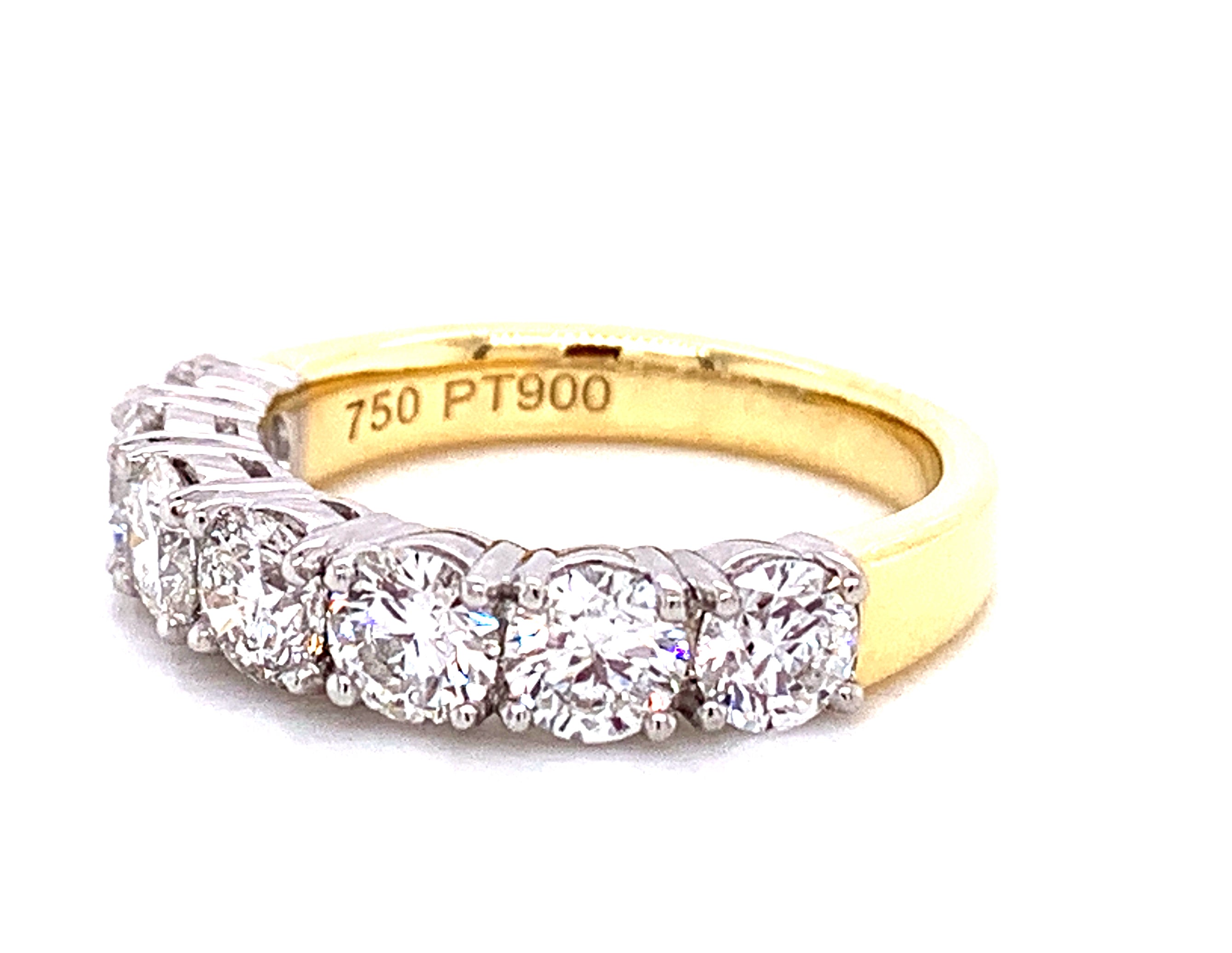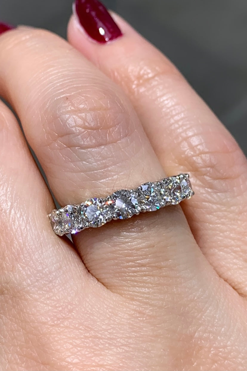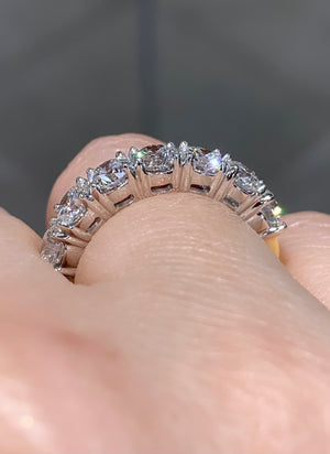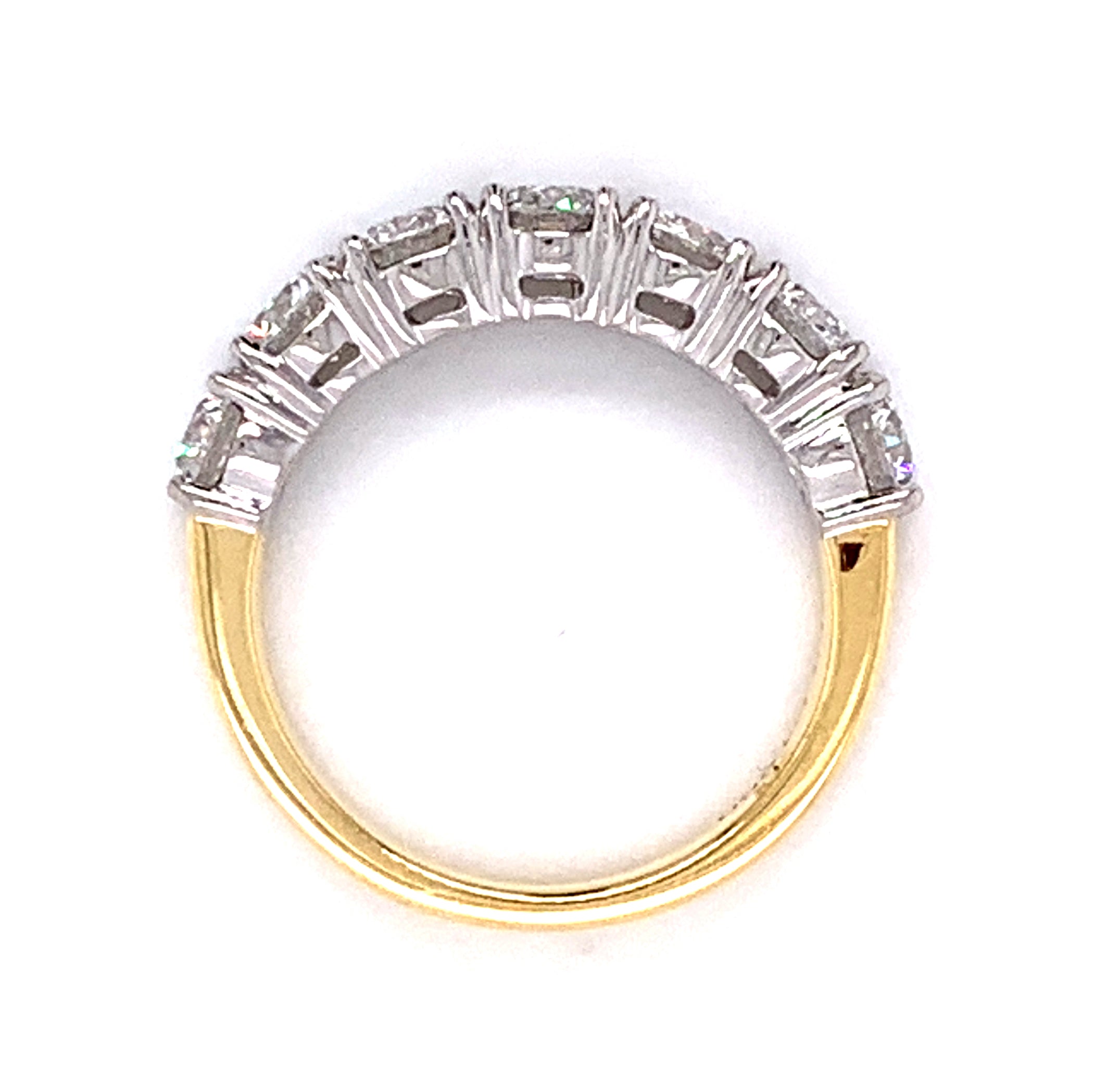 Diamond eternity, anniversary ring crafted in luxurious platinum & yellow gold. We cherry-pick diamonds from our stock to match perfectly for your special day. Anniversary is meant to be remembered forever and with this ring, you certainly will.