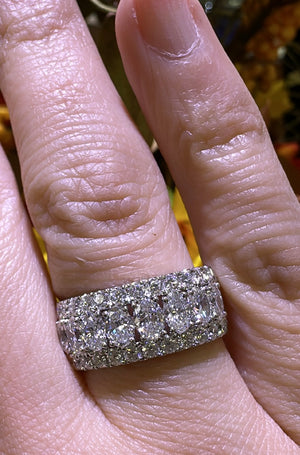 Make a statement with this stunning 1.96ct t.w. eight oval-cut diamonds with halo on the edges ring. Its dazzling design will elevate any outfit and turn heads wherever you go. Perfect for special occasions or adding a touch of elegance to your everyday look. A must-have for any jewelry collection!