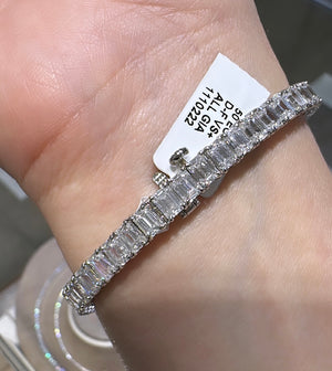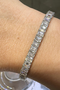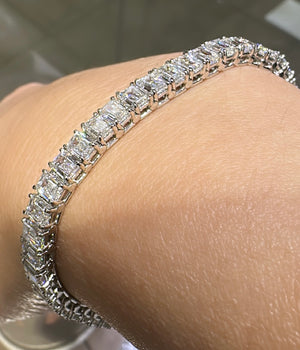 Emerald - cut diamond riviera line tennis bracelet is absolutely amazingly crafted in luxurious Platinum and made with 50 emerald cut diamonds of each GIA certified stone 16.77carats! True fit for a queen. Everyone will gasp with thrill when seeing it on her wrist!
