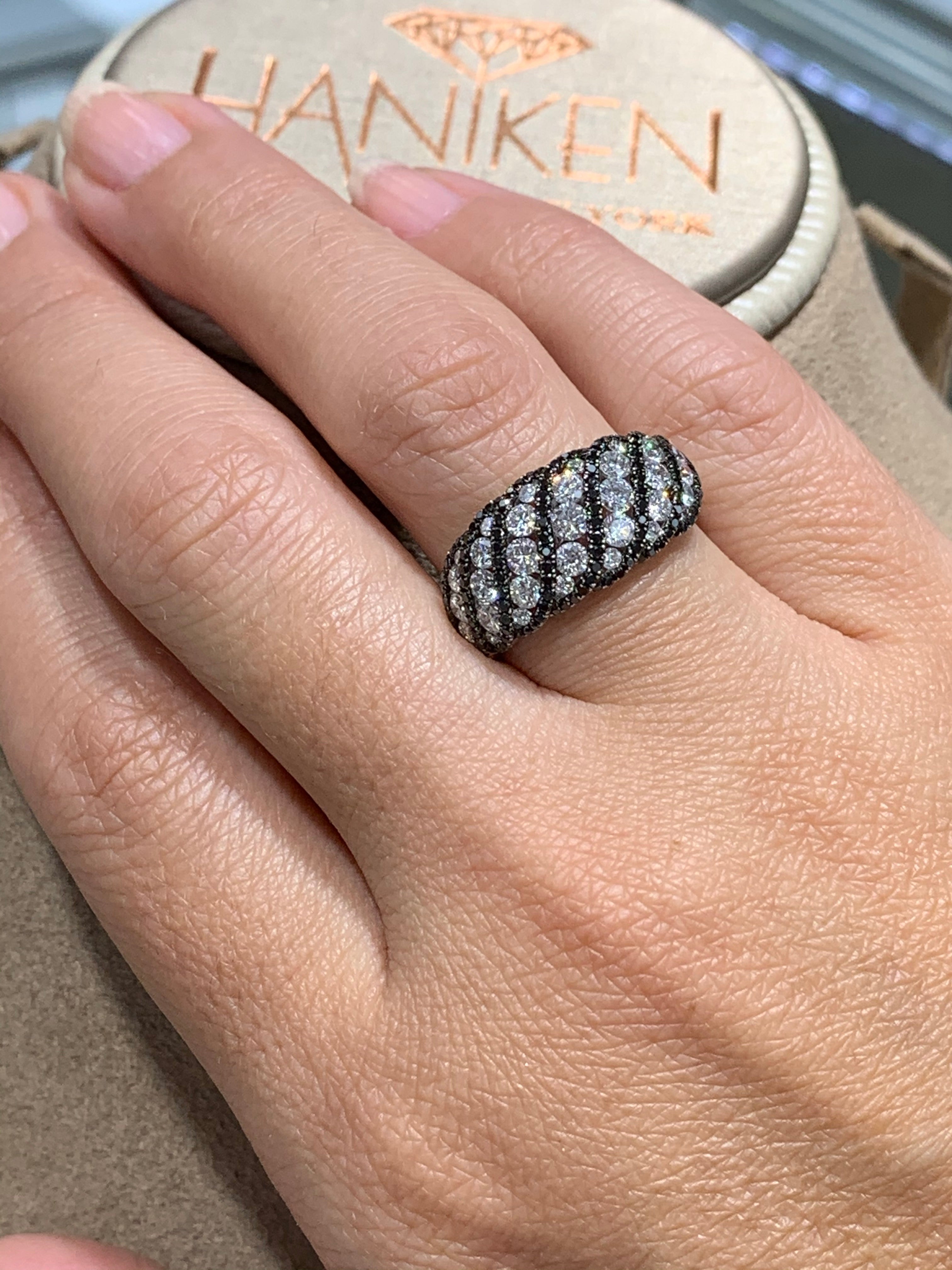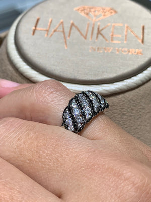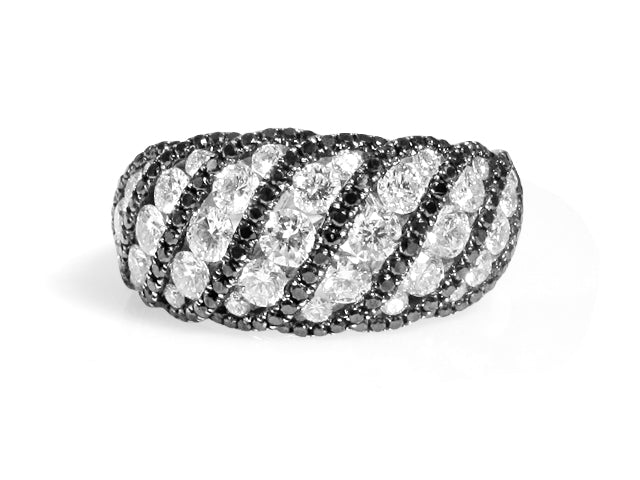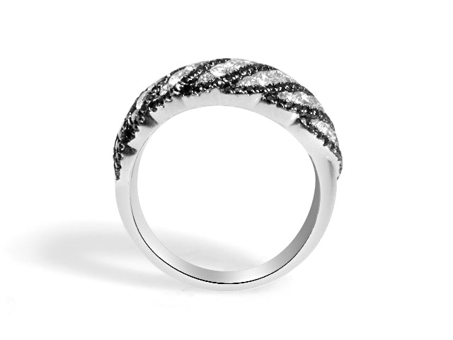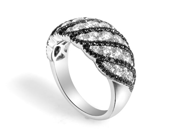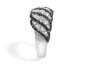 This exquisite black and diamond 1.83ct tw fancy ring showcases a stunning combination of black and white diamonds, creating a unique and eye-catching design. The sleek black diamonds add a bold touch, while the sparkling white diamonds add a touch of elegance. A truly unique and luxurious piece of jewelry for any occasion.