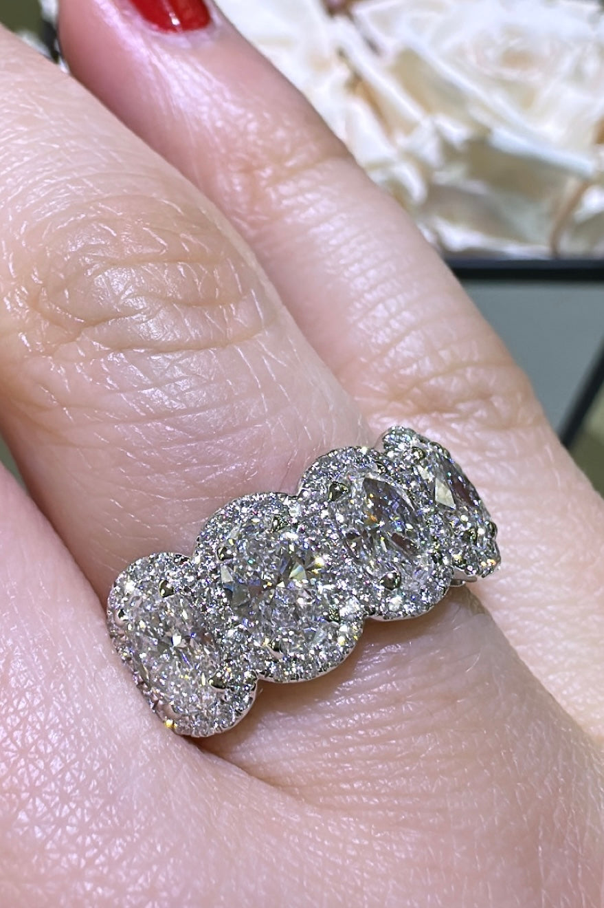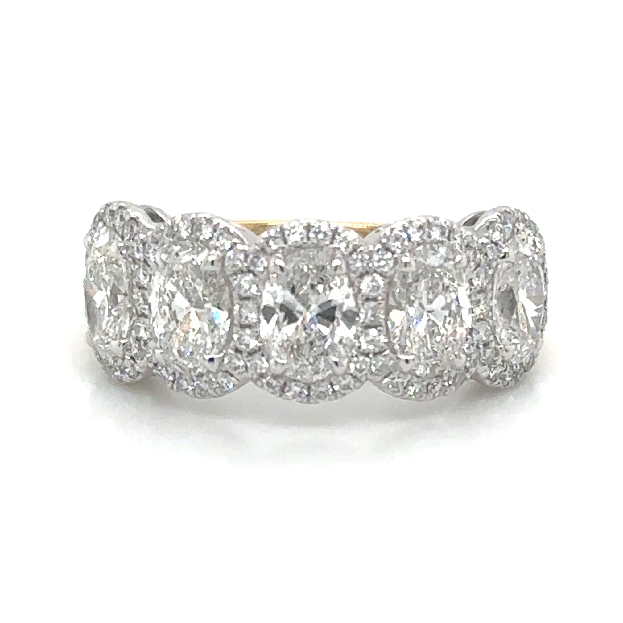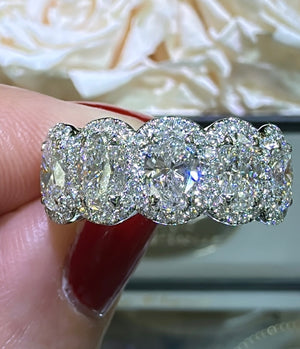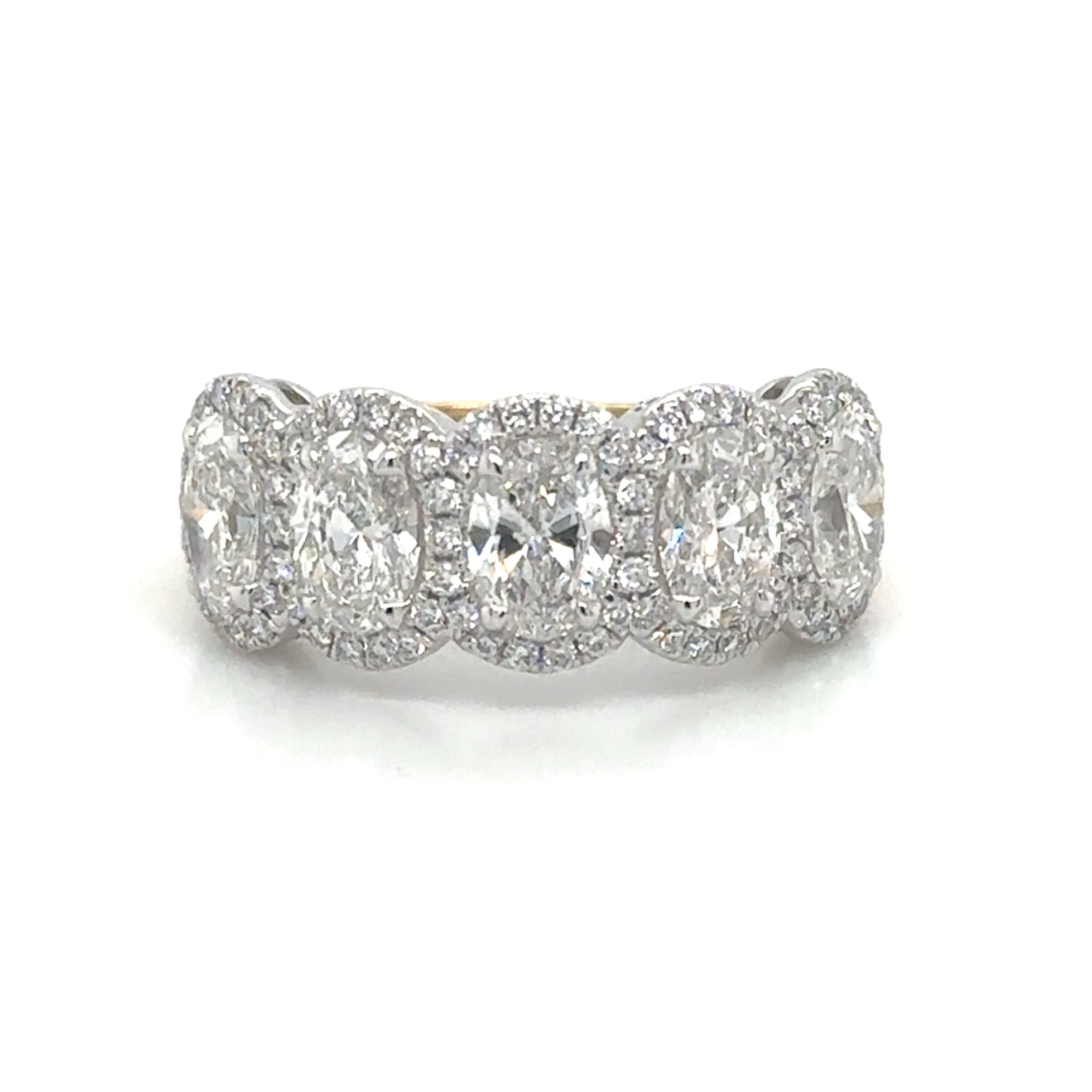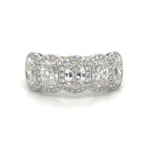 Treat your loved one to an everlasting symbol of your love with this stunning 2.13carat IGI certified lab diamond five stone oval cut anniversary eternity ring. Featuring a sparkling array of oval cut diamonds, this ring is a timeless and certified expression of your devotion.