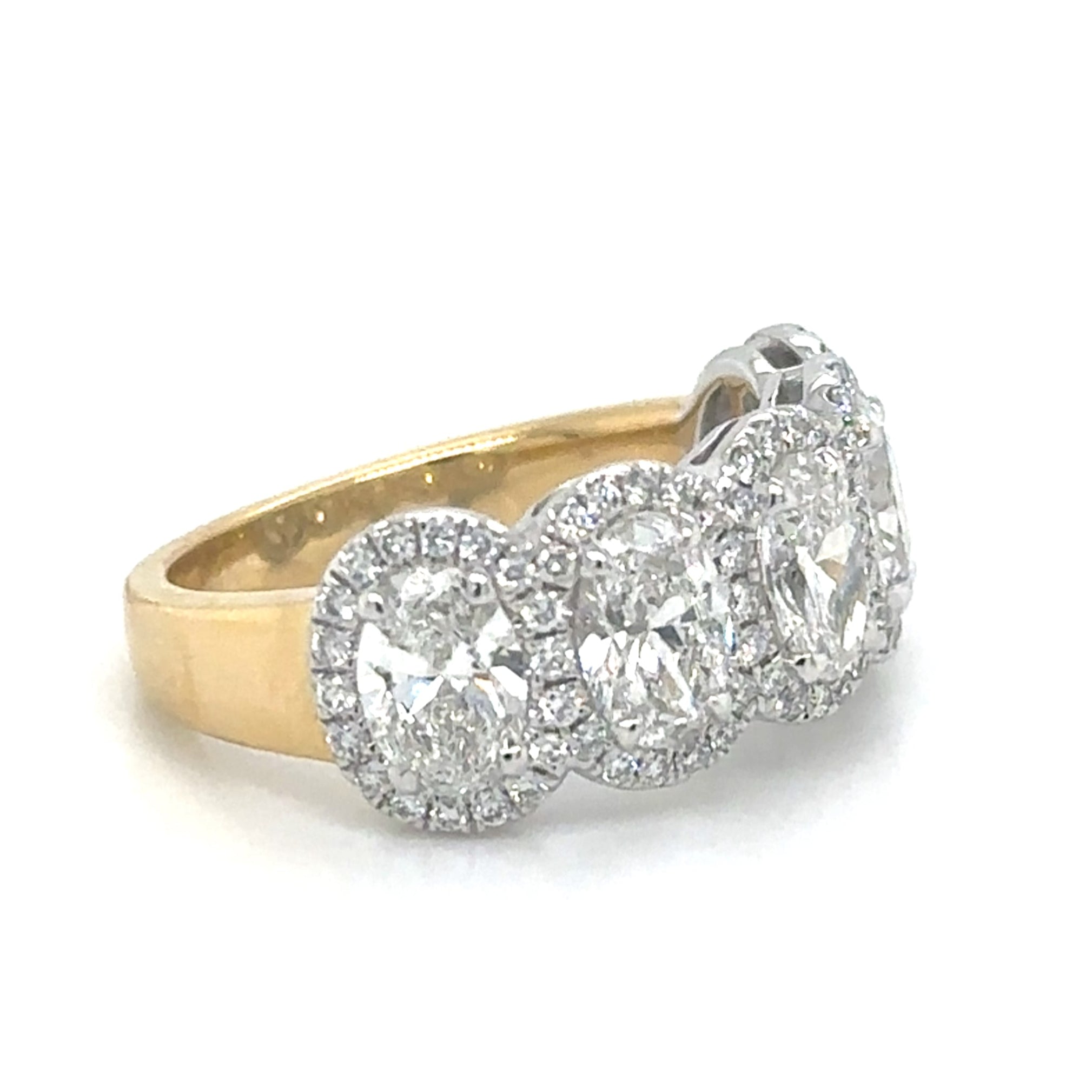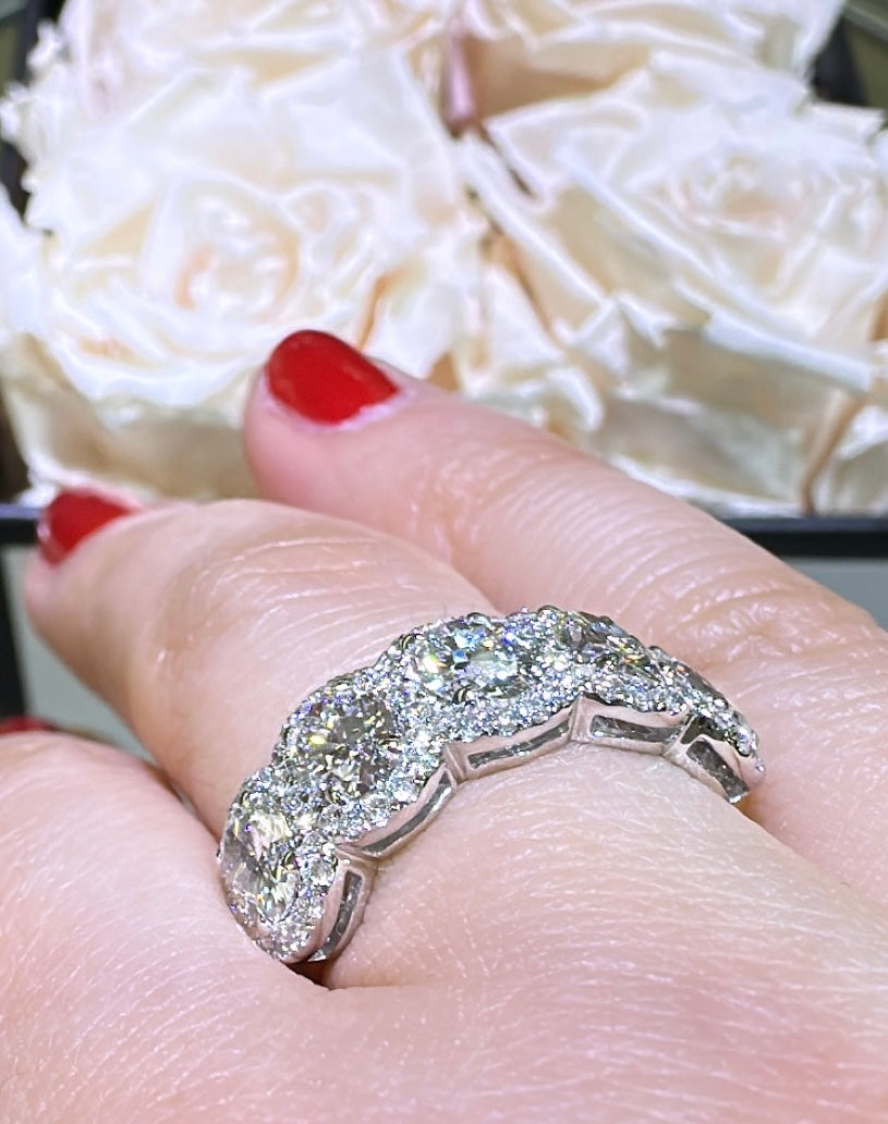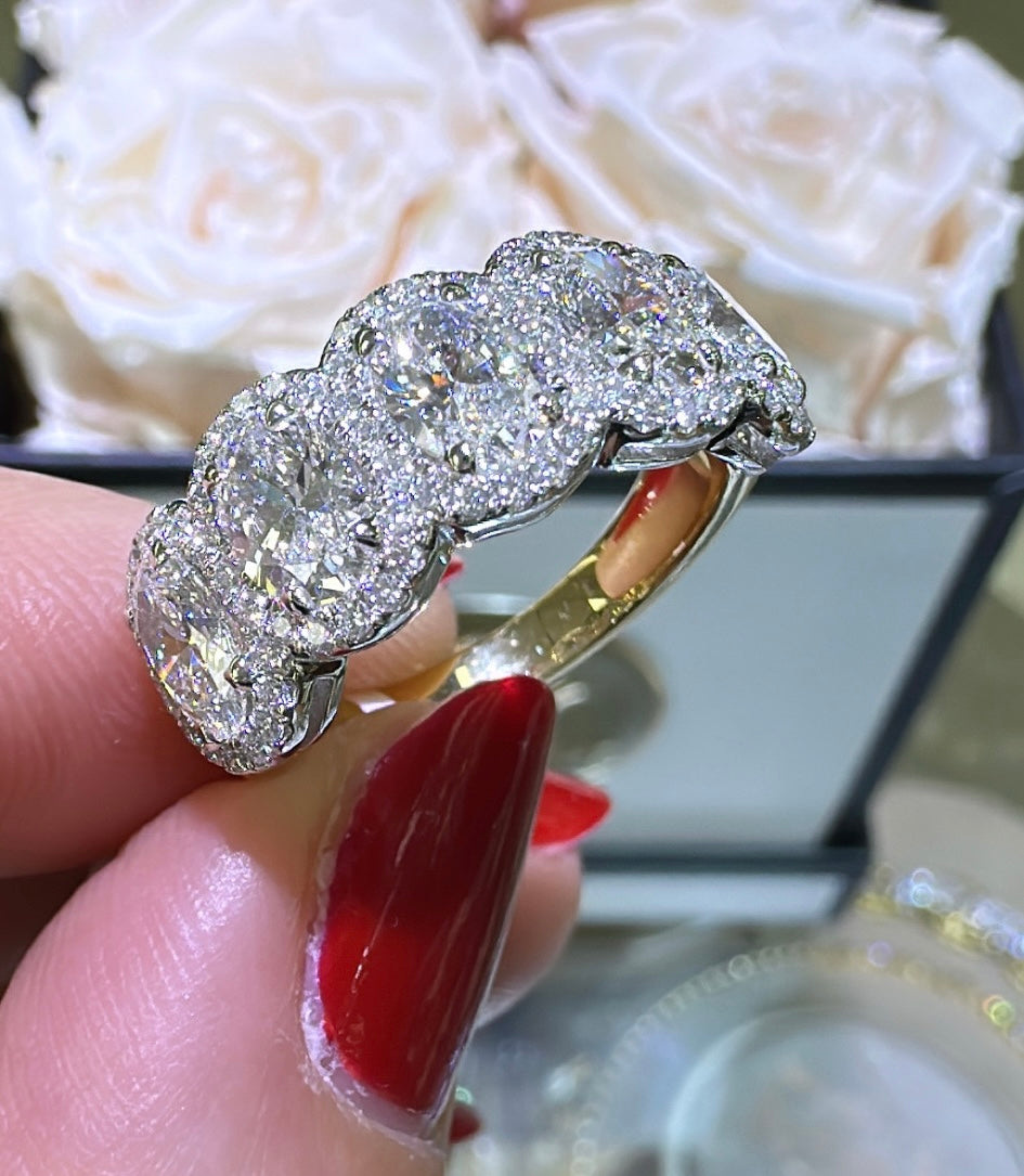 Treat your loved one to an everlasting symbol of your love with this stunning 2.13carat IGI certified lab diamond five stone oval cut anniversary eternity ring. Featuring a sparkling array of oval cut diamonds, this ring is a timeless and certified expression of your devotion.