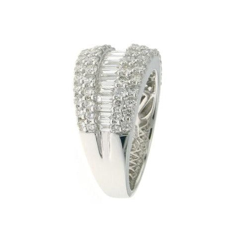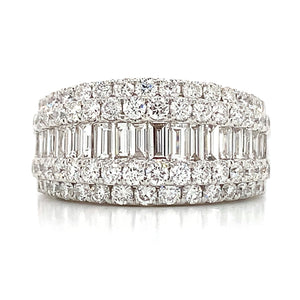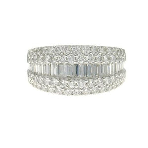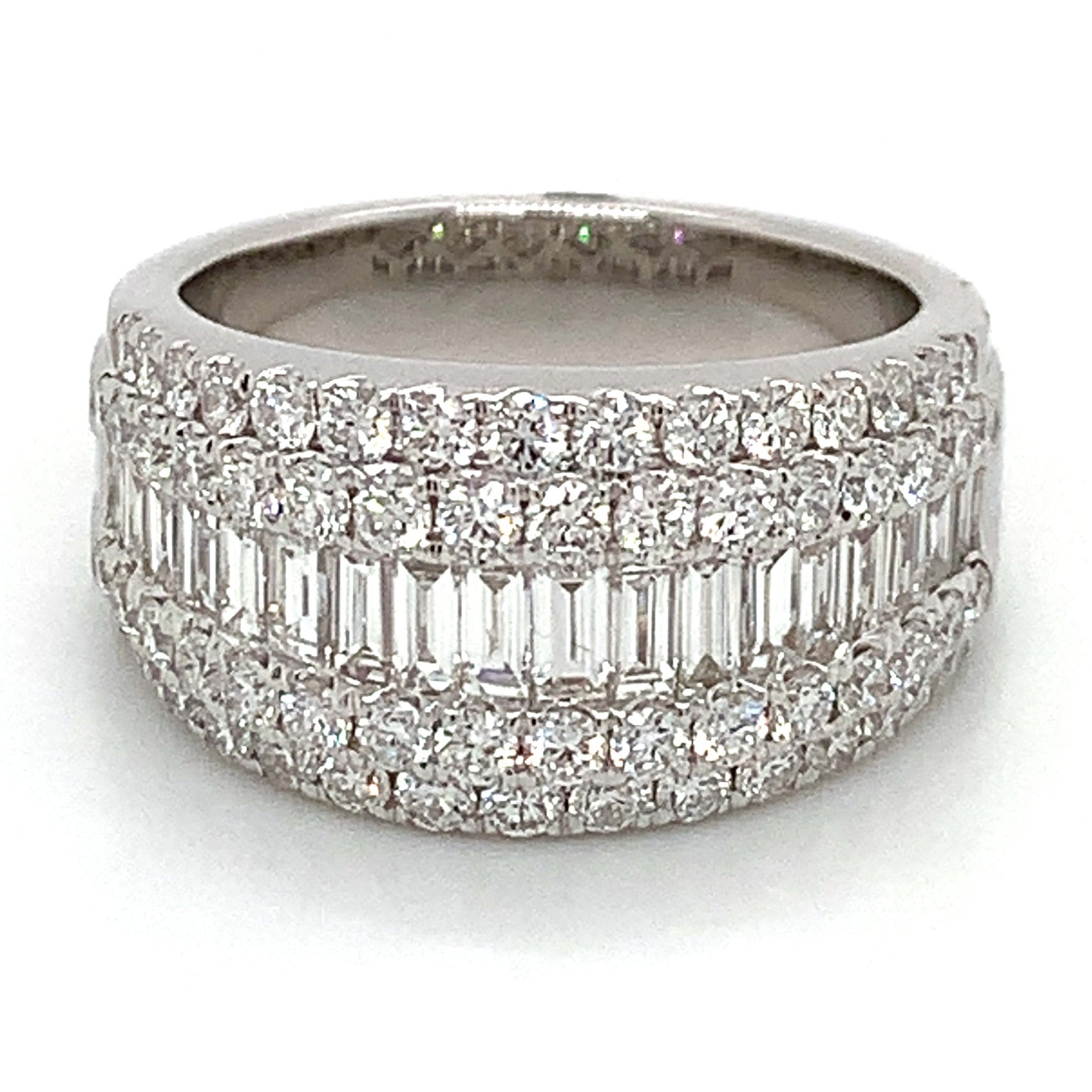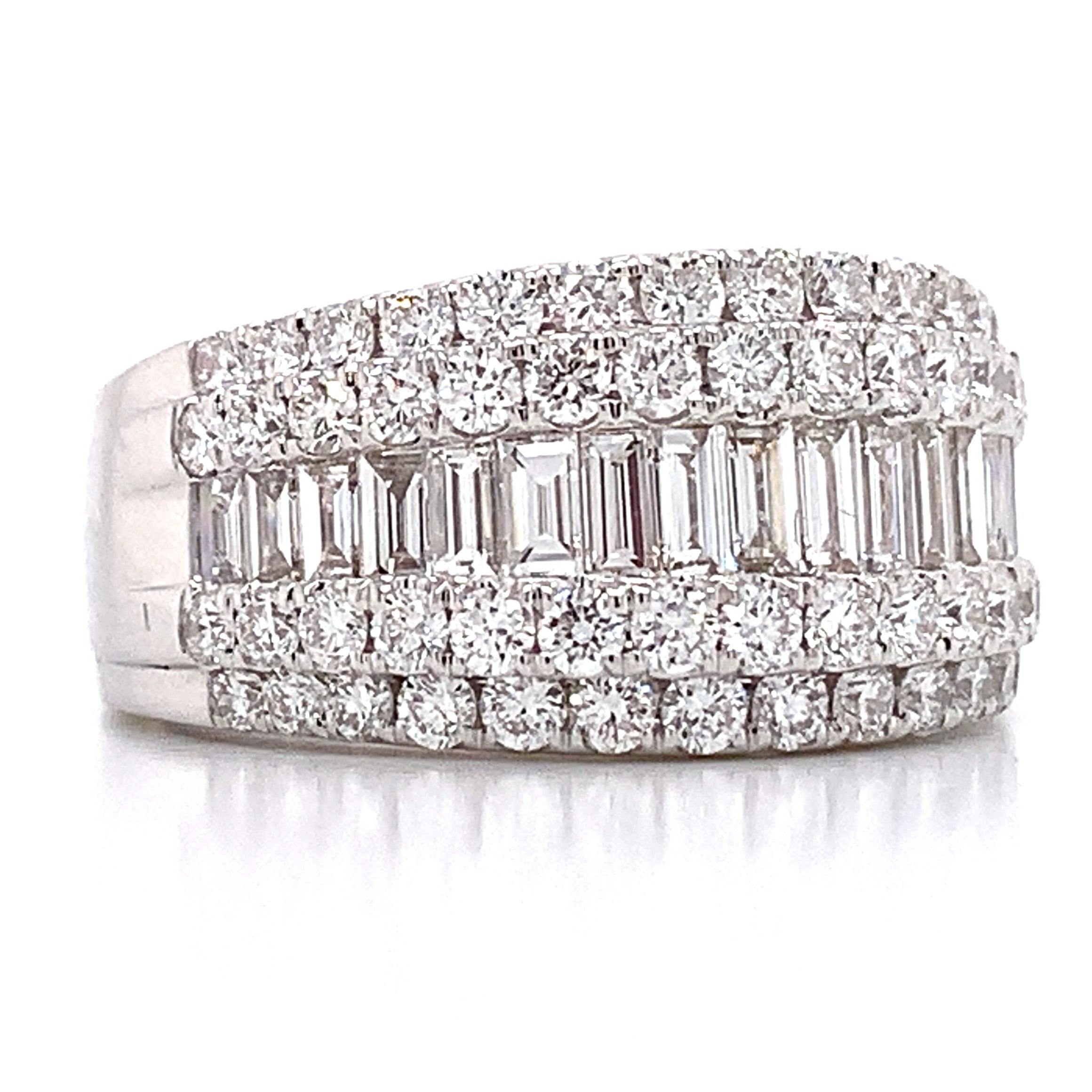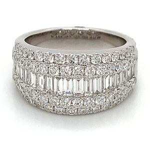 Looking for an anniversary band that has a fashionista in mind, but that manages to be classy at the same time? Then we think that we have the perfect diamond ring for you. This 2.17ct t.w. baguette and round diamond ring combines round and baguette shaped stones. It's classic style adds lots of sparkle to any girls finger. And what is great is that you can wear this as an anniversary ring, or simply as a fabulous accessory.