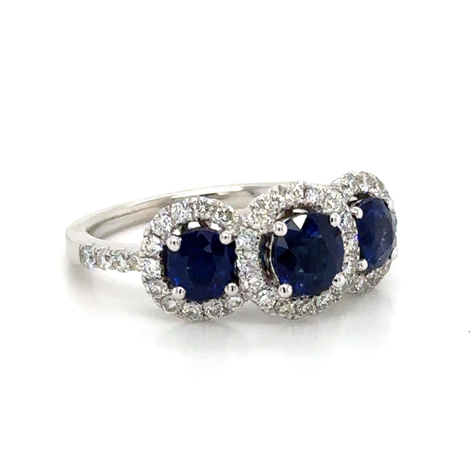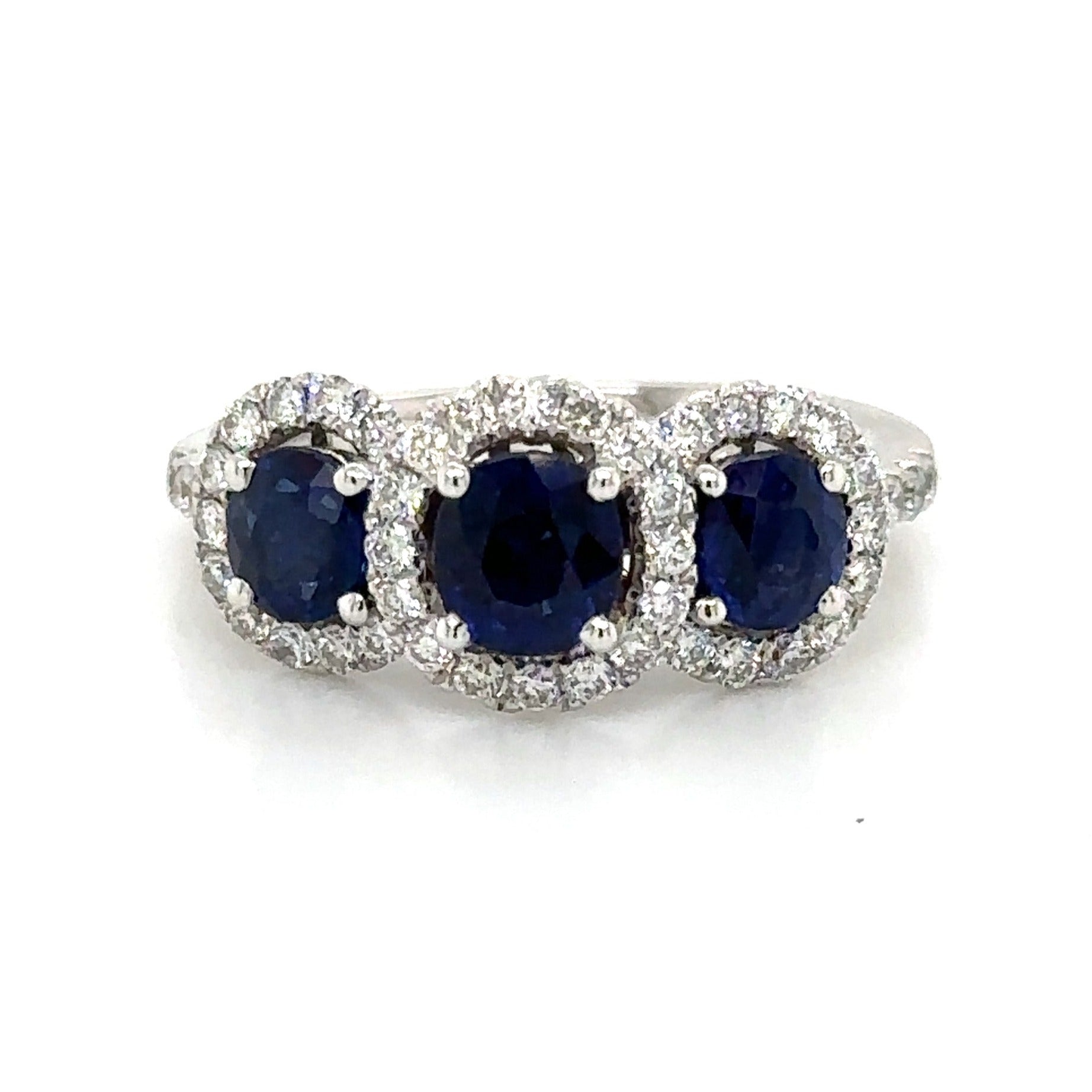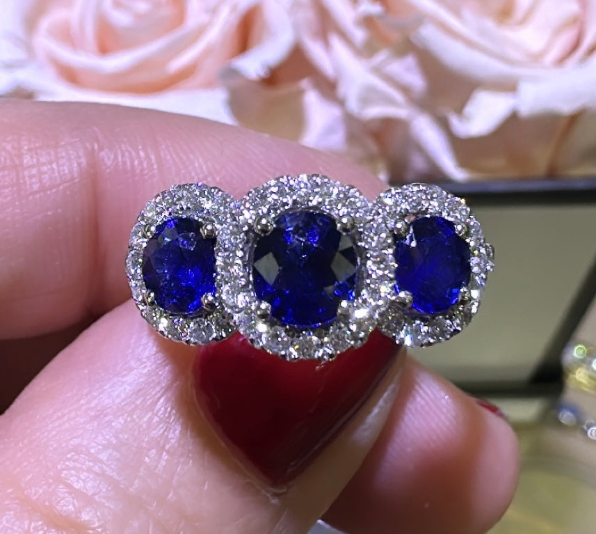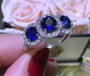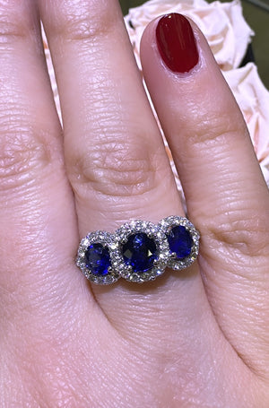 2.32carat Three Stone Royal Blue Sapphire & Diamond Ring