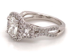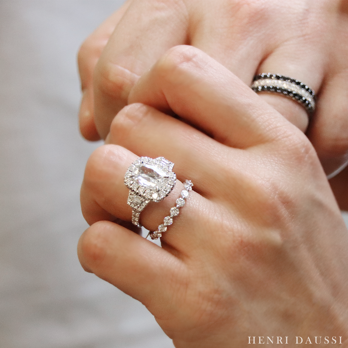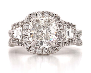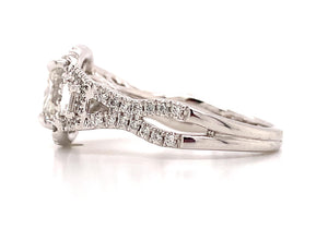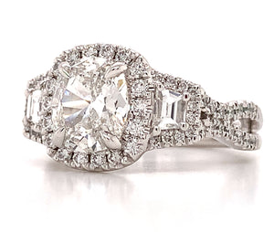 Love a classic with a modern twist? Our Henri Daussi Cushion Cut GIA certified Diamond Ring is the perfect blend of timeless beauty and modern luxury. With its 2.36ct tw cushion cut diamond, halo setting and interlaced shank design, this engagement or anniversary ring is sure to take her breath away!