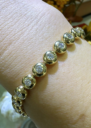 Experience luxury and elegance with our 2.38carat diamond beaded gold tennis bracelet. Adorned with sparkling diamonds, this bracelet will elevate any outfit and add a touch of glamour to your style. Perfect for special occasions or everyday wear, it's a must-have piece for any jewelry collection.