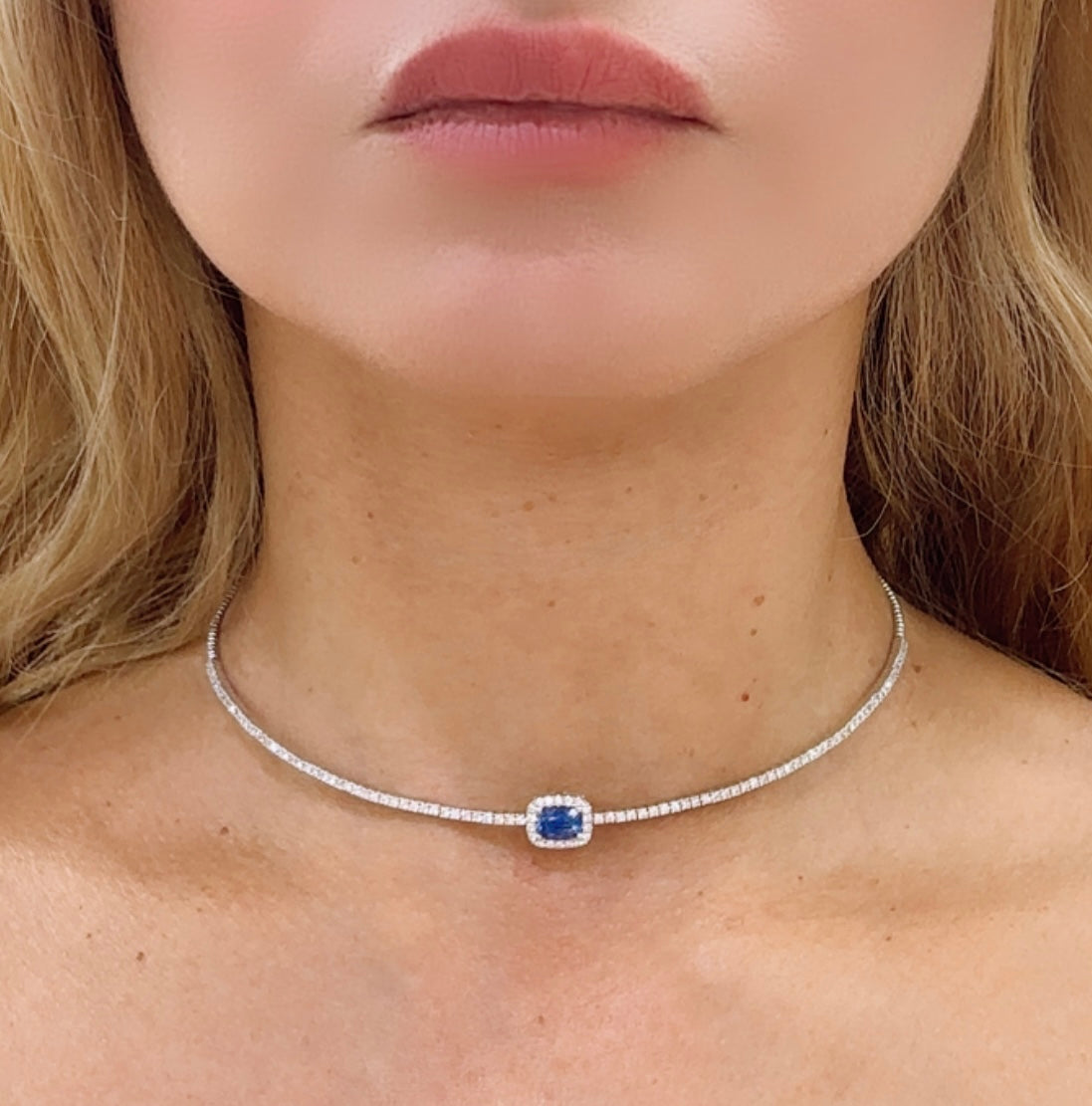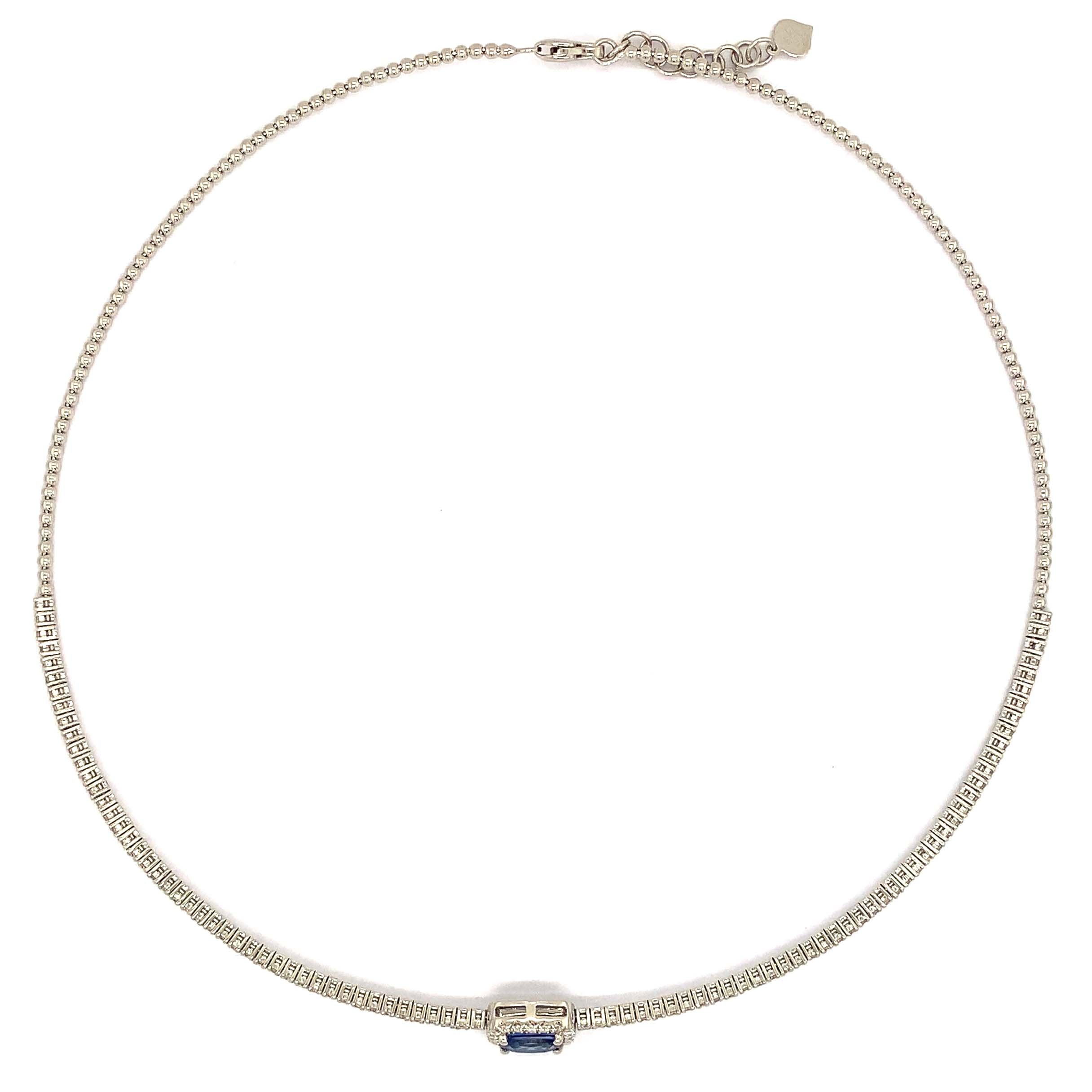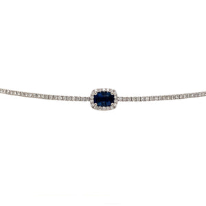 Indulge in luxury with our stunning 2.50carat choker featuring an eye-catching cushion -cut blue sapphire center. This exquisite tennis necklace will add a touch of elegance and sophistication to any outfit. Elevate your look and make a statement with this timeless piece.