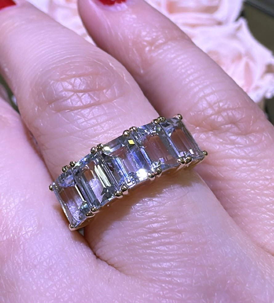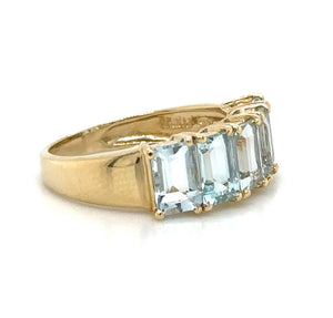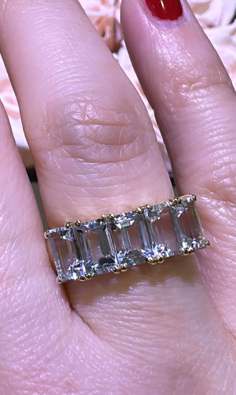 Experience elegance and sophistication with our 2.50ct tw emerald-cut aquamarine gemstone birthstone half eternity ring. The mesmerizing aquamarine gemstones bring a refreshing and calming energy, perfect for the modern woman. This ring is a timeless piece that will elevate any outfit and make you shine like a star.