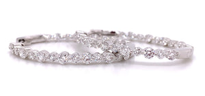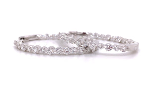 These oval diamond hoop earrings have been given a stylish touch with elegant round cut diamonds placed inside and out. 18K white gold hoop earrings are set with 2.50carats in round diamonds . Every woman can always use a pair of classic diamond hoop earrings to add to their wardrobe. Accessorize with these hoop earrings for fun and casual looks, or formal occasions where you want focus to be on your outfit.