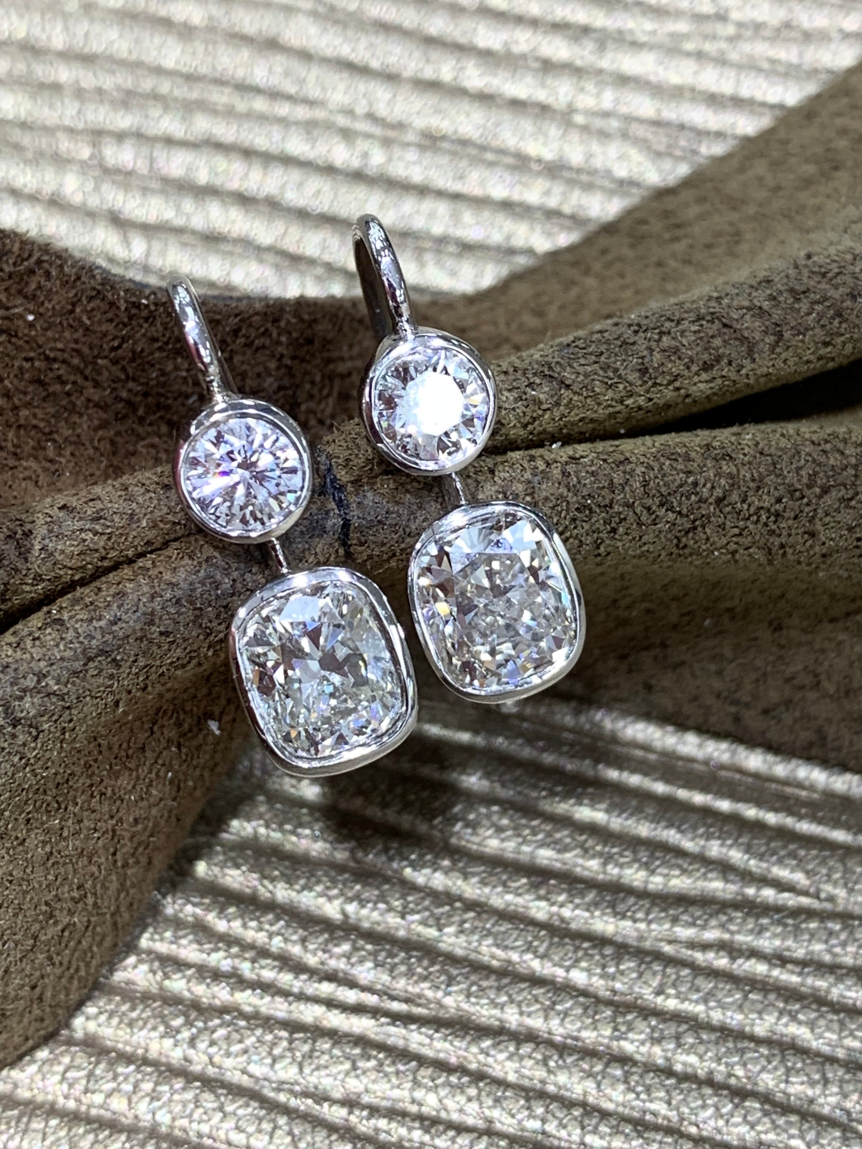 2.63ct t.w. Diamond Drop Earrings With Rounds & Cushions - HANIKEN JEWELERS NEW-YORK