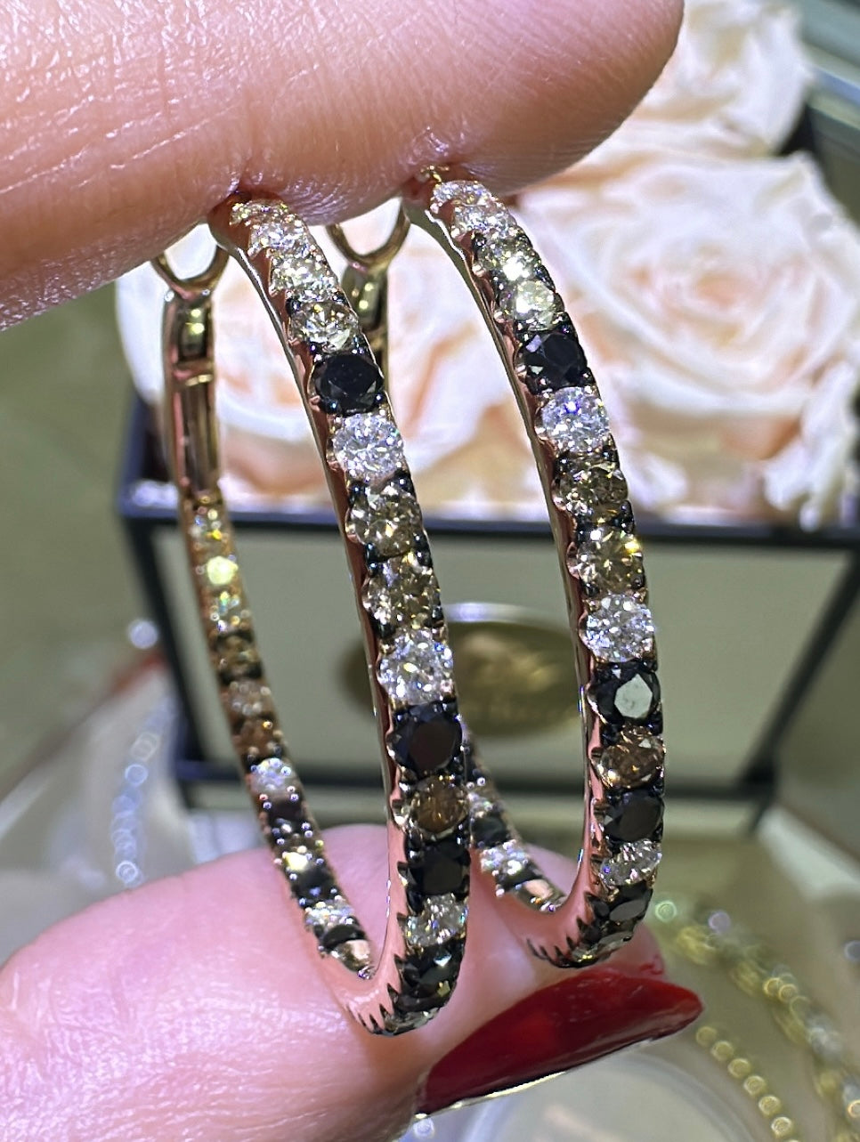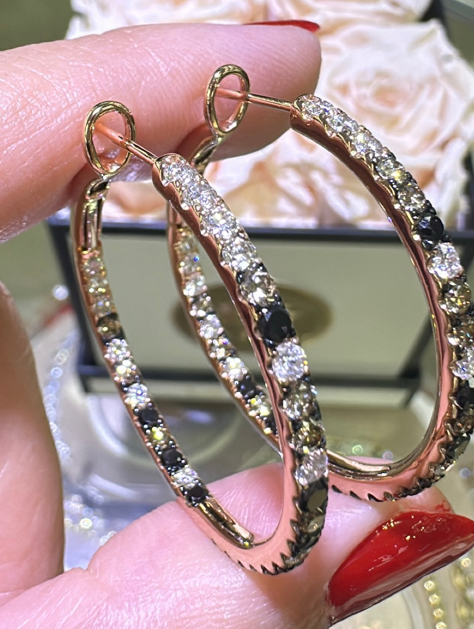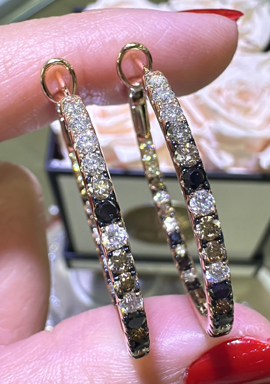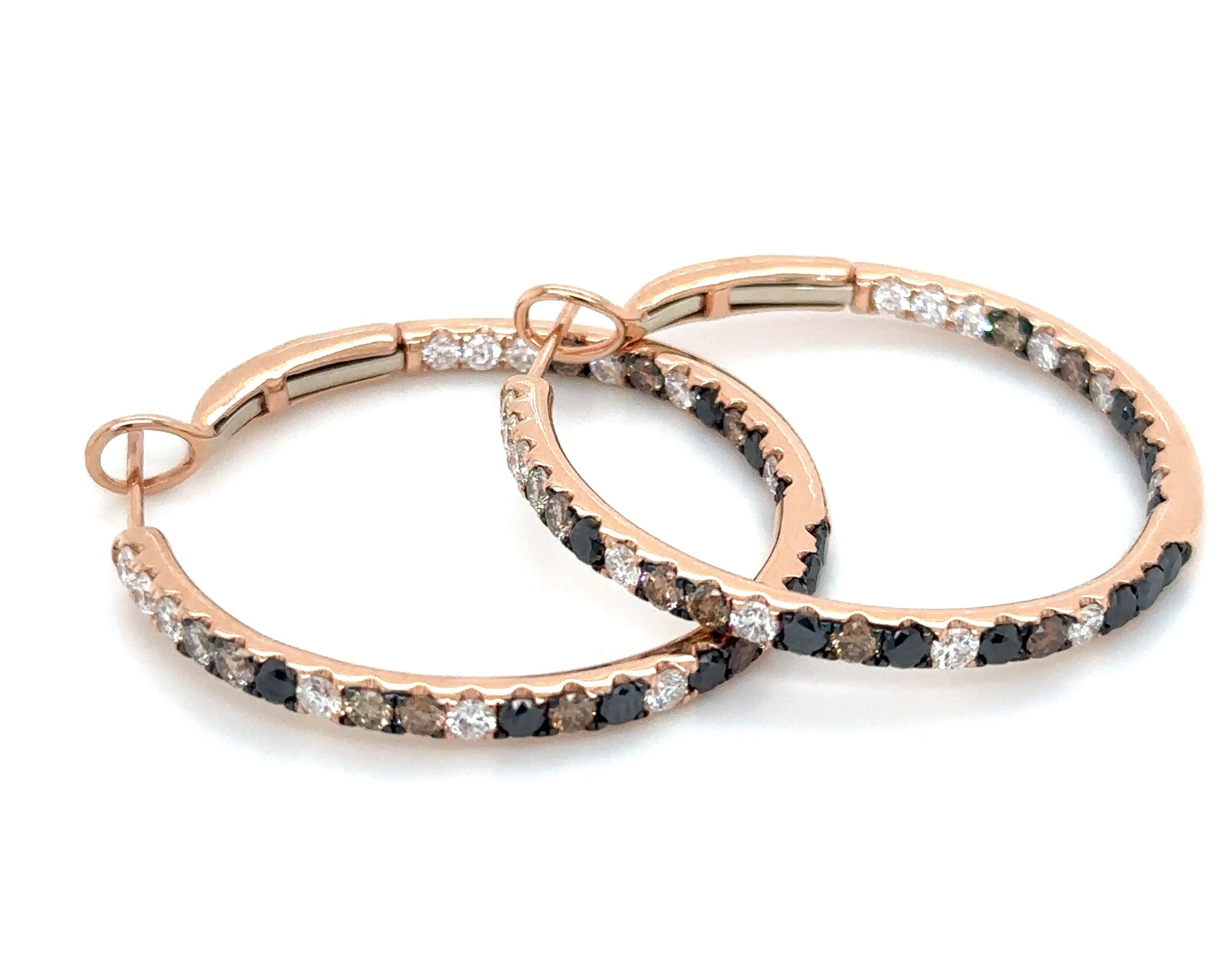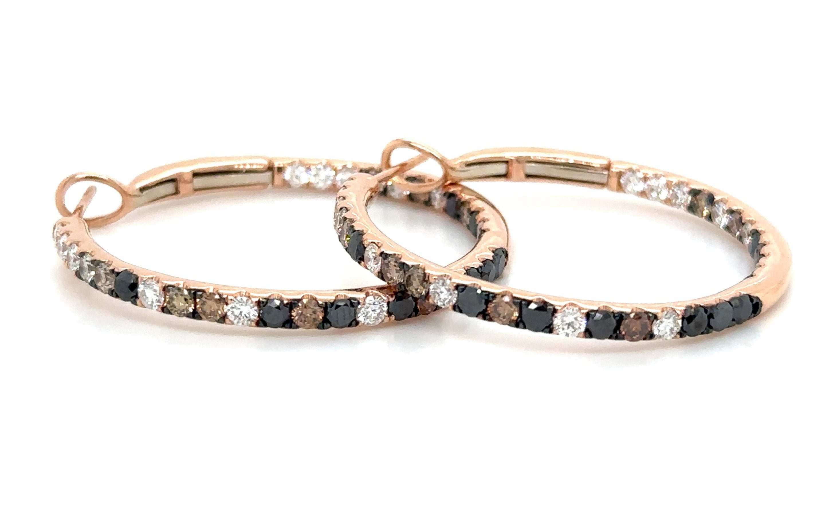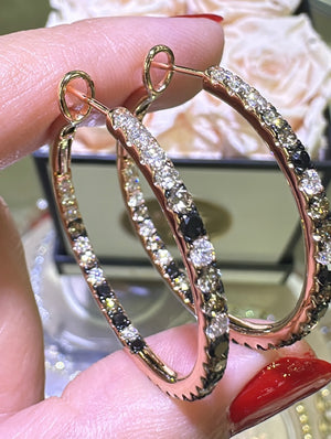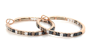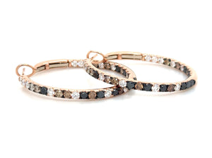 2.72ct tw Champaign and Black & White Diamond Hoop Earrings