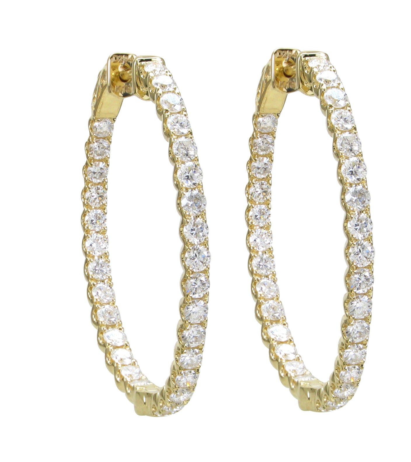 These stunning 2.73ct tw diamond oval hoop earrings create a sensational look for any woman. Showcasing an inside-out design that puts your jewellery on full display, every facet reflects light from any angle. Enjoy a feminine, classic sophistication with these beautiful diamond earrings!