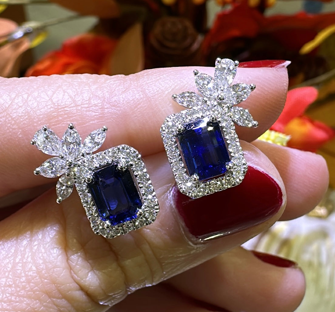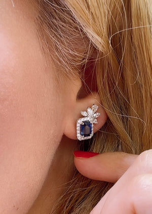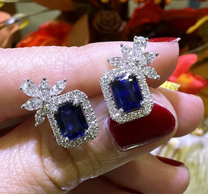 Experience the epitome of elegance with our 2.13ct tw royal blue emerald-cut sapphire diamond stud earrings. The vivid royal blue sapphire perfectly complement with the sparkling diamonds, making these earrings a luxurious addition to any outfit. Elevate your style and make a stunning statement with these breathtaking earrings.