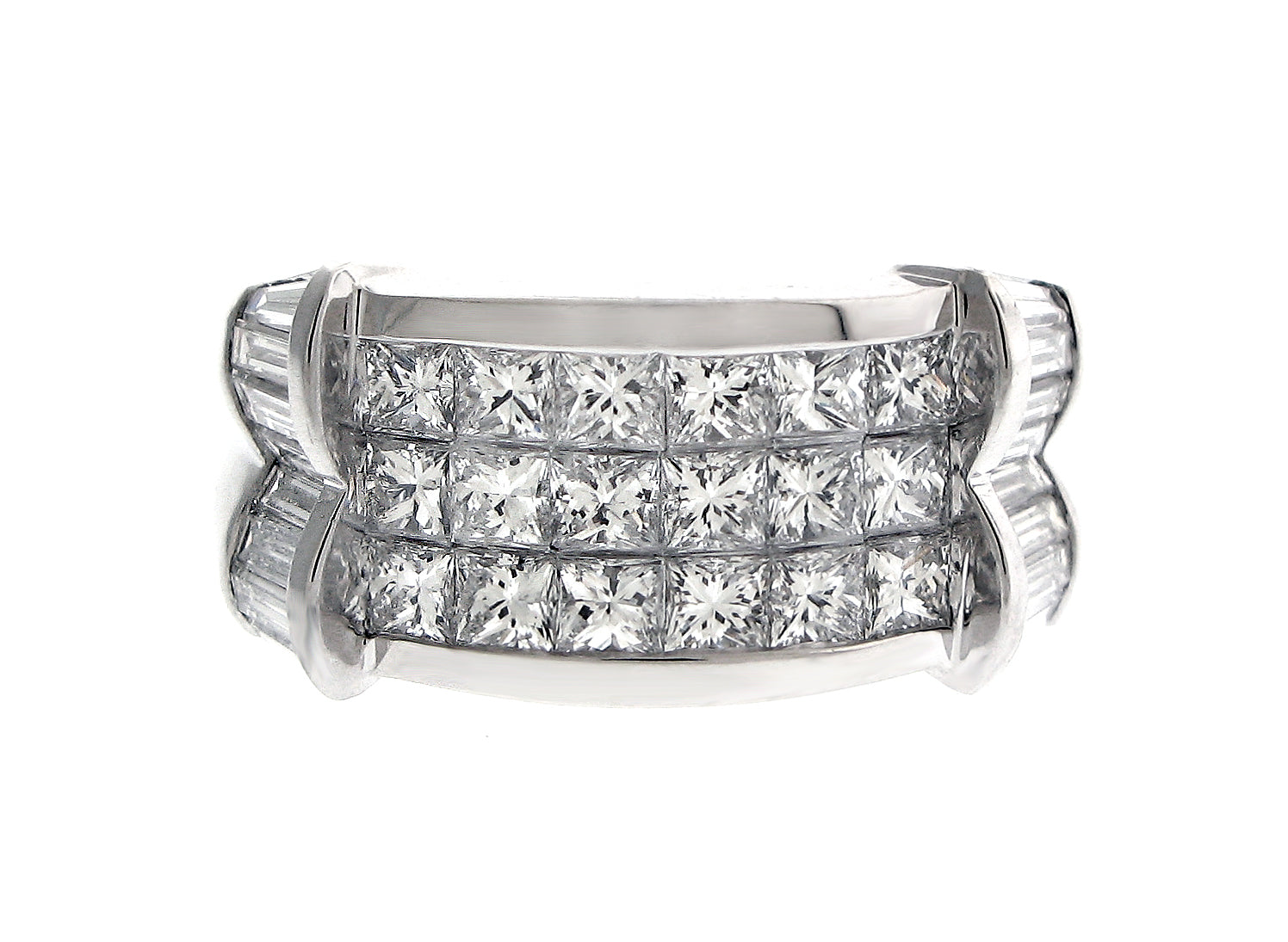 Looking for an anniversary band that has a fashinista in mind, but that manages to be classy at the same time? Then we think that we have the perfect diamond ring for you. This 3.00ct t.w. baguette and round diamond ring combines round and baguette shaped stones. It's classic style adds lots of sparkle to any girls finger. And what is great is that you can wear this as an anniversary ring, or simply as a fabulous accessory; Metal: 18K White Gold Diamond Weight: 3.00ct t.w. Band Width At It's Center: 10mm Diamond Shape: Round, Baguettes Setting: Prong, Channel