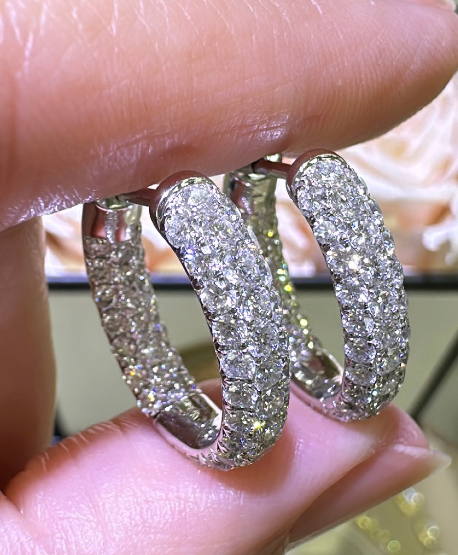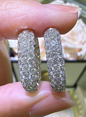 3.06ct tw Pave Diamond Huggie Hoop Earrings
